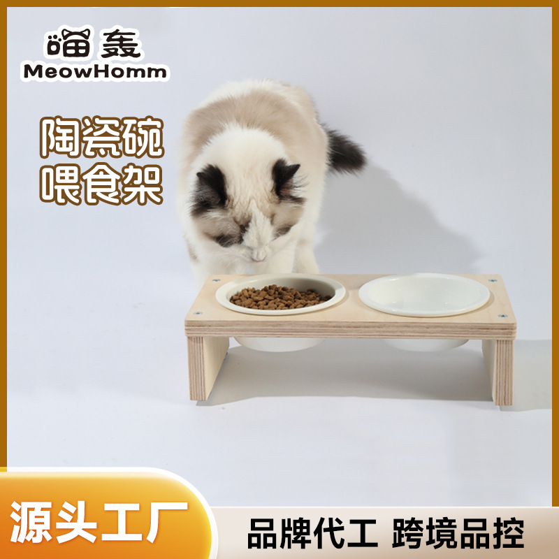 猫碗批发定制宠物陶瓷高腳双碗水粮一体碗防打翻猫喂食架高脚猫咪스토어 가기