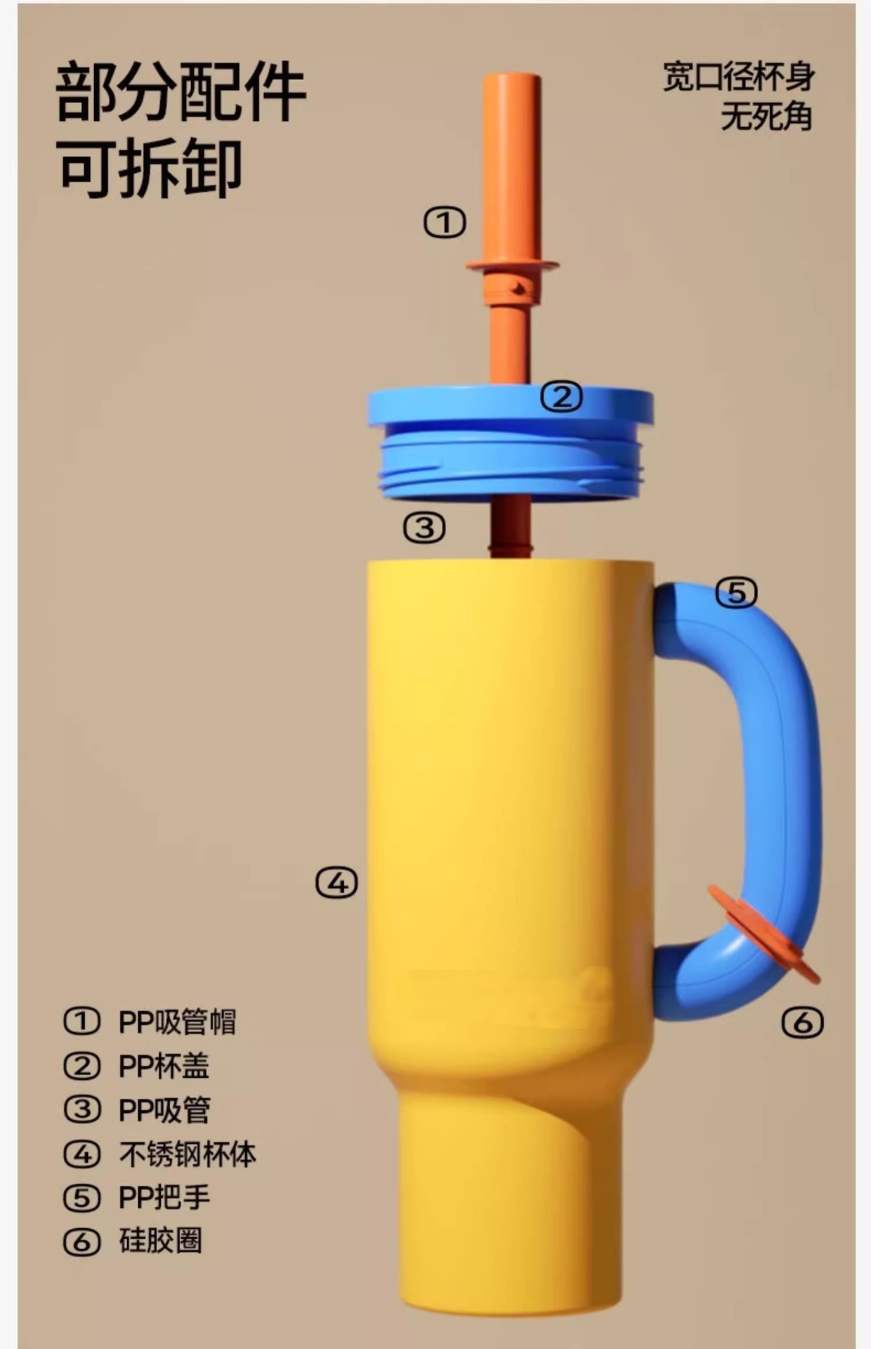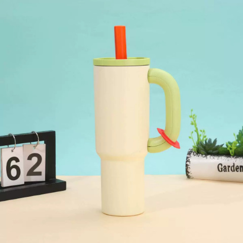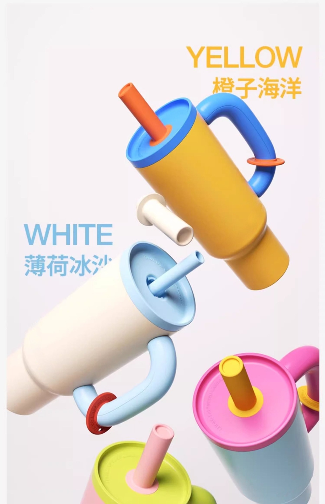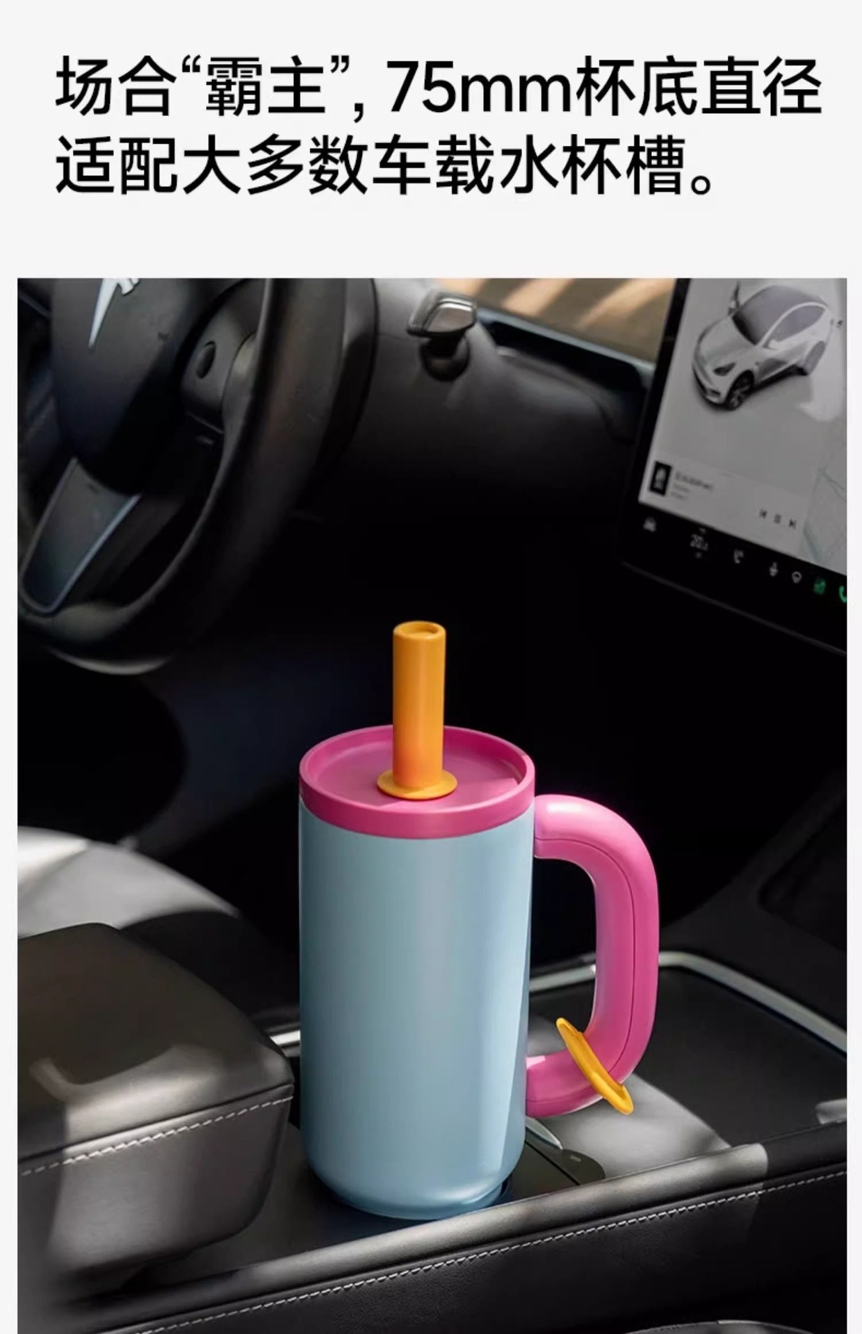 도파민 오버로드 핸들 밀짚 컵 304 스테인레스 스틸 보온병 컵 대용량 간단한 휴대용 자동차 컵