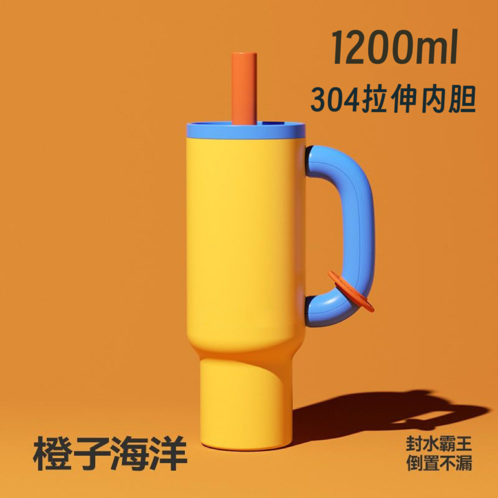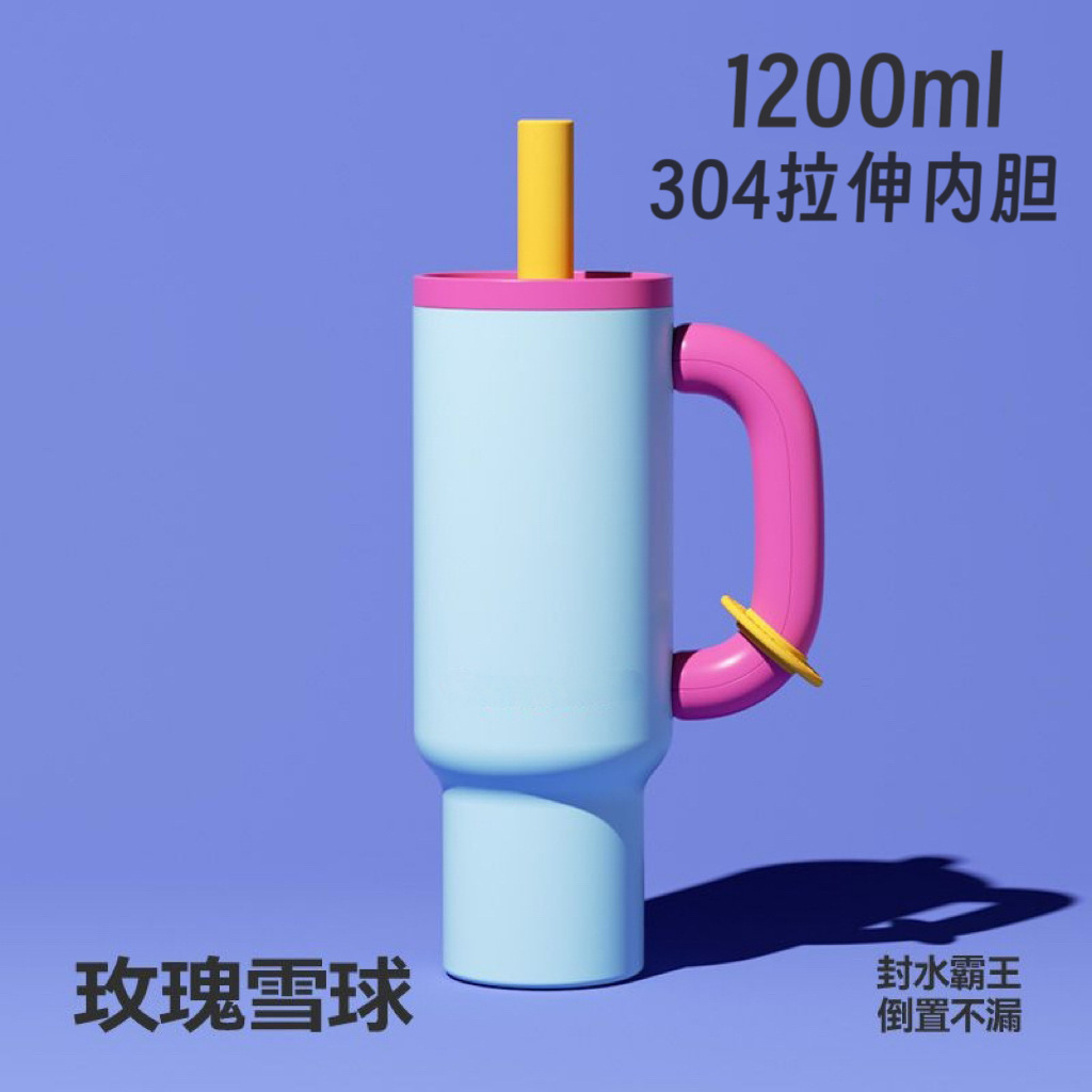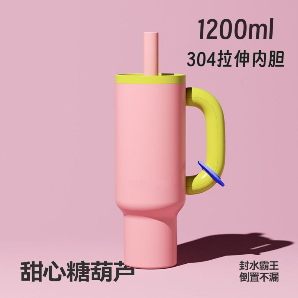 도파민 오버로드 핸들 밀짚 컵 304 스테인레스 스틸 보온병 컵 대용량 간단한 휴대용 자동차 컵스토어 가기