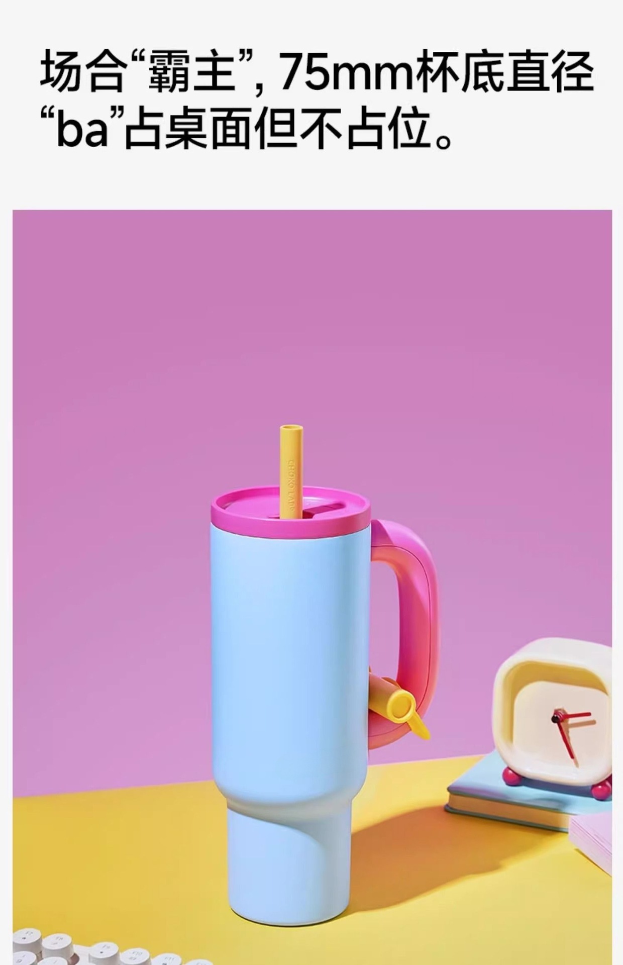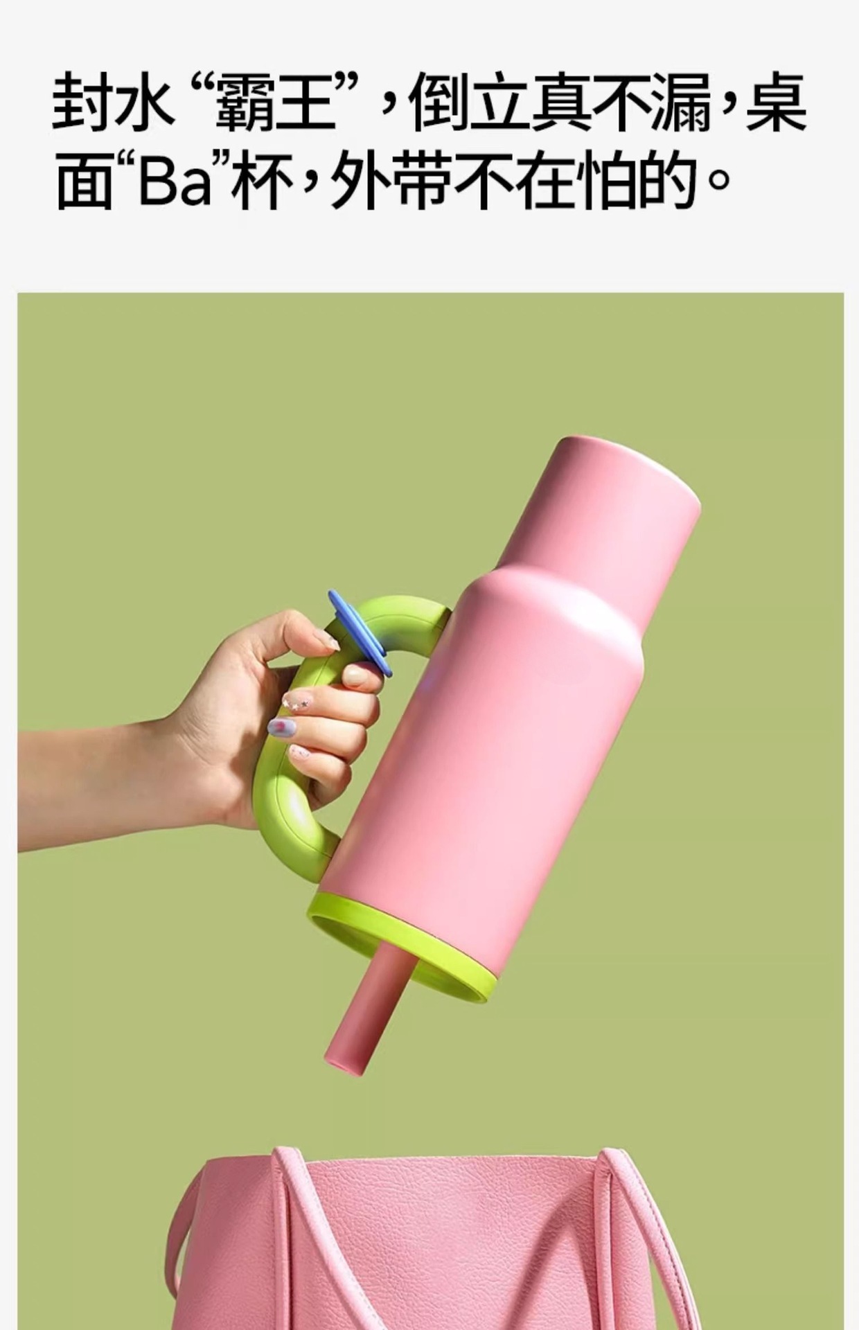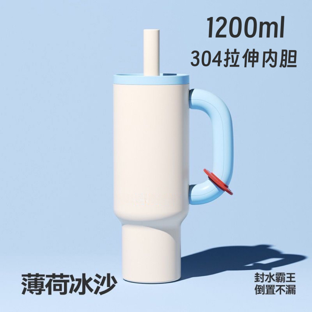 도파민 오버로드 핸들 밀짚 컵 304 스테인레스 스틸 보온병 컵 대용량 간단한 휴대용 자동차 컵스토어 가기