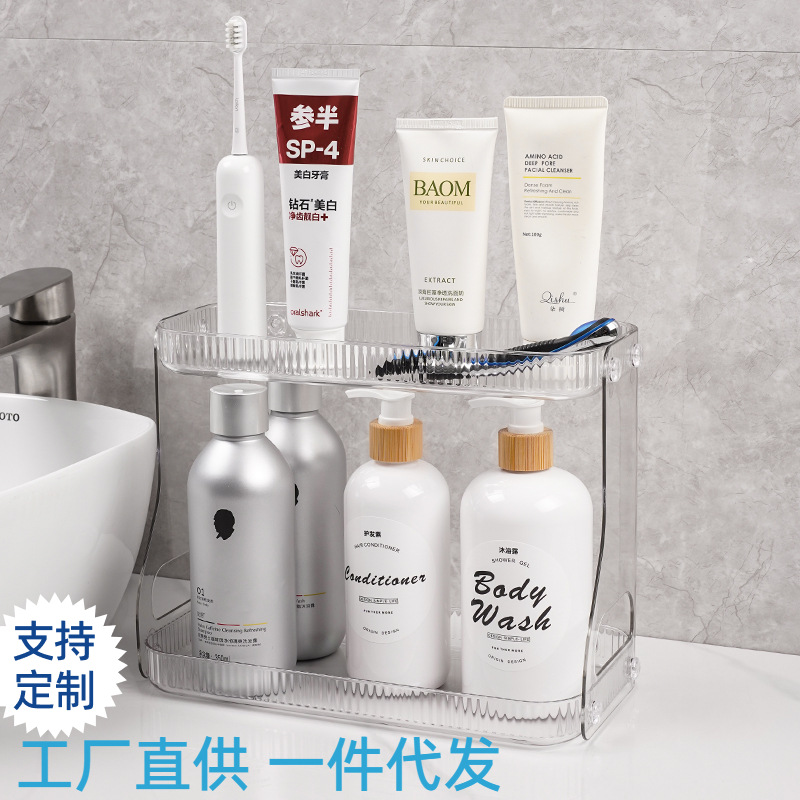 국경 간 특허 라이트 럭셔리 더블 레이어 스토리지 랙 펀치 무료 데스크탑 홈 매일 욕실 다기능 모바일 스토리지 박스
