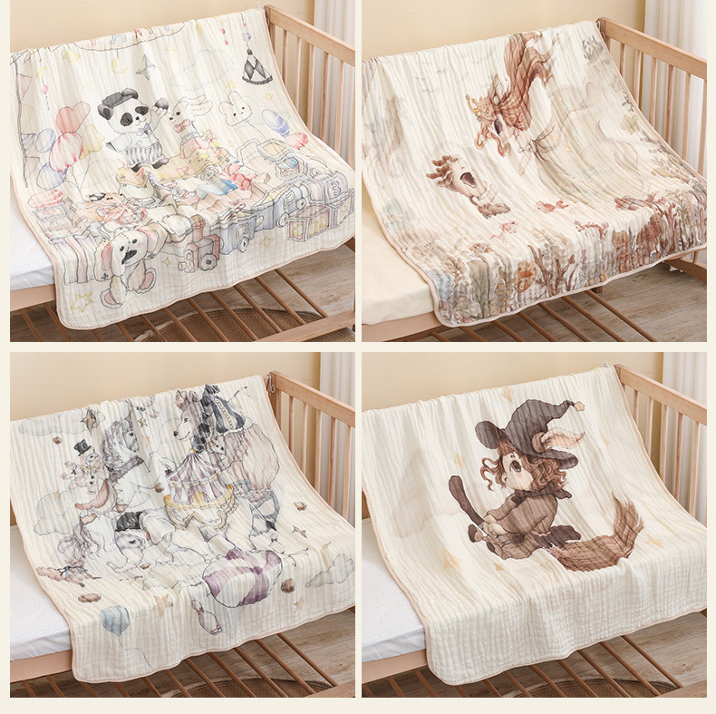 2025 새로운 6 층 대나무 면화 신생아 이불 클래스 A 부드러운 담요 유치원 아기 에어컨 담요 여름 이불스토어 가기