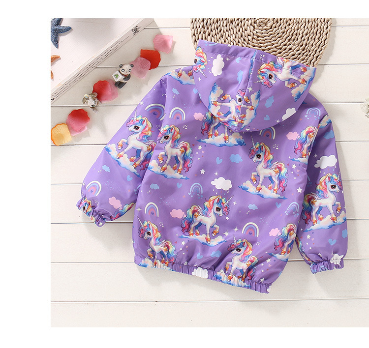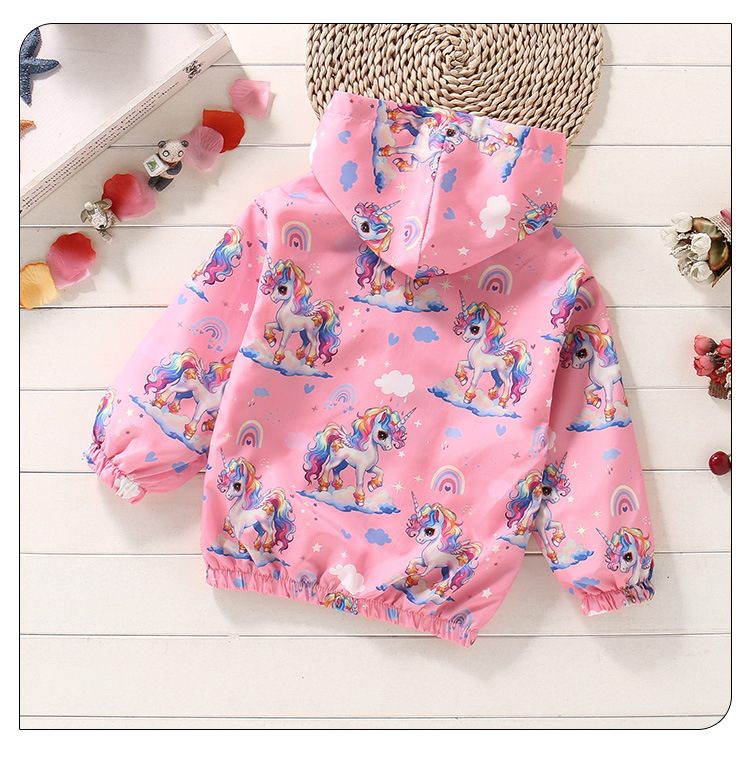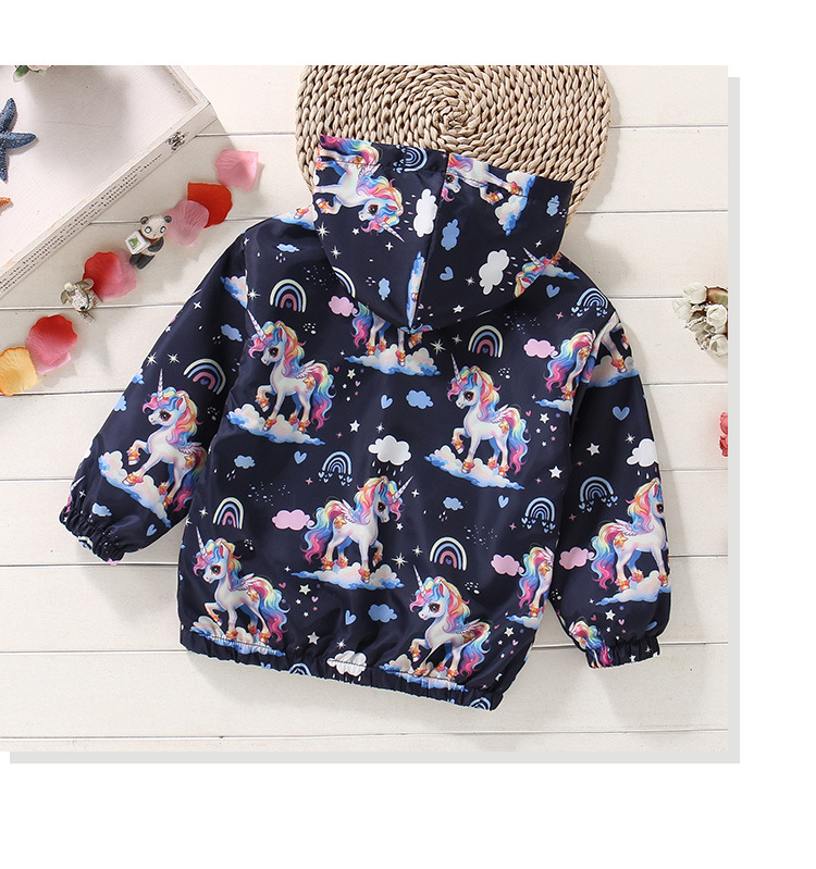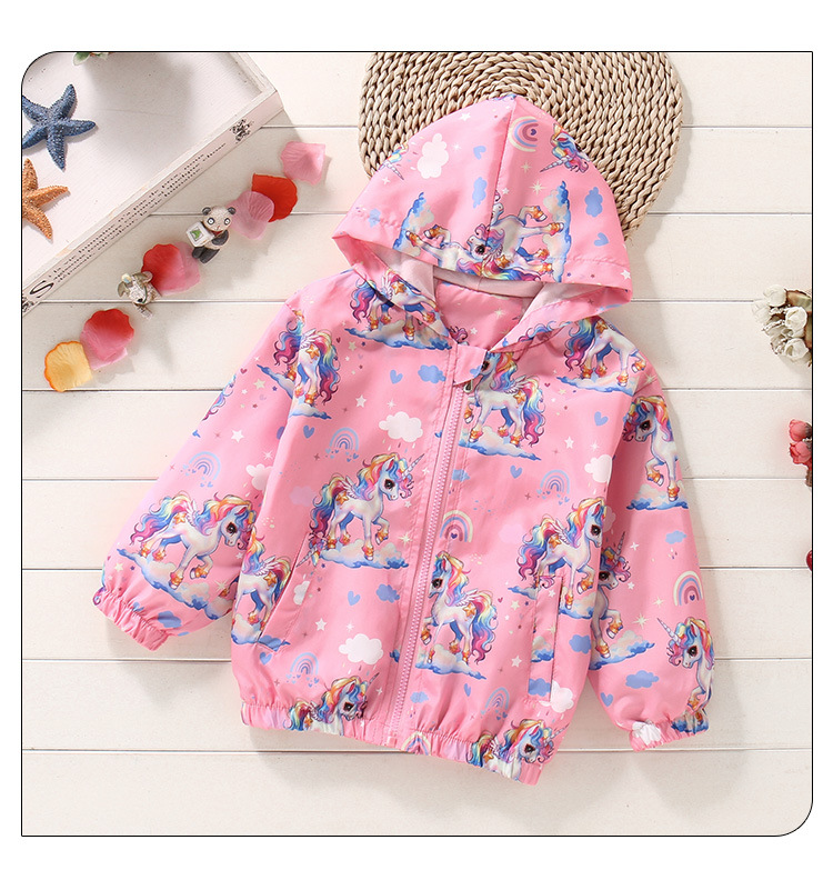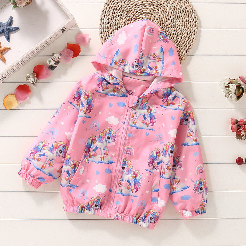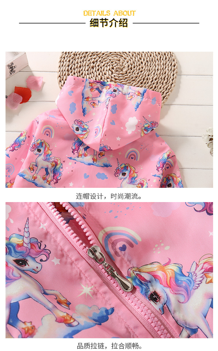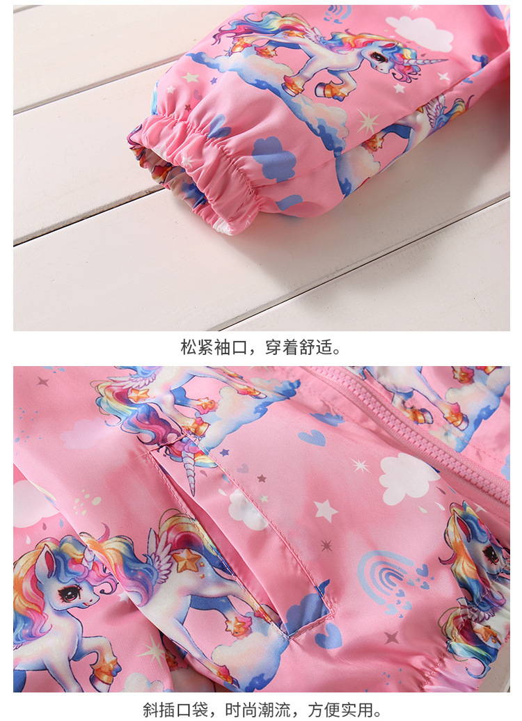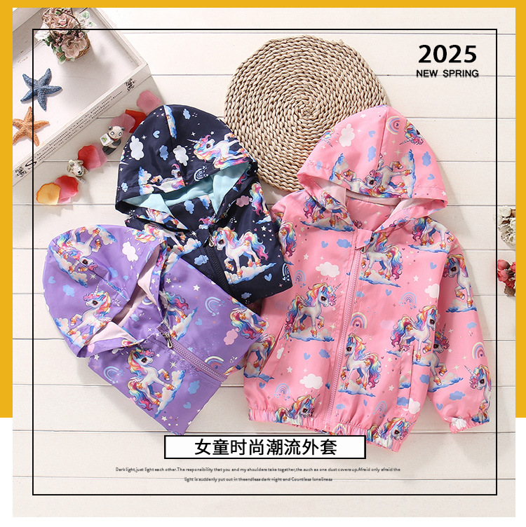 크로스보더 여아용 봄여름 방풍 재킷 2026 신상 한국판 아동용 얇은 후드 유니콘 재킷