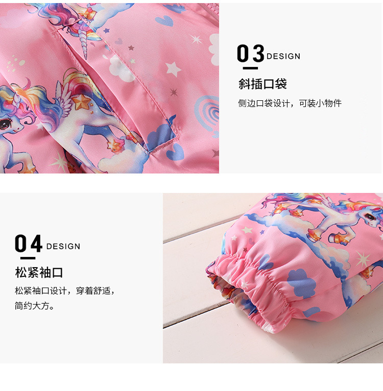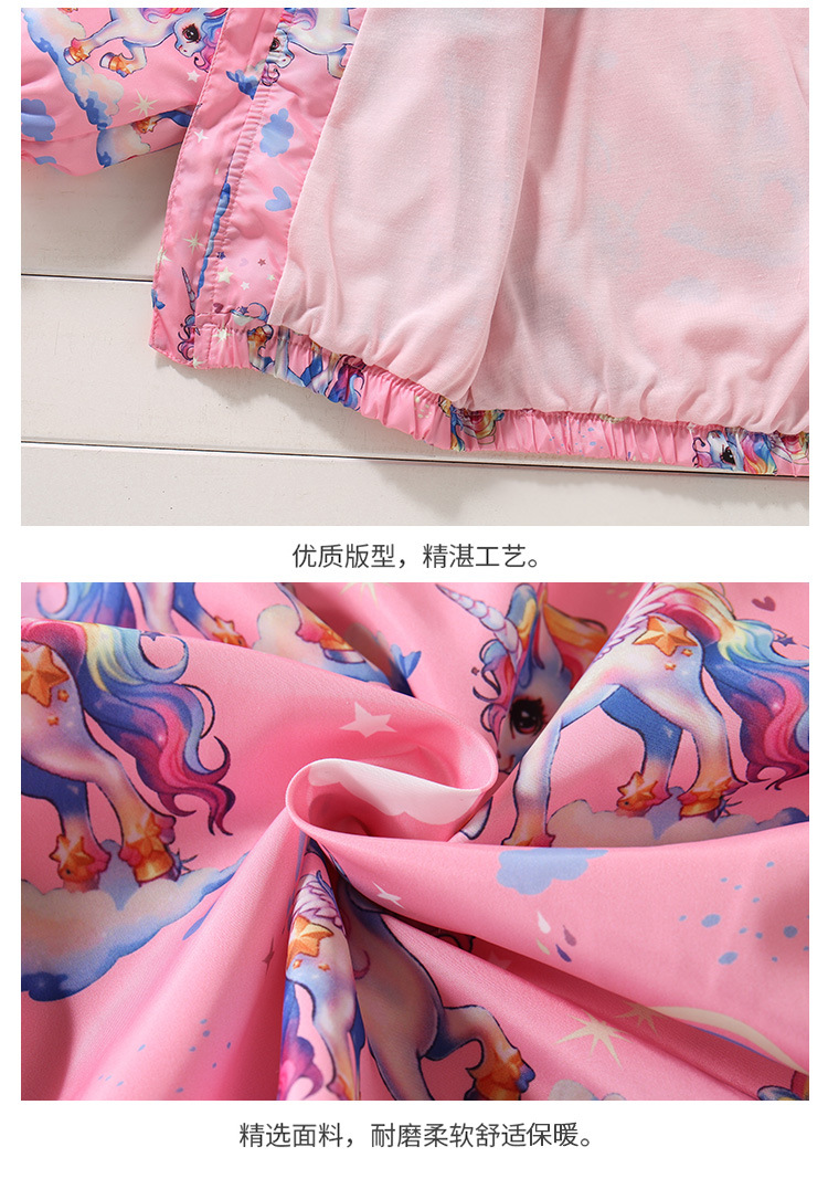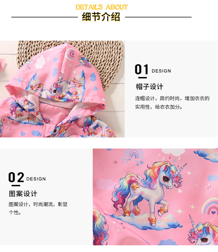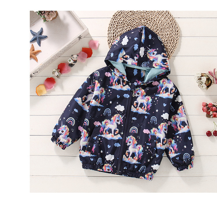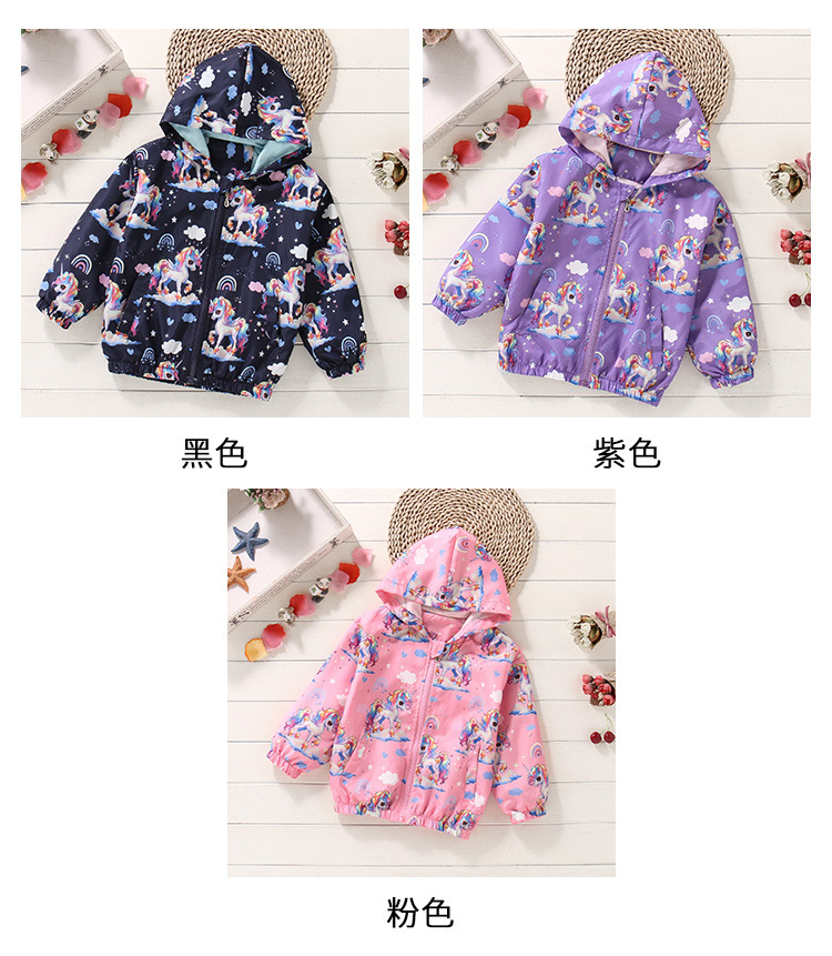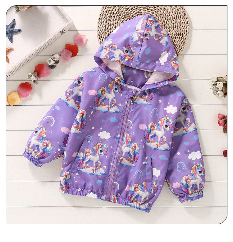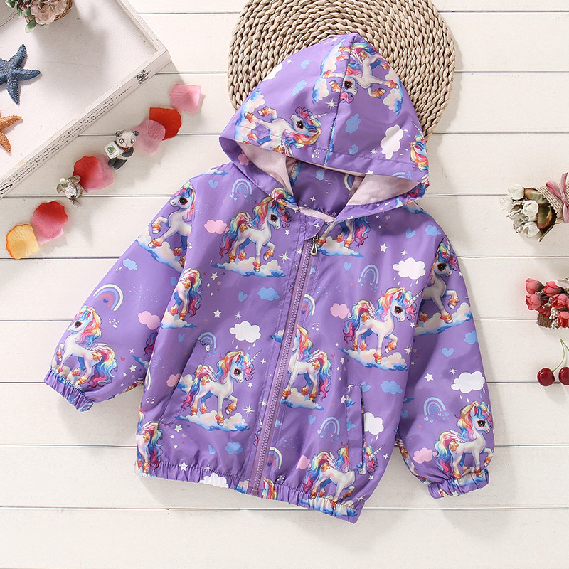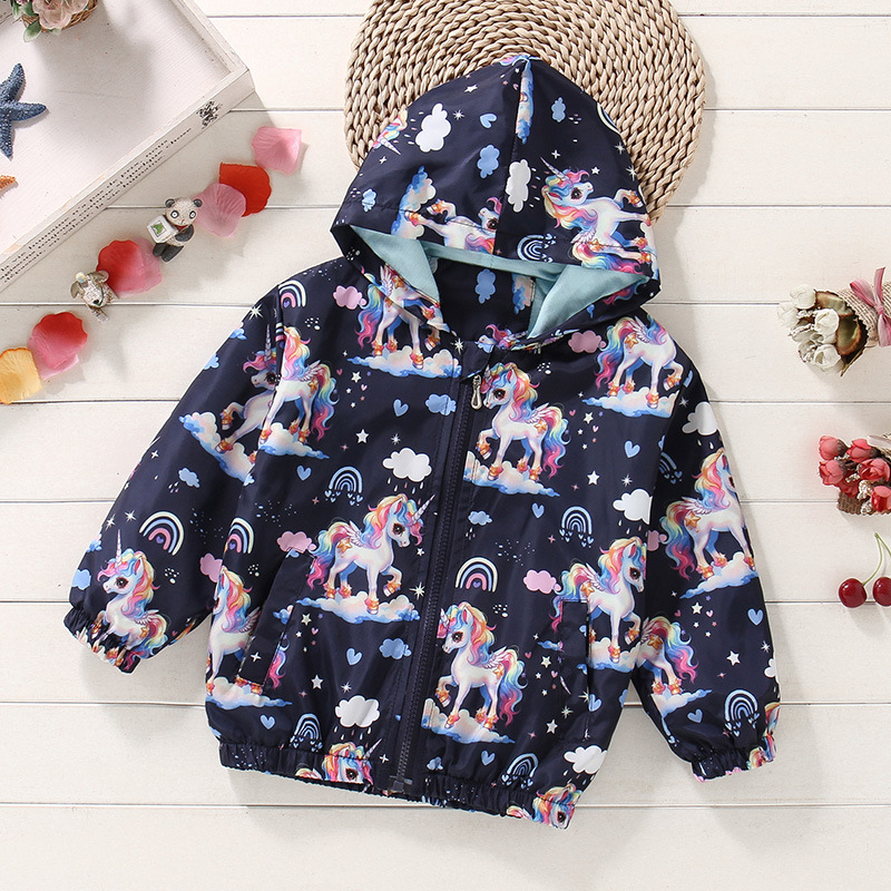 크로스보더 여아용 봄여름 방풍 재킷 2026 신상 한국판 아동용 얇은 후드 유니콘 재킷