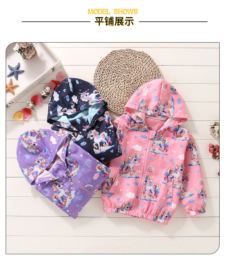 크로스보더 여아용 봄여름 방풍 재킷 2026 신상 한국판 아동용 얇은 후드 유니콘 재킷스토어 가기