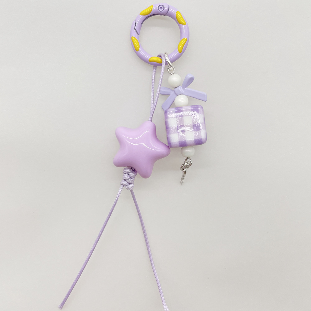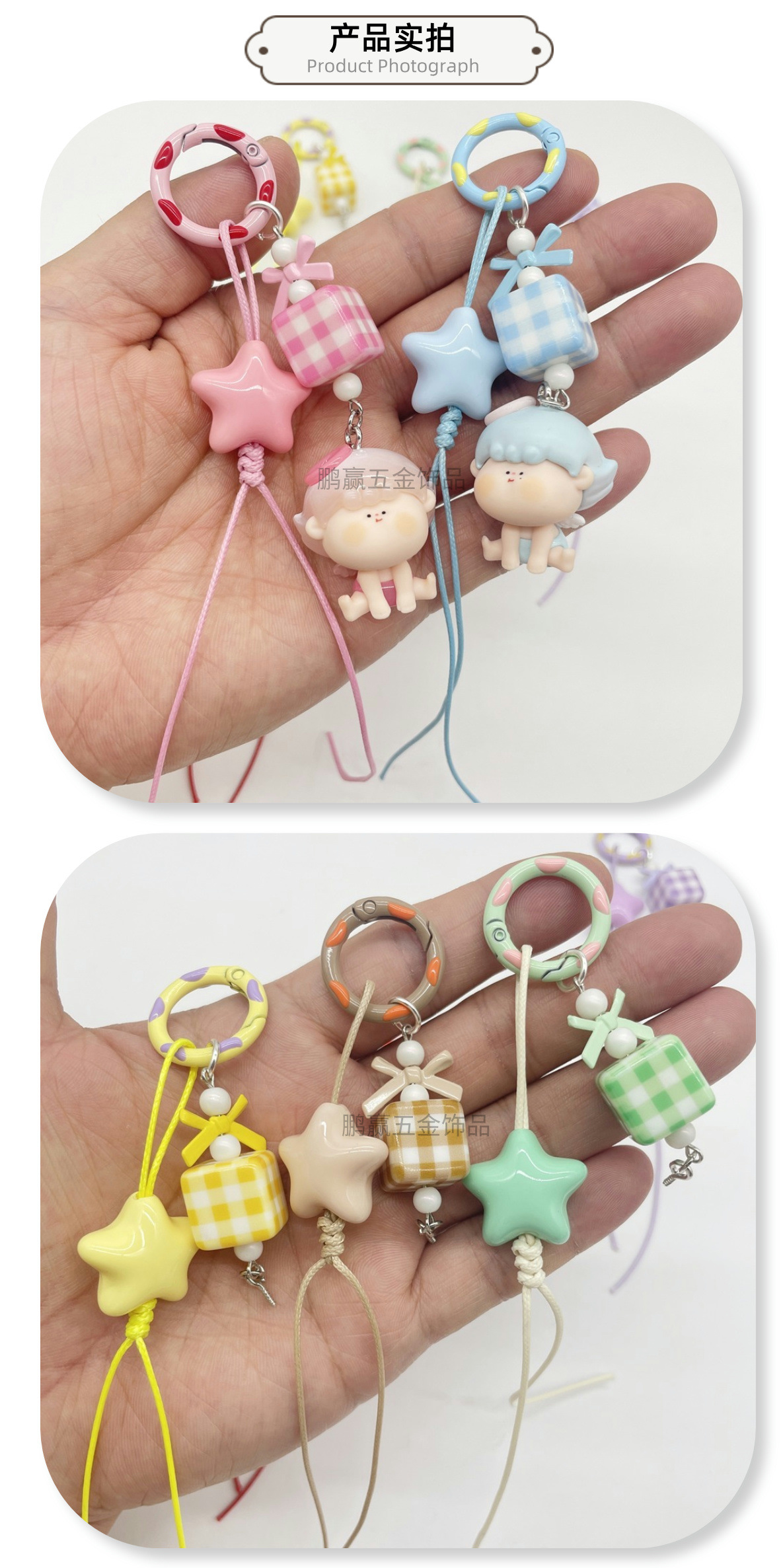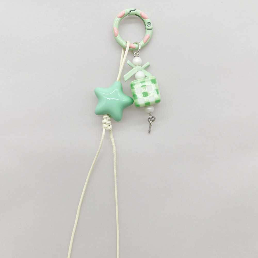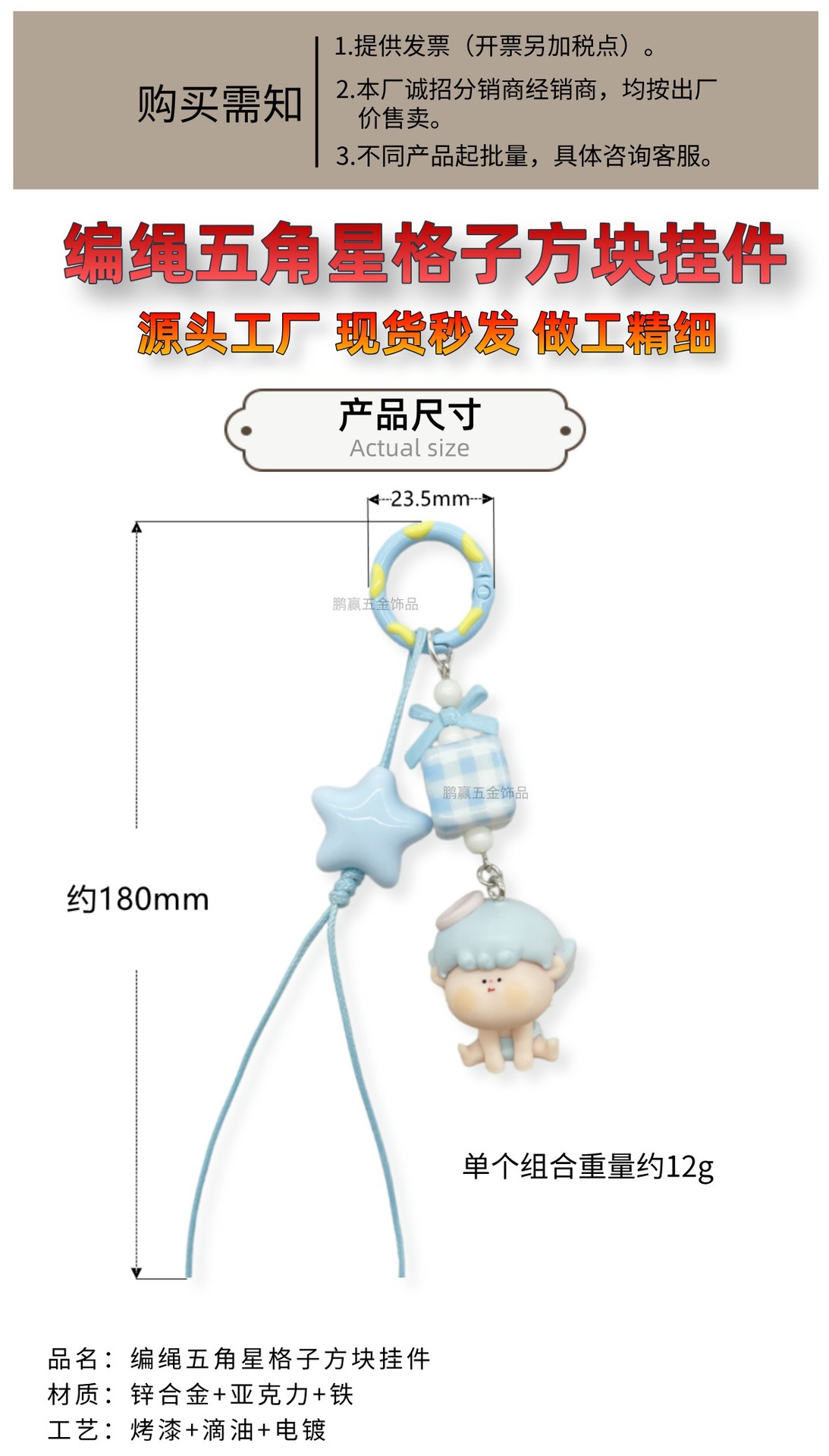 꼰 로프 블라인드 박스 사랑스러운 키 체인 스타 스퀘어 체크 무늬 버블 매트 휴대 전화 체인 액세서리 DIY 액세서리스토어 가기