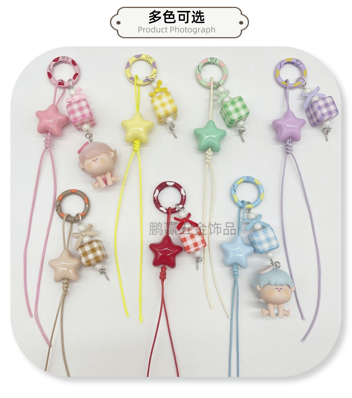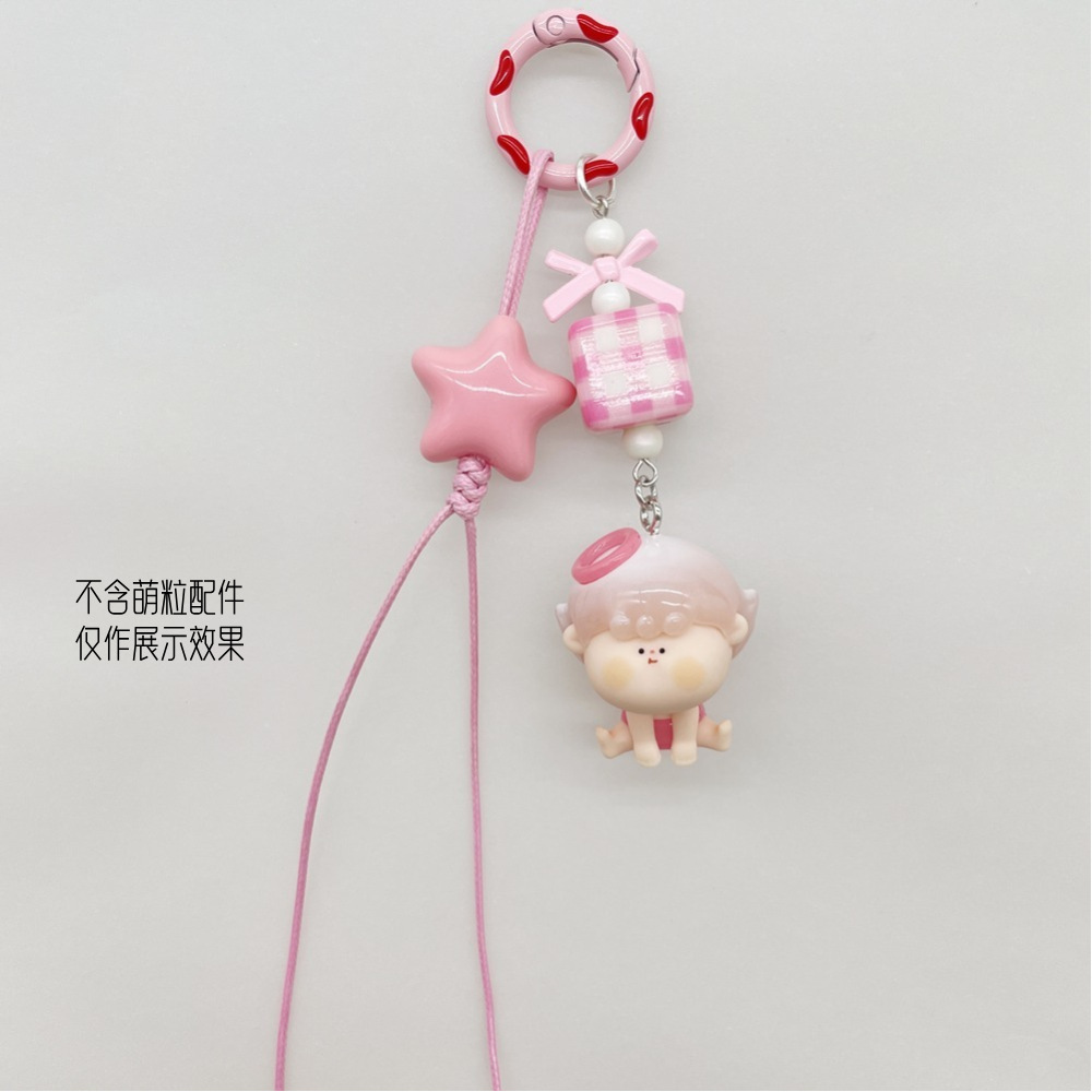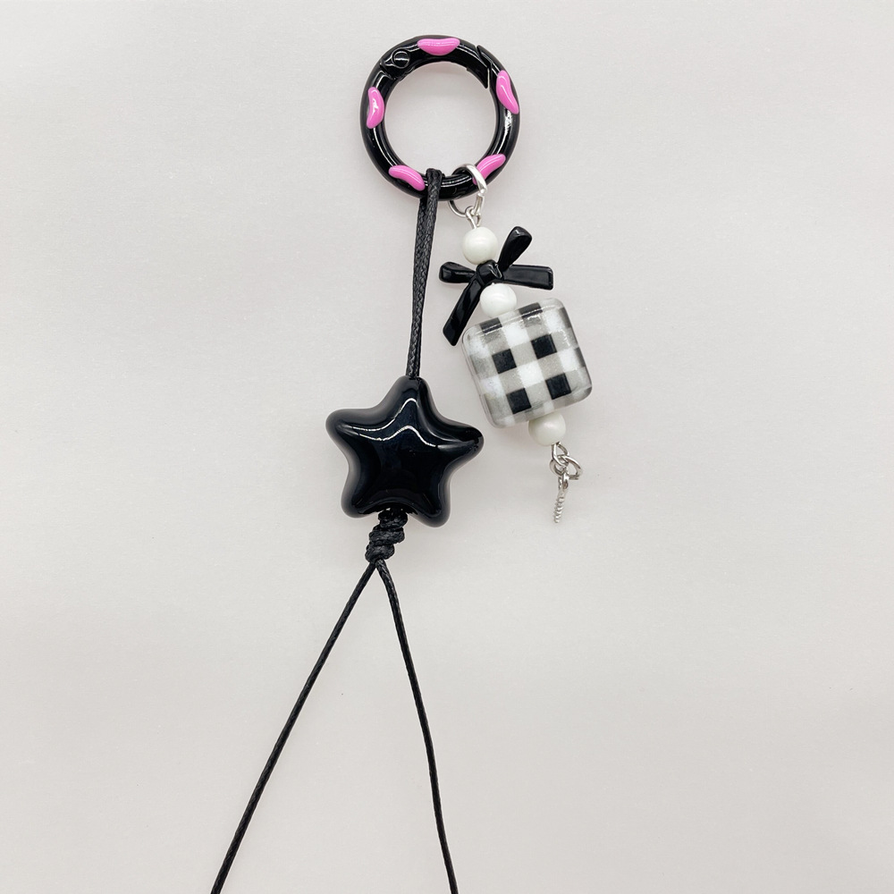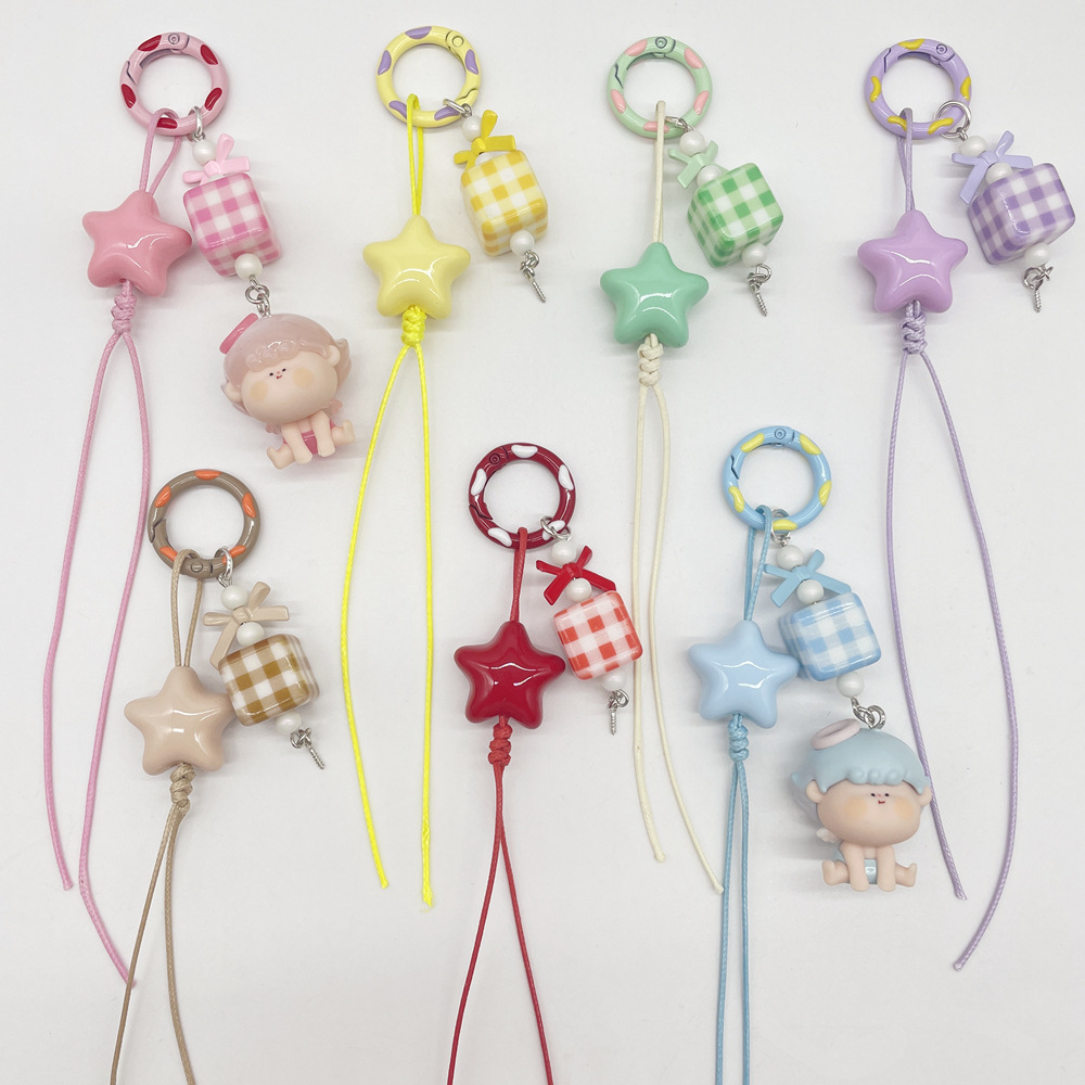 꼰 로프 블라인드 박스 사랑스러운 키 체인 스타 스퀘어 체크 무늬 버블 매트 휴대 전화 체인 액세서리 DIY 액세서리스토어 가기