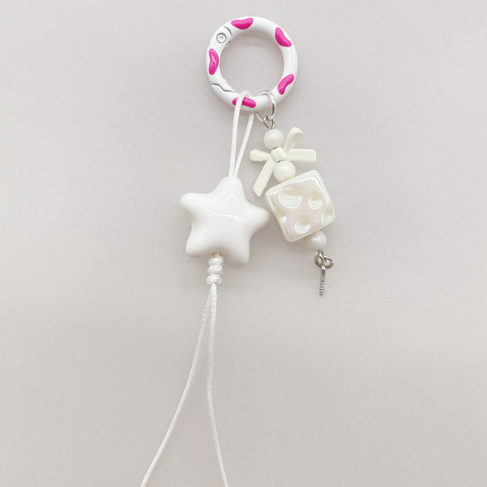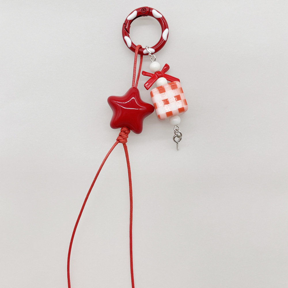 꼰 로프 블라인드 박스 사랑스러운 키 체인 스타 스퀘어 체크 무늬 버블 매트 휴대 전화 체인 액세서리 DIY 액세서리