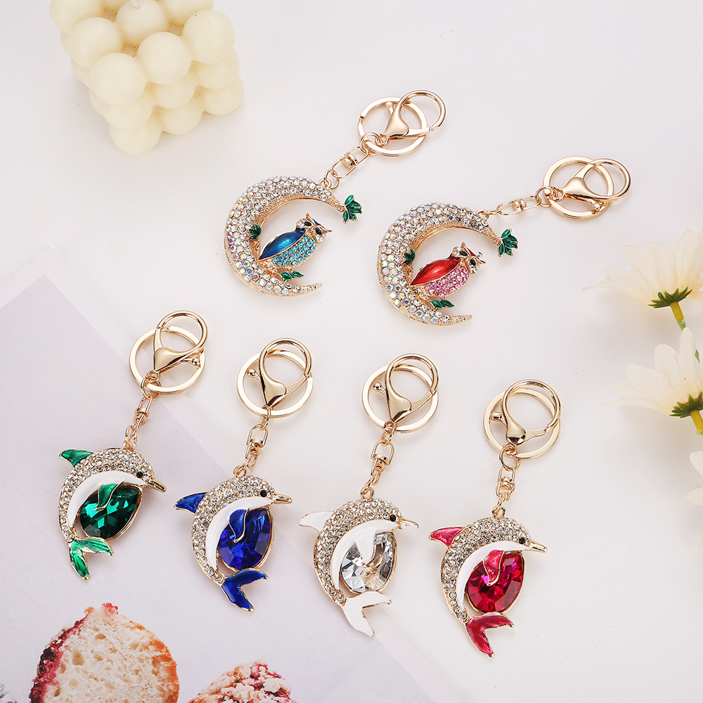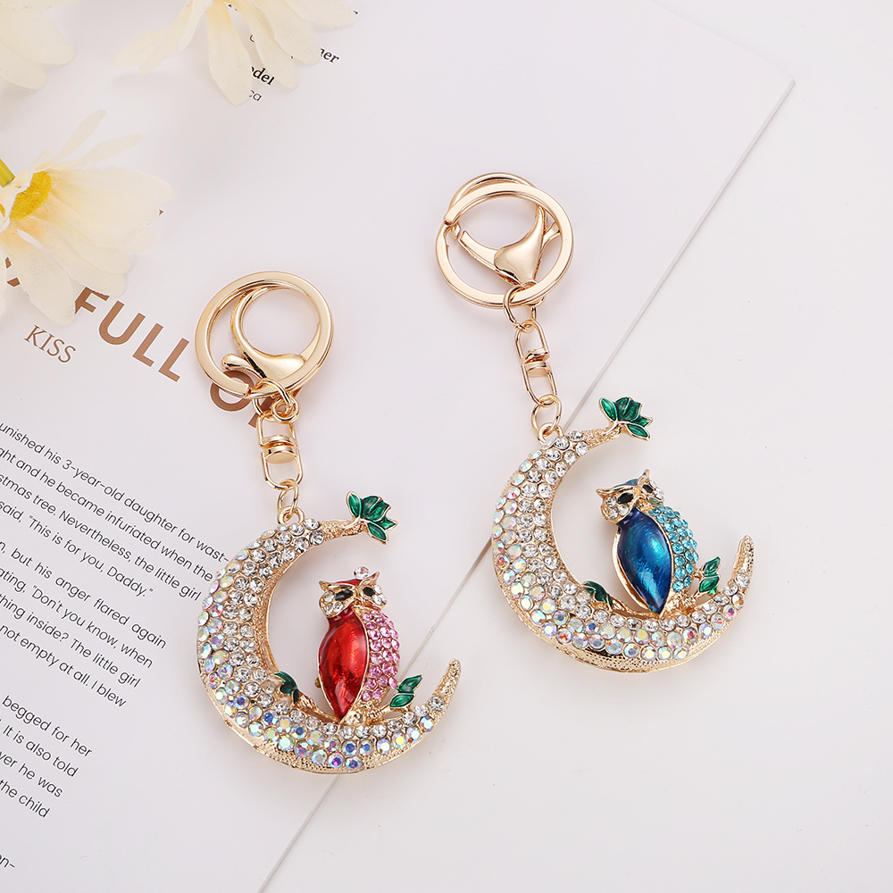 크리 에이 티브 귀여운 다이아몬드 박힌 달 곰 키 체인 올빼미 만화 레드 팬더 커플 키 체인 유럽과 미국스토어 가기