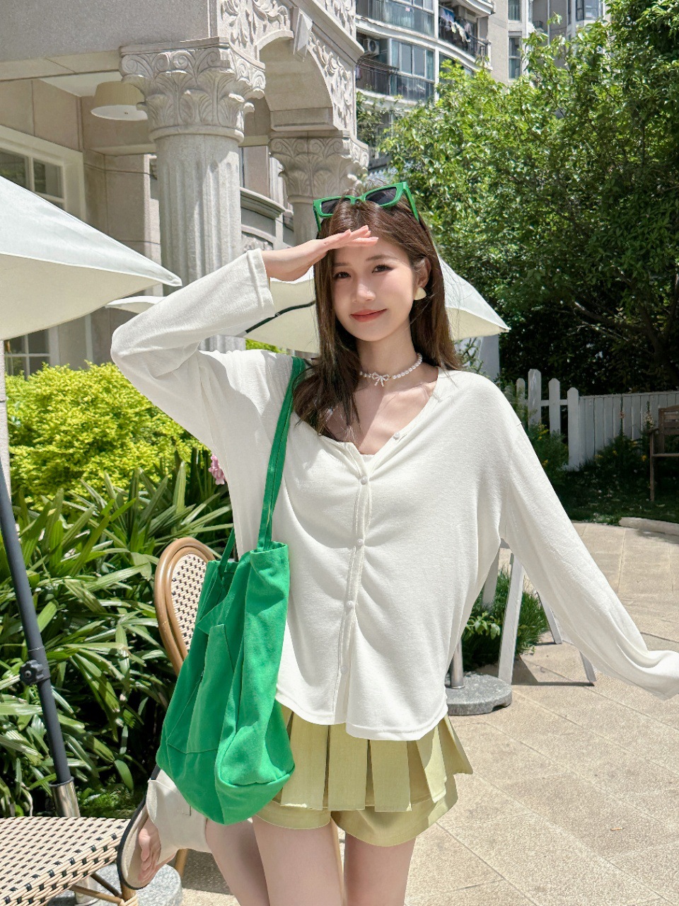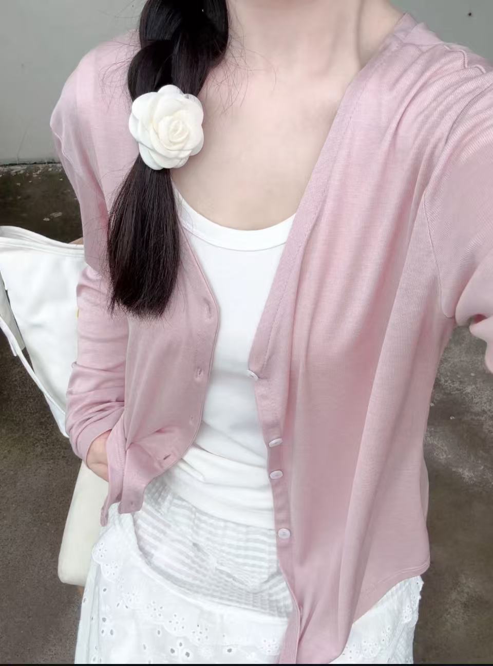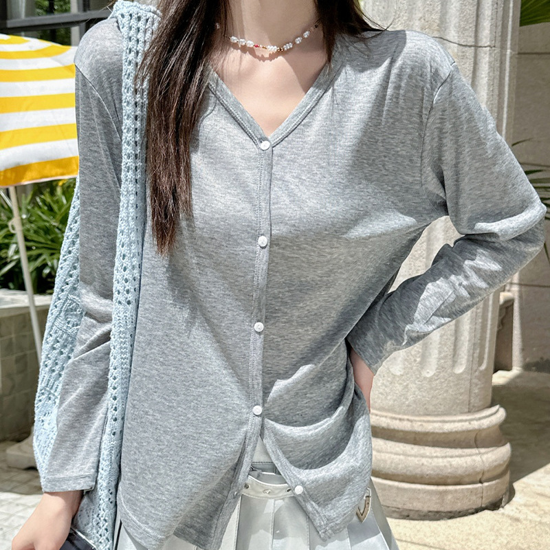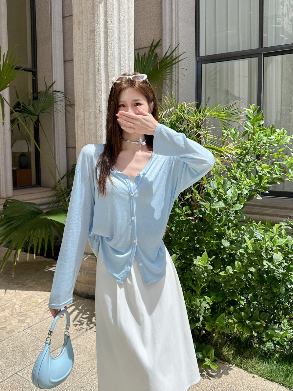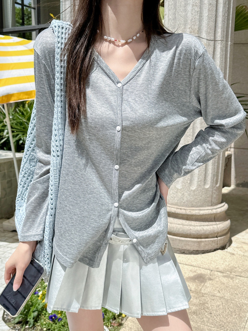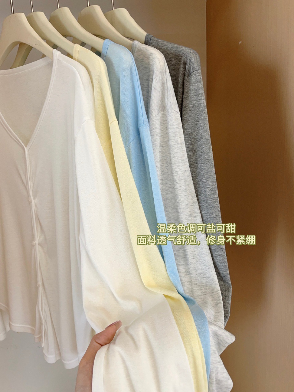 여름 얇은 텐셀 카디건 태양 보호 의류 여성 한국식 느슨한 게으른 스타일 V 넥 니트 에어컨 셔츠 코트 티셔츠