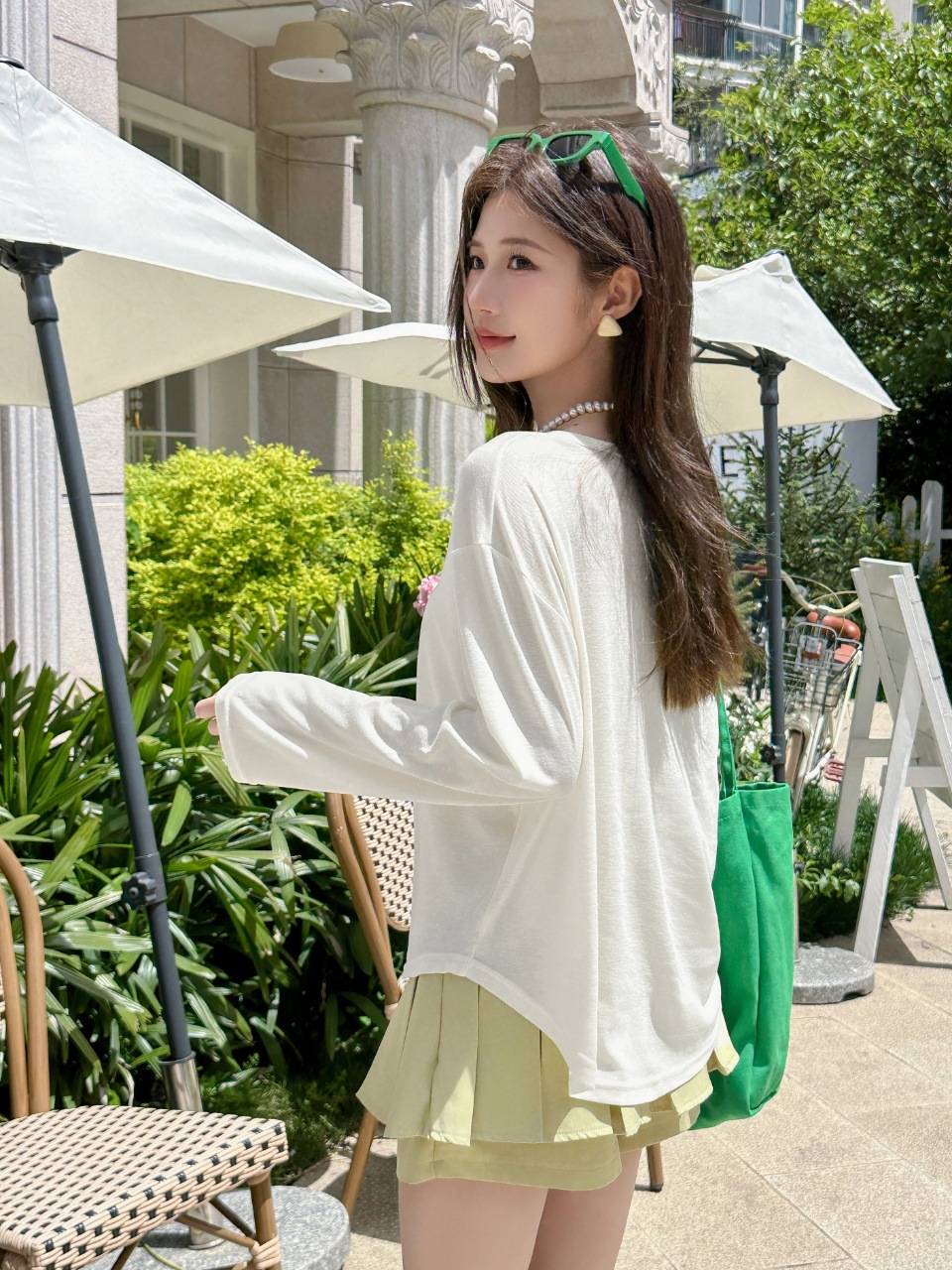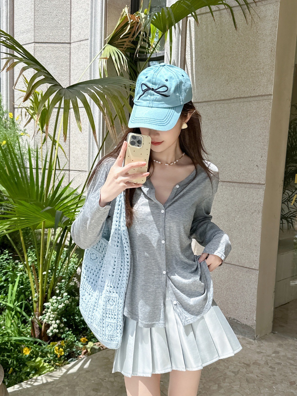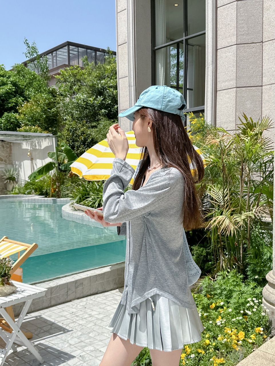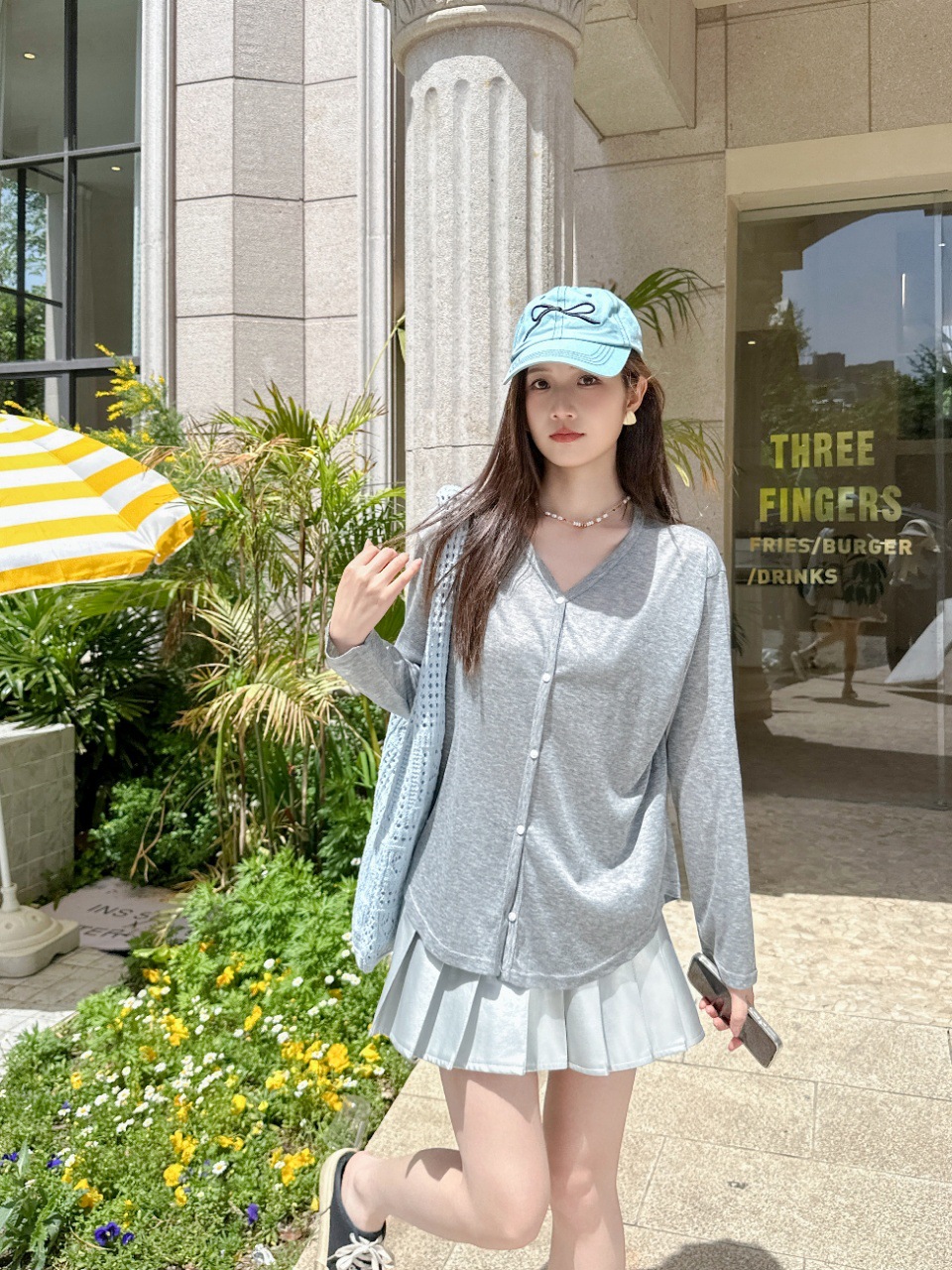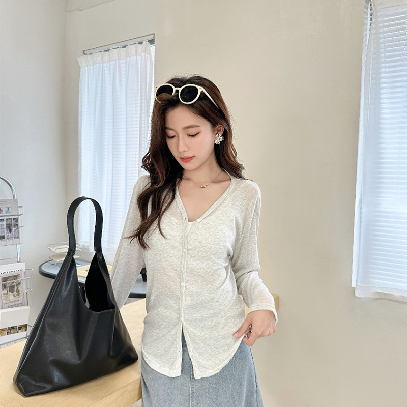 여름 얇은 텐셀 카디건 태양 보호 의류 여성 한국식 느슨한 게으른 스타일 V 넥 니트 에어컨 셔츠 코트 티셔츠