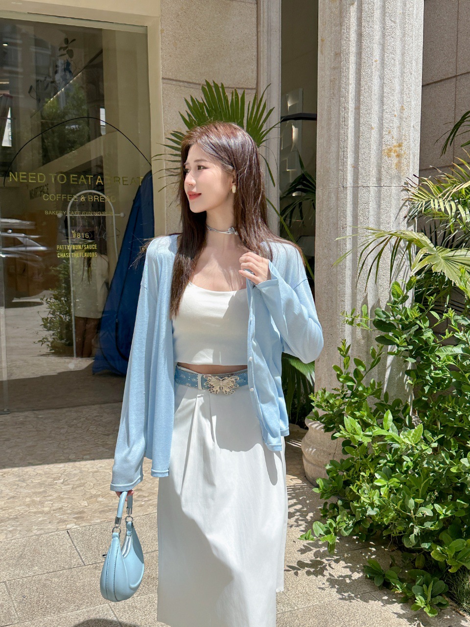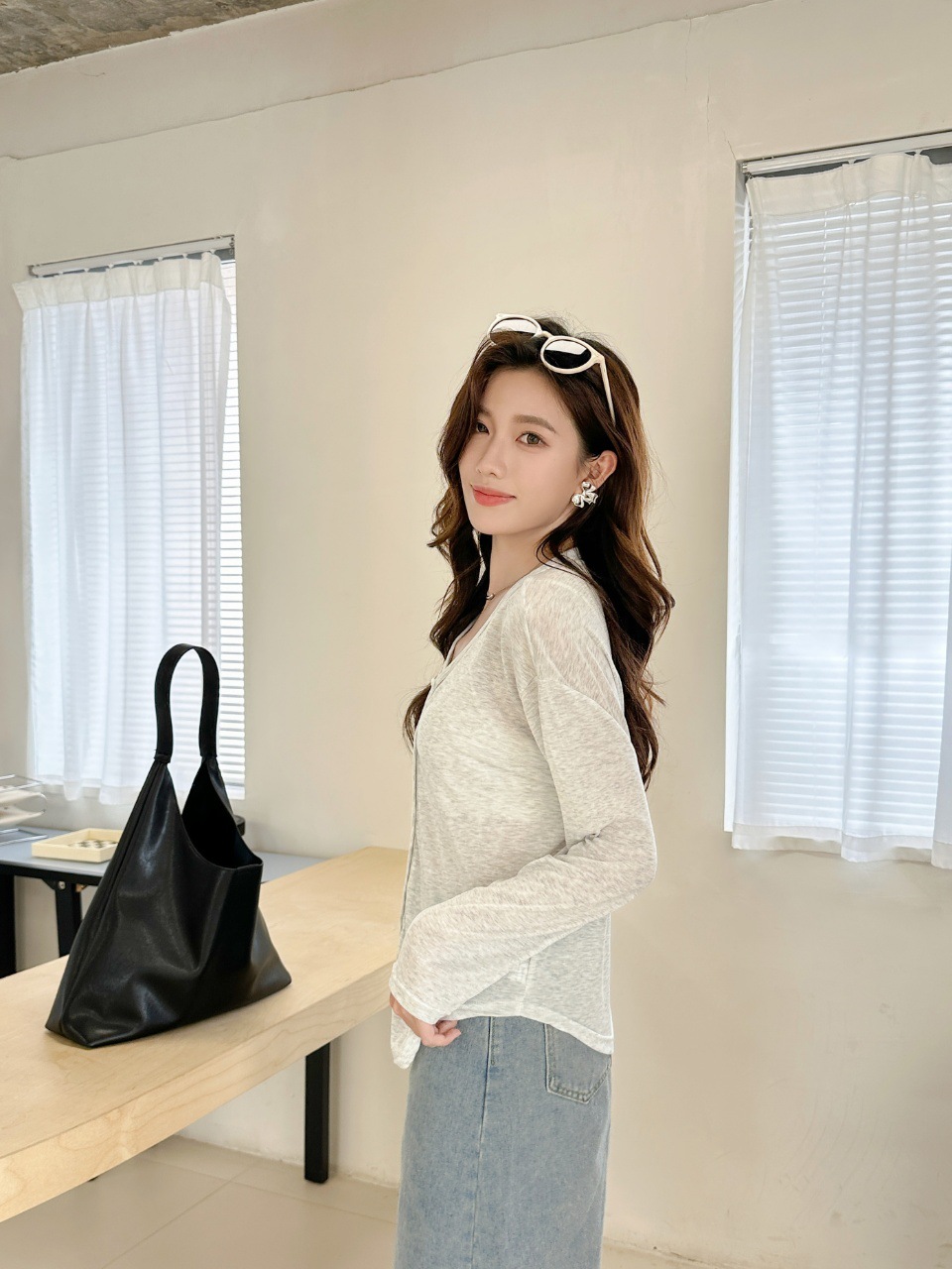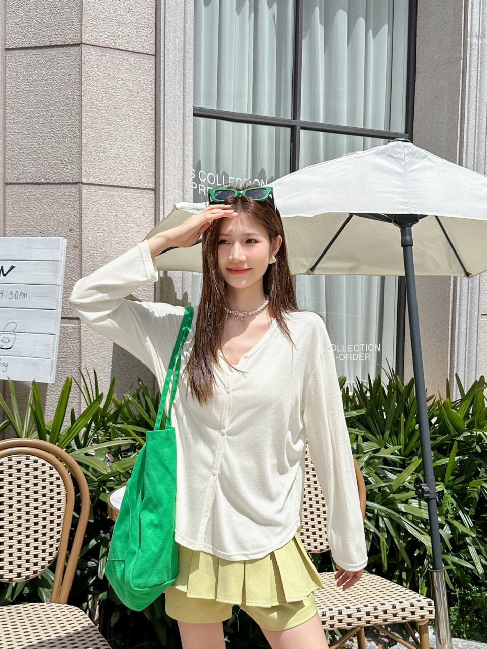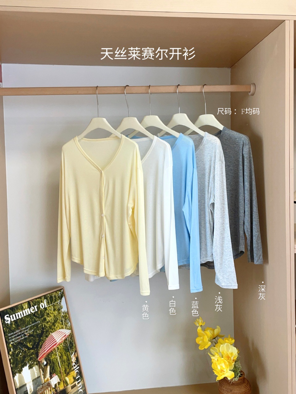 여름 얇은 텐셀 카디건 태양 보호 의류 여성 한국식 느슨한 게으른 스타일 V 넥 니트 에어컨 셔츠 코트 티셔츠스토어 가기
