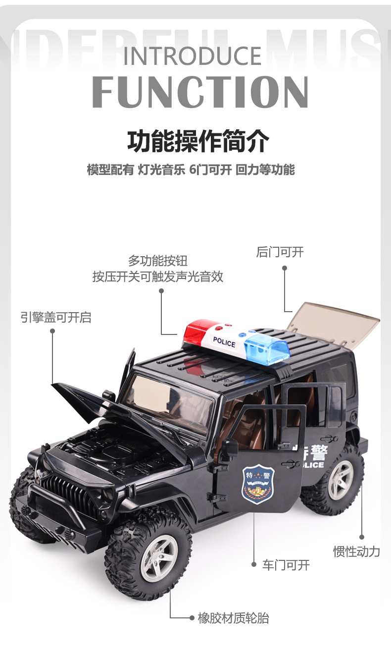 어린이용 대형 관성차, 소리와 빛이 나는 특수경찰차, 경찰 오프로드 차량, 문이 열리는 소년용 시뮬레이션 모델 교육용 장난감스토어 가기