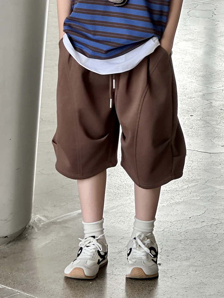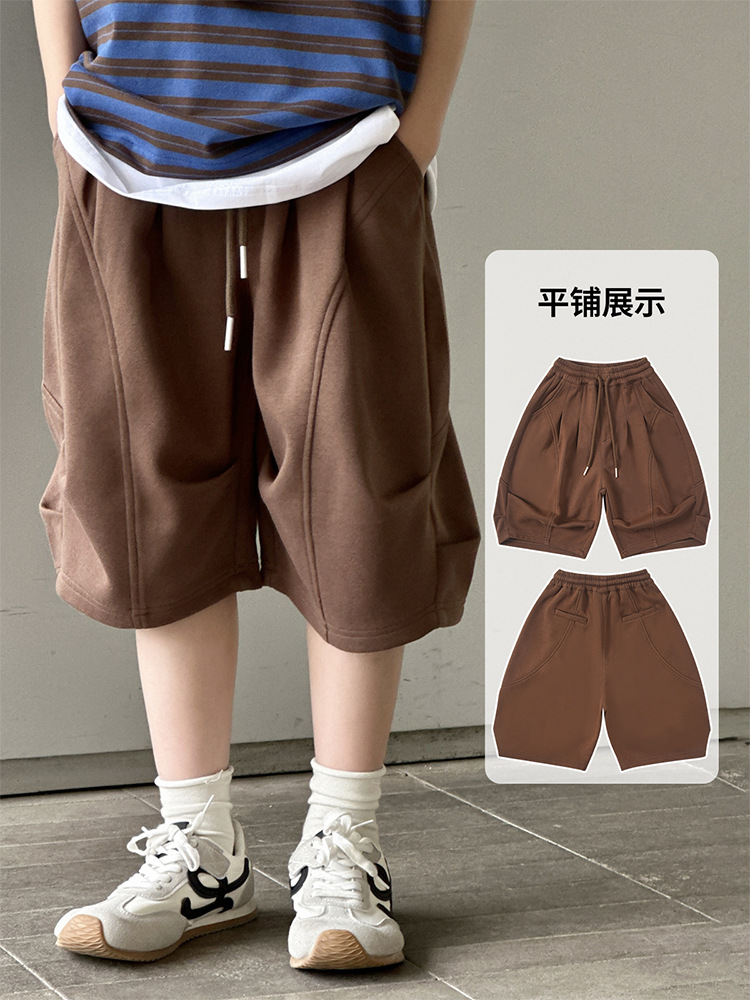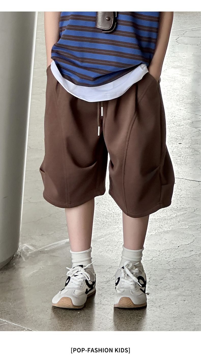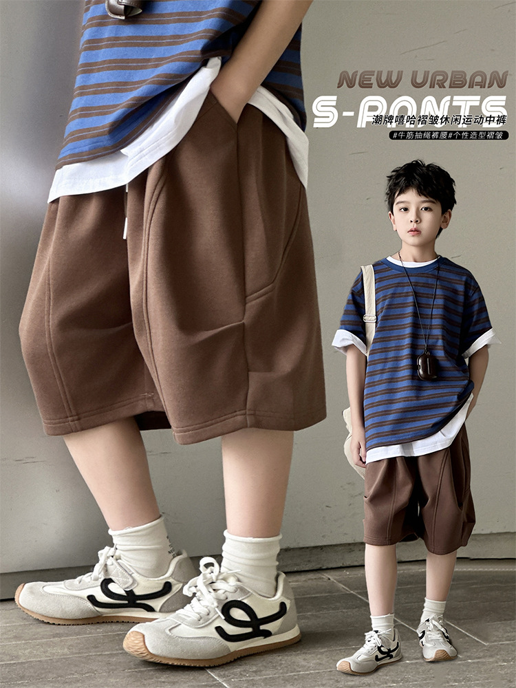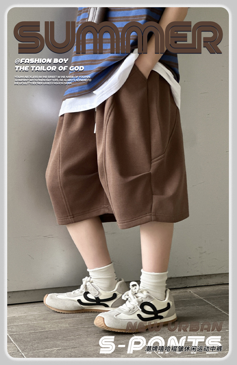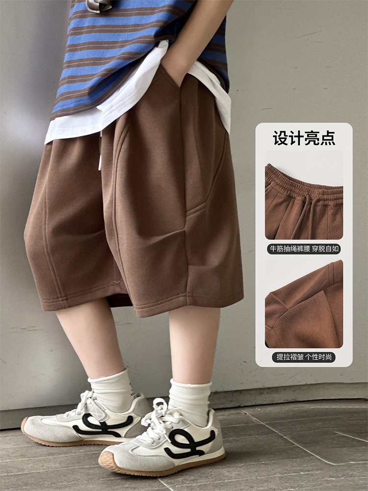 남아 여름 반바지 2026 신상 중대형 아동용 미국 스타일 트렌디 브랜드 주름 디자인 루즈핏 편안한 니트 캐주얼 5부 바지스토어 가기