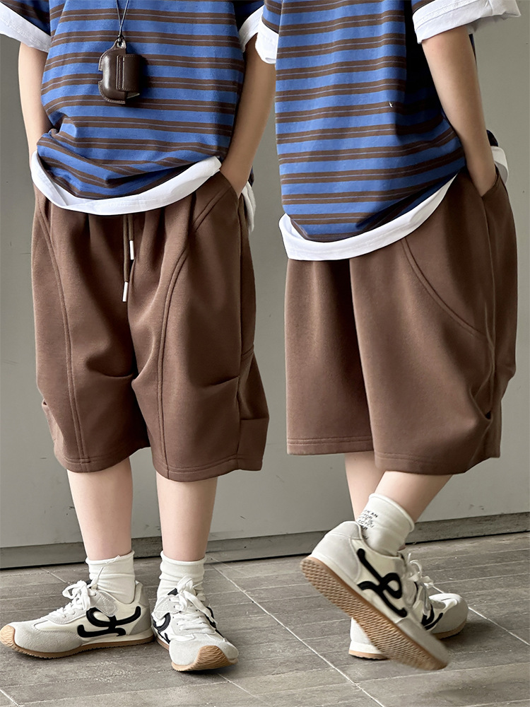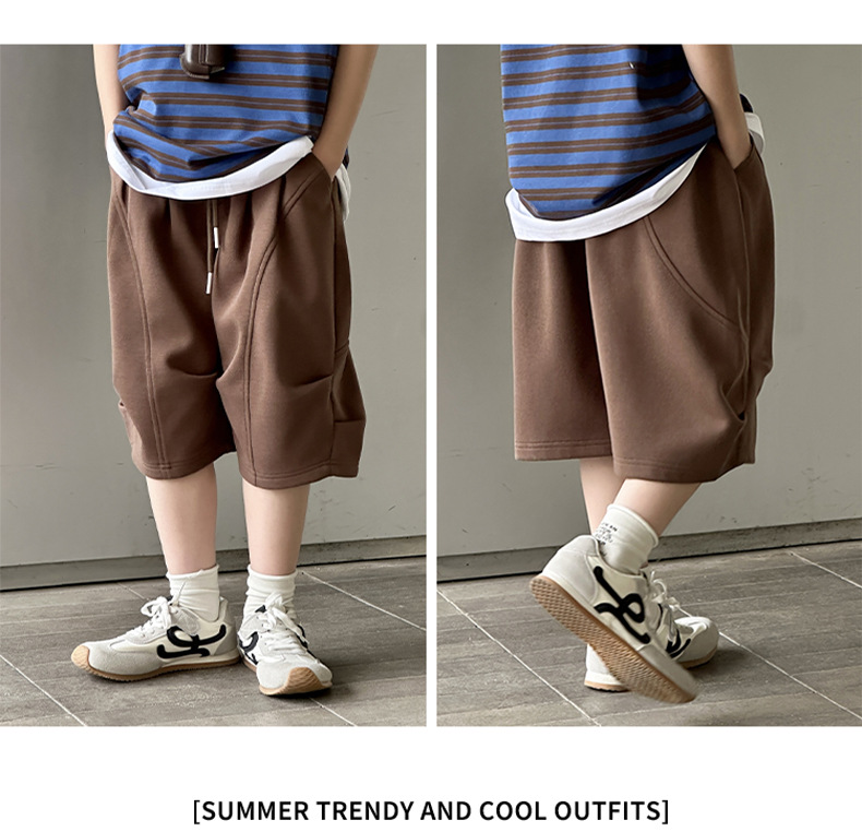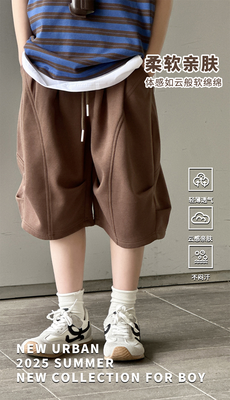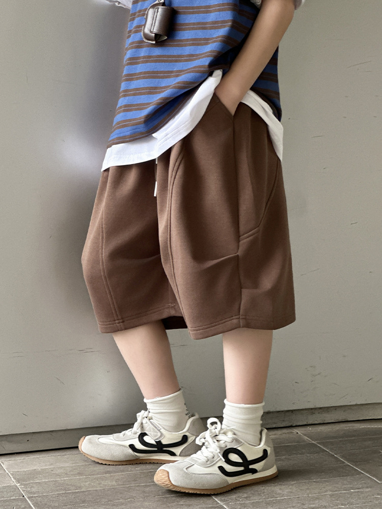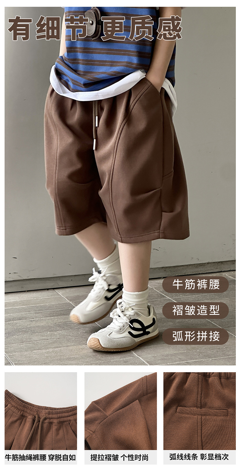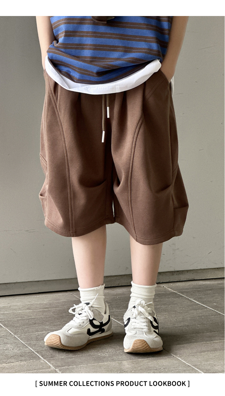 남아 여름 반바지 2026 신상 중대형 아동용 미국 스타일 트렌디 브랜드 주름 디자인 루즈핏 편안한 니트 캐주얼 5부 바지스토어 가기