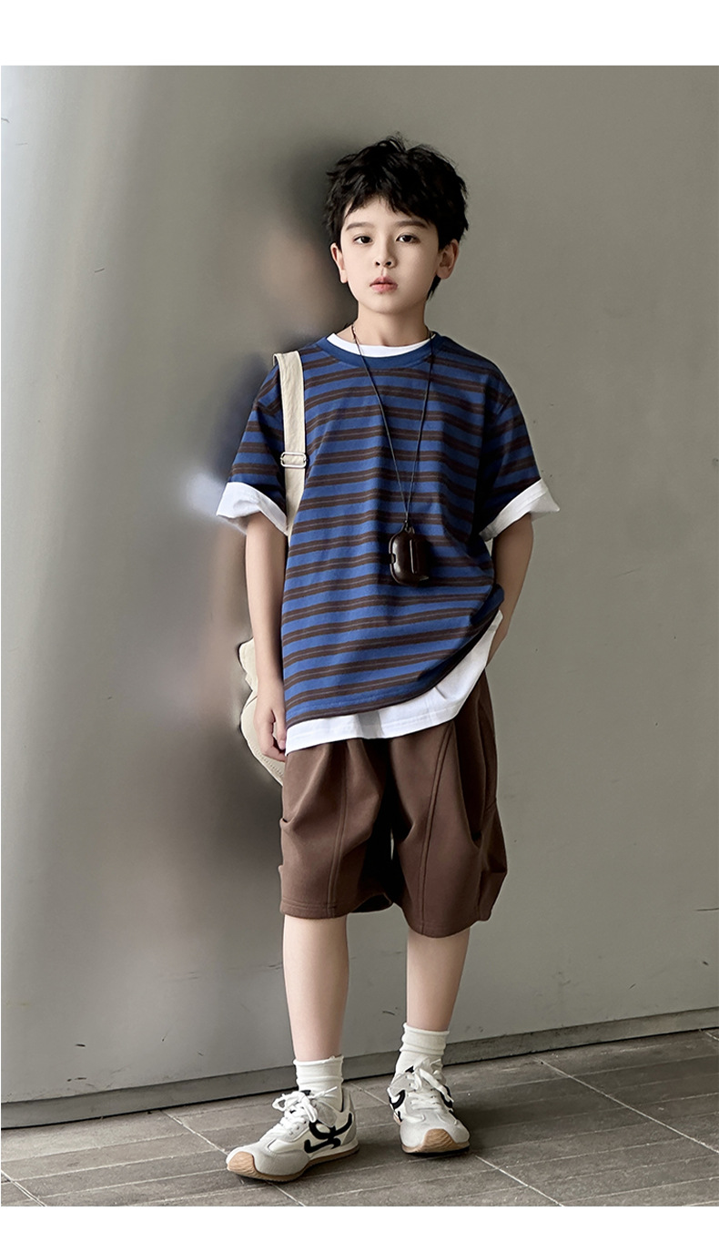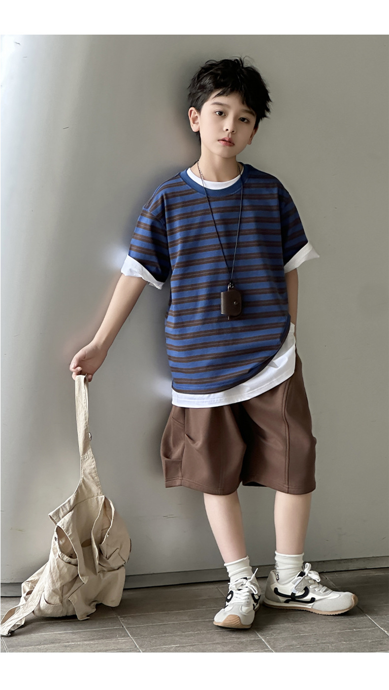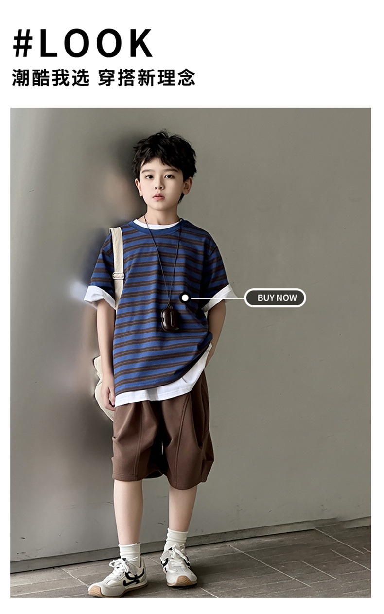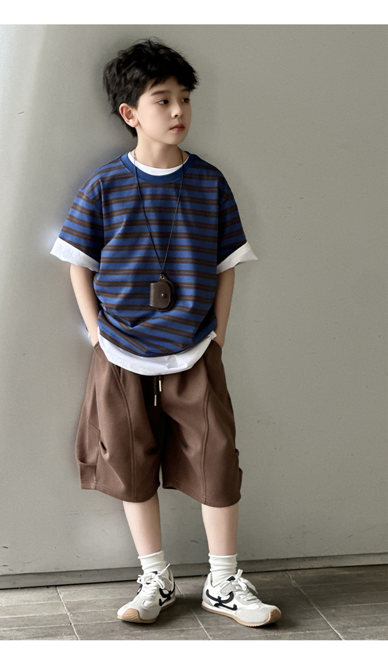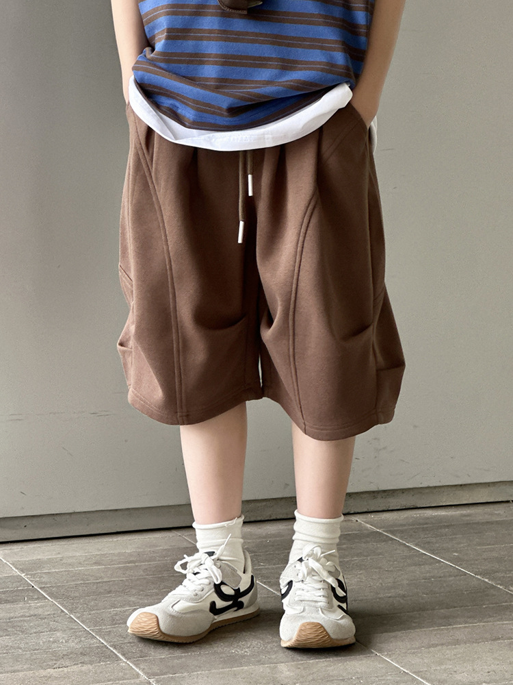 남아 여름 반바지 2026 신상 중대형 아동용 미국 스타일 트렌디 브랜드 주름 디자인 루즈핏 편안한 니트 캐주얼 5부 바지스토어 가기