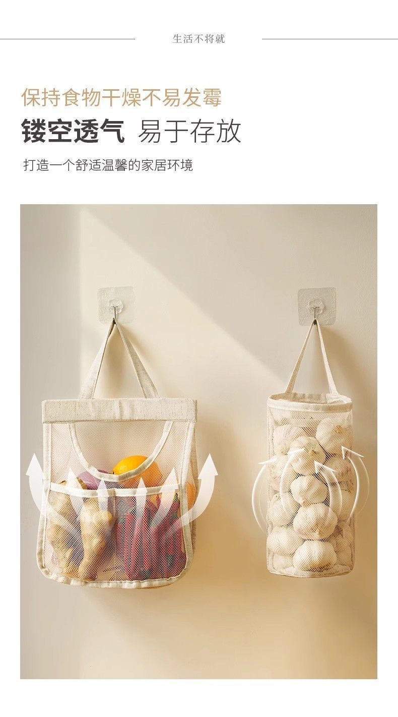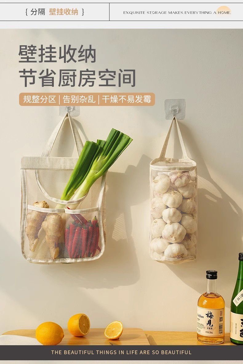姜蒜壁挂式收纳袋 厨房果蔬网眼透气储物袋子 墙挂式大蒜生姜网兜
