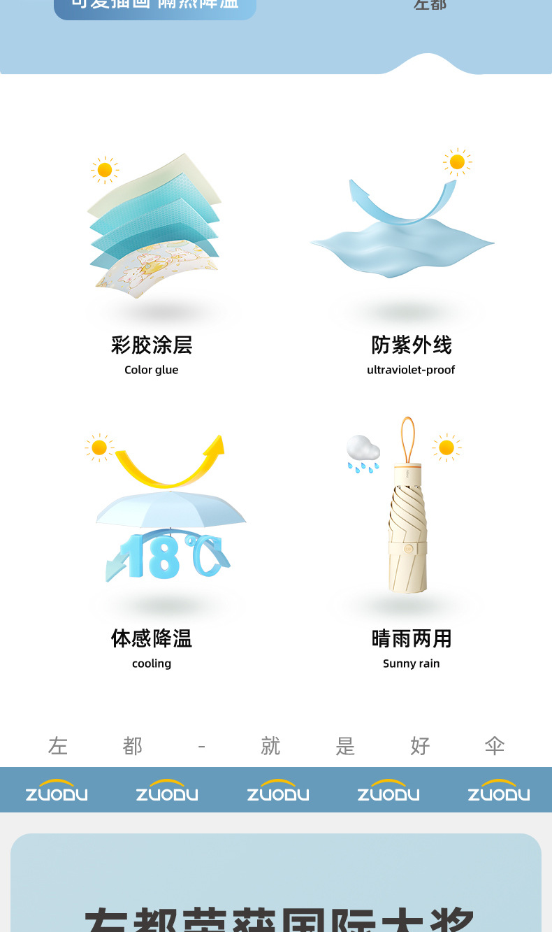 ZUODU 태양 우산 소형 휴대용 파라솔 안티 UV 여성 비닐 태양 우산 캡슐 우산스토어 가기