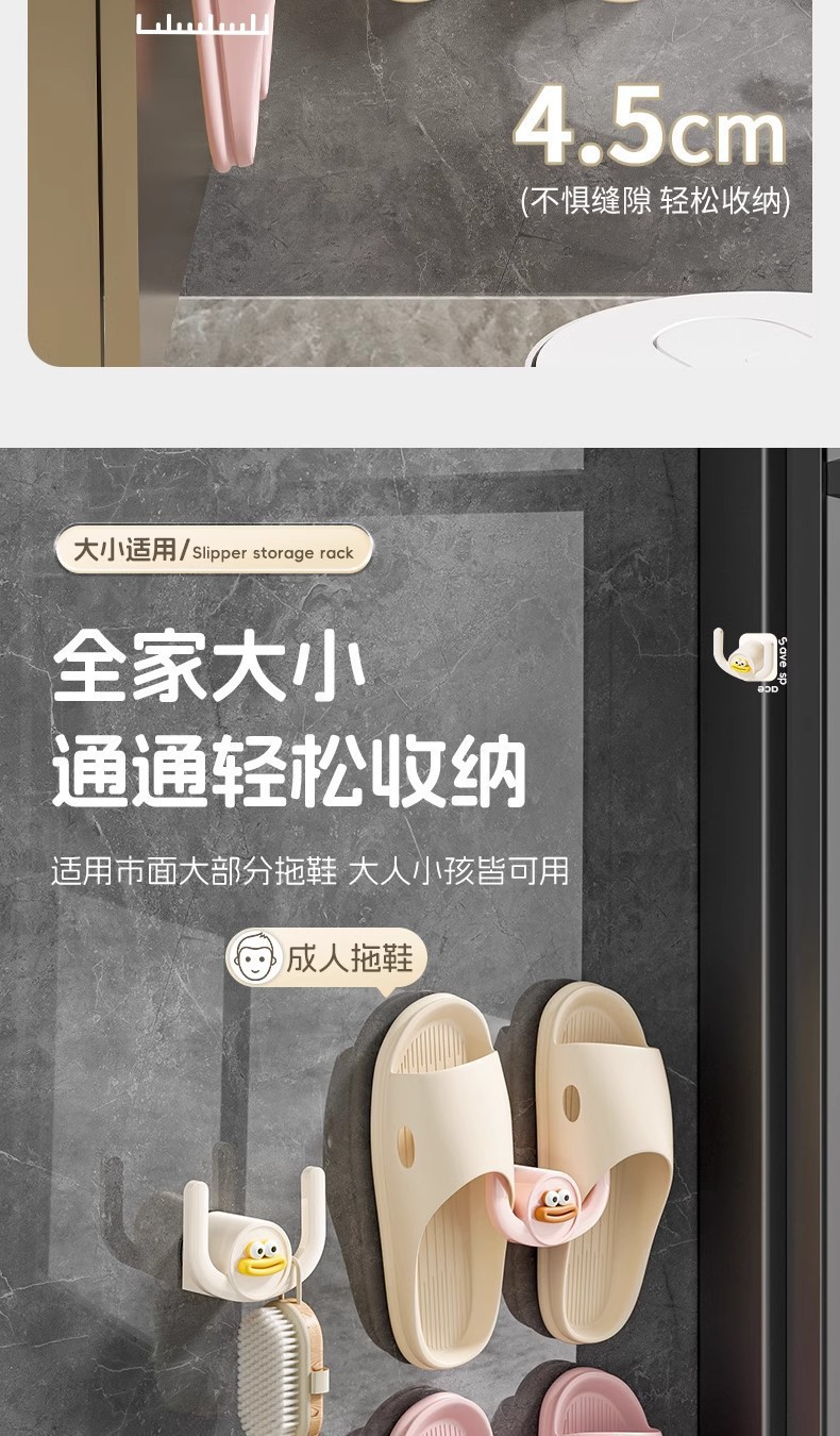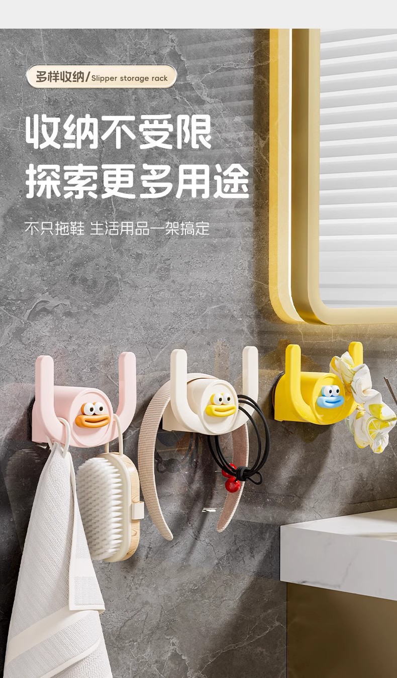 귀여운 욕실 슬리퍼 랙 벽걸이 형 랙 펀치없는 신발 화장실 보관 배수구 욕실 주방 보관 랙