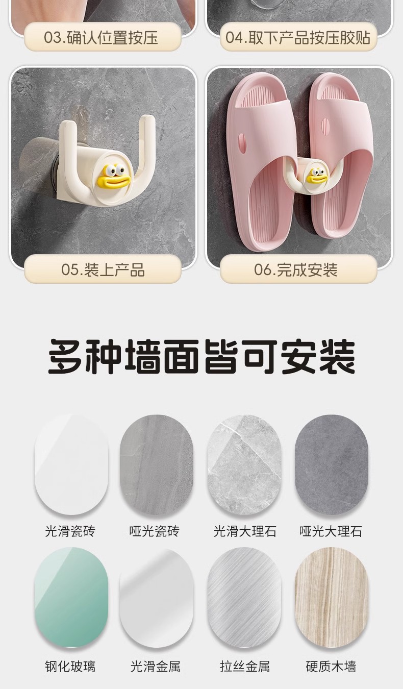 귀여운 욕실 슬리퍼 랙 벽걸이 형 랙 펀치없는 신발 화장실 보관 배수구 욕실 주방 보관 랙스토어 가기