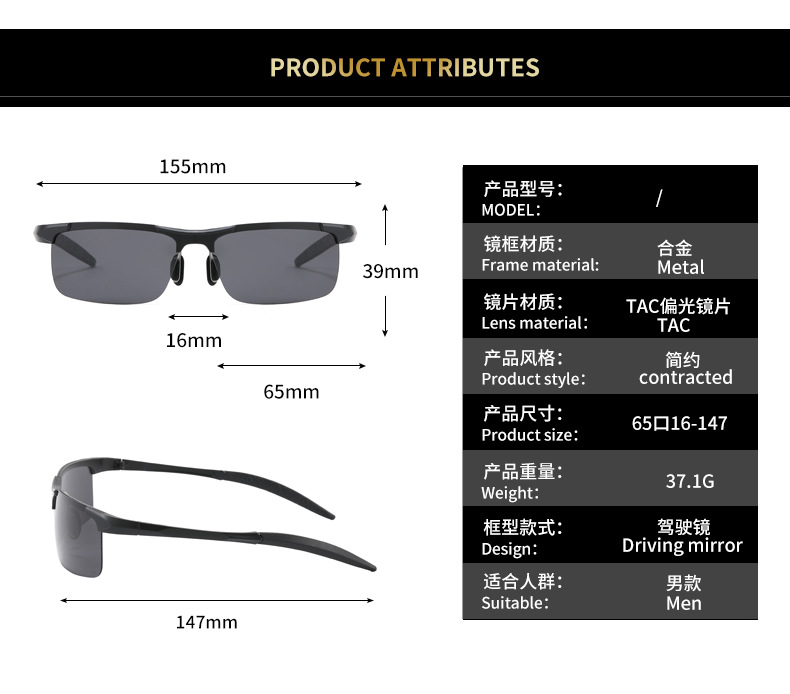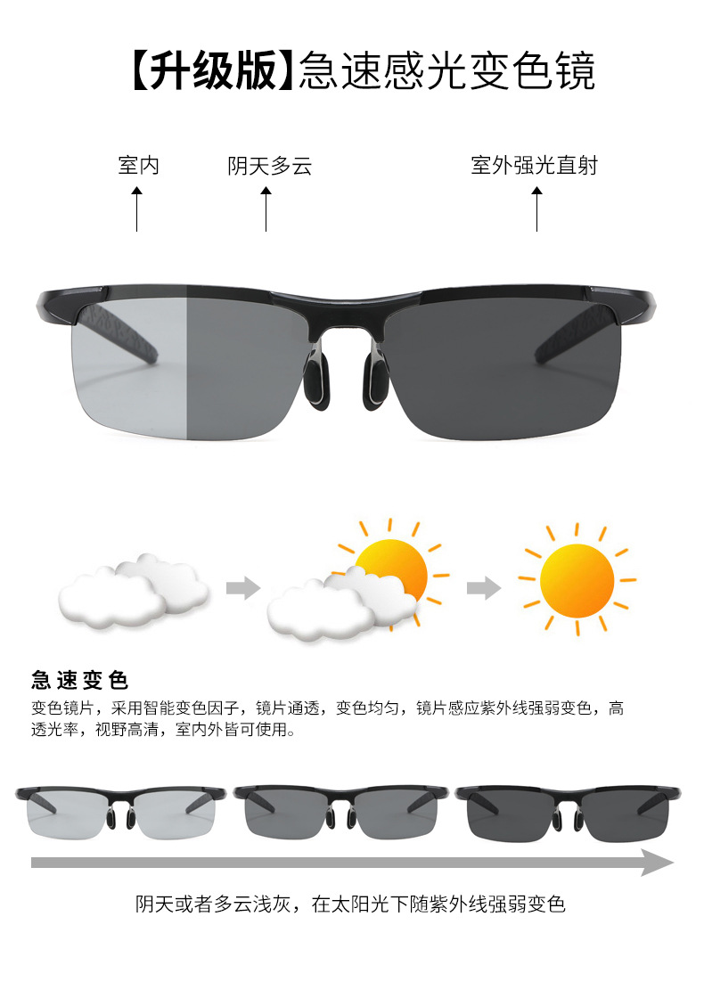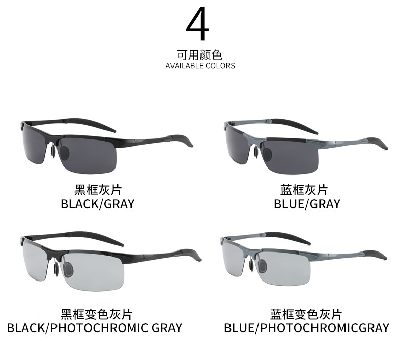 아마존 신형 편광 변색 반테 남성용 선글라스 금속 합금 야외 사이클링 스포츠 안경 제조업체25