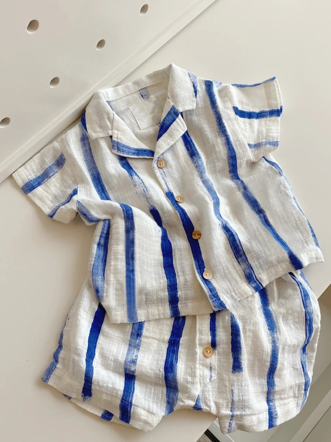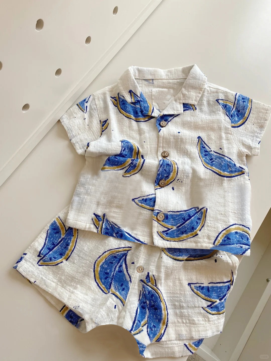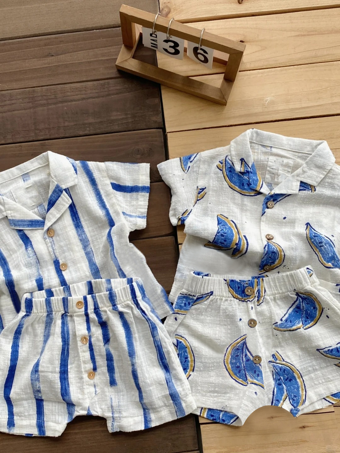 2026 북유럽 여름 신상품 아동용 폴로 칼라 반팔 반바지 세트 스트라이프 과일 패턴 남아용 상의스토어 가기