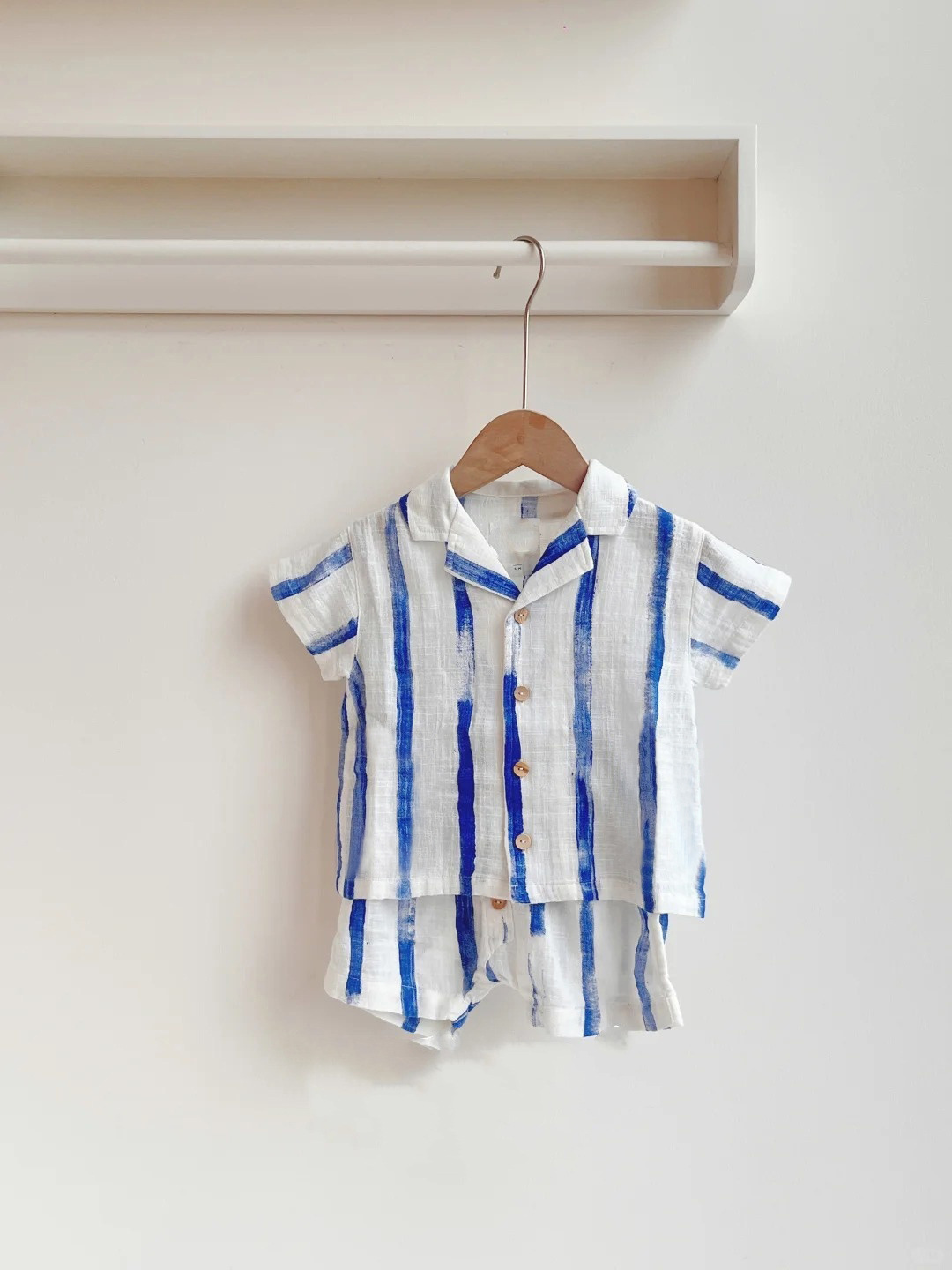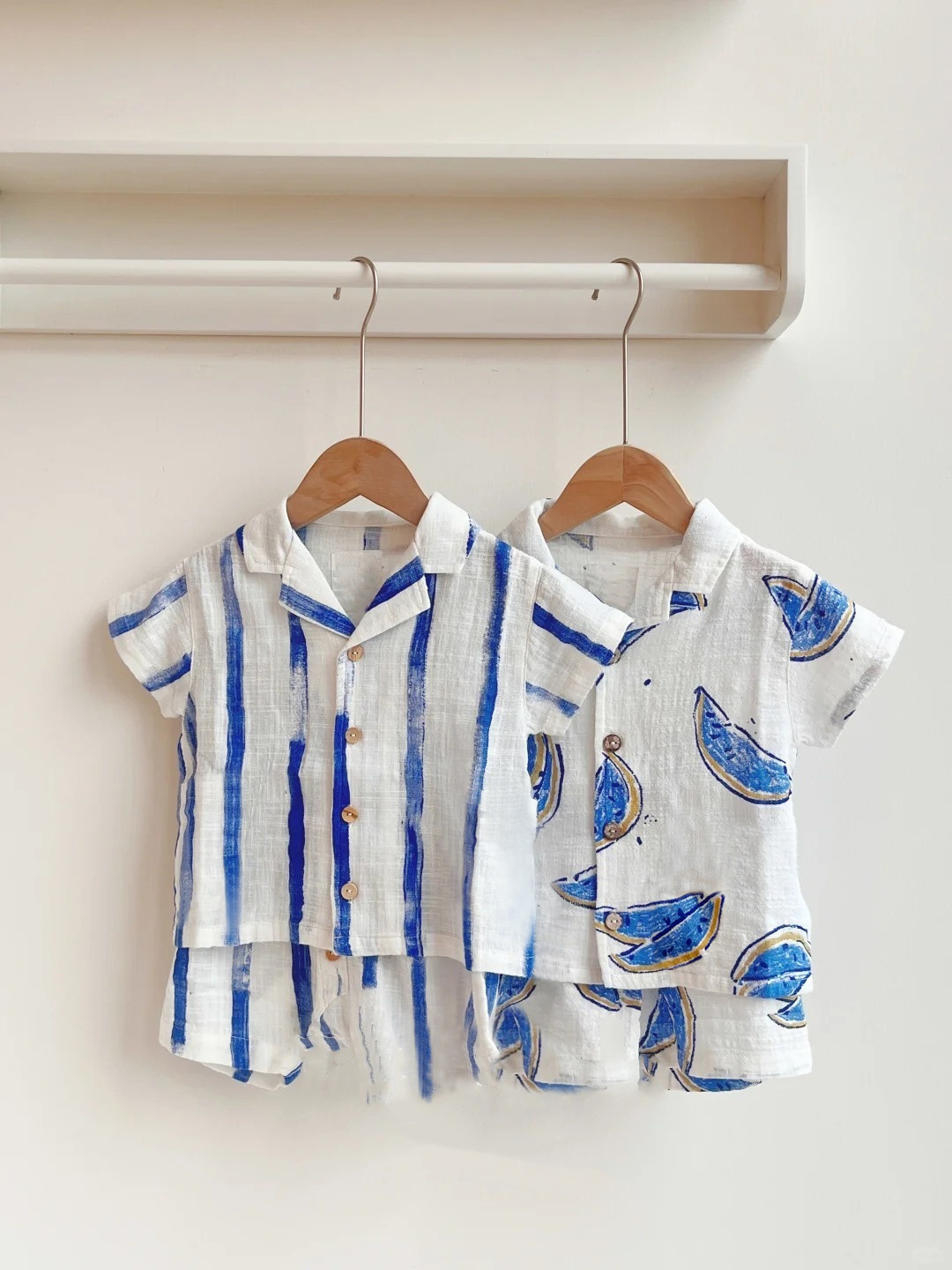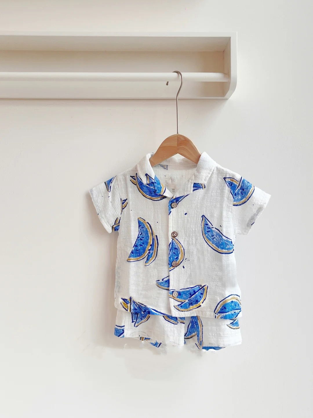 2026 북유럽 여름 신상품 아동용 폴로 칼라 반팔 반바지 세트 스트라이프 과일 패턴 남아용 상의스토어 가기