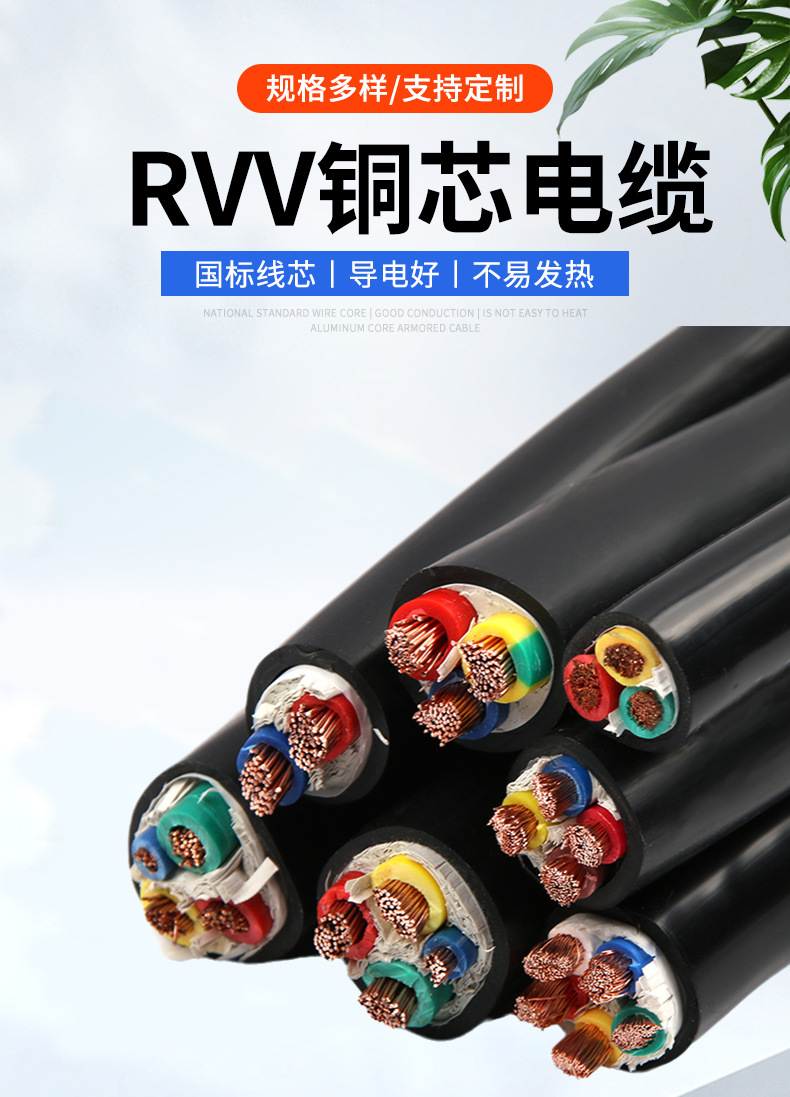 국가 표준 순수 구리 RVV2 3 4 5 코어 1.5 2.5 4 6 10 평방 방염 가정용 실외 외장 전원 코드스토어 가기