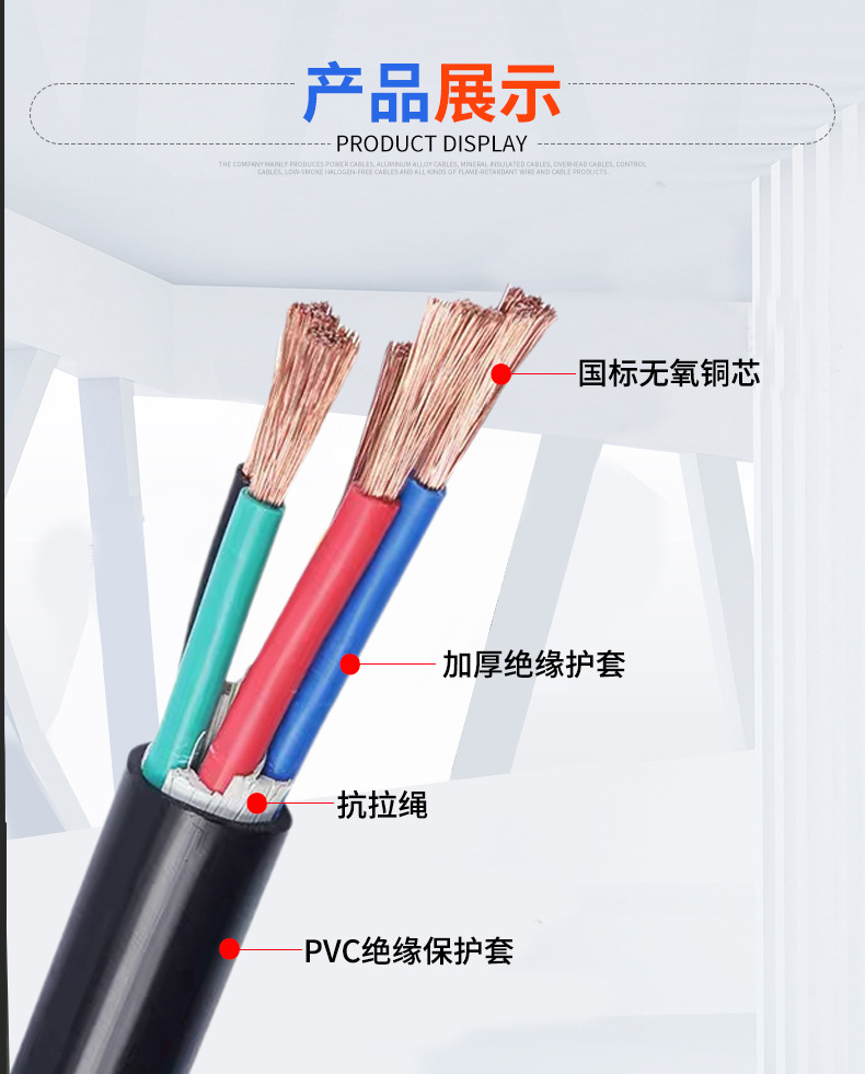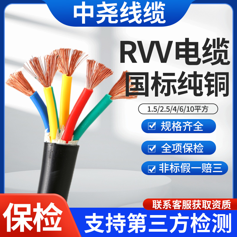 국가 표준 순수 구리 RVV2 3 4 5 코어 1.5 2.5 4 6 10 평방 방염 가정용 실외 외장 전원 코드
