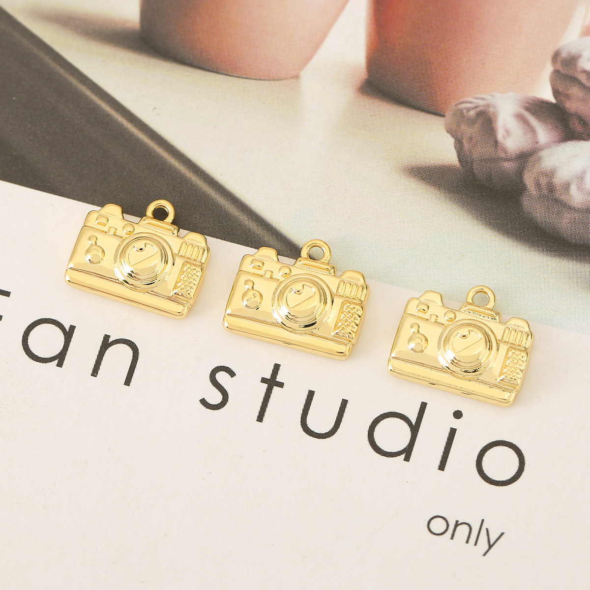 반제품 보석 액세서리 소재 구리 도금 진짜 금 상감 지르콘 카메라 펜던트 diy 목걸이 팔찌 펜던트스토어 가기