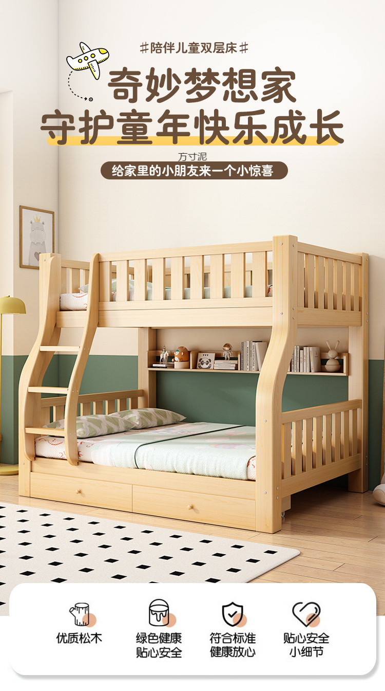 더블침대, 원목 가정용 하이베드, 다기능 조합침대, 소형 아파트 어린이 이층침대