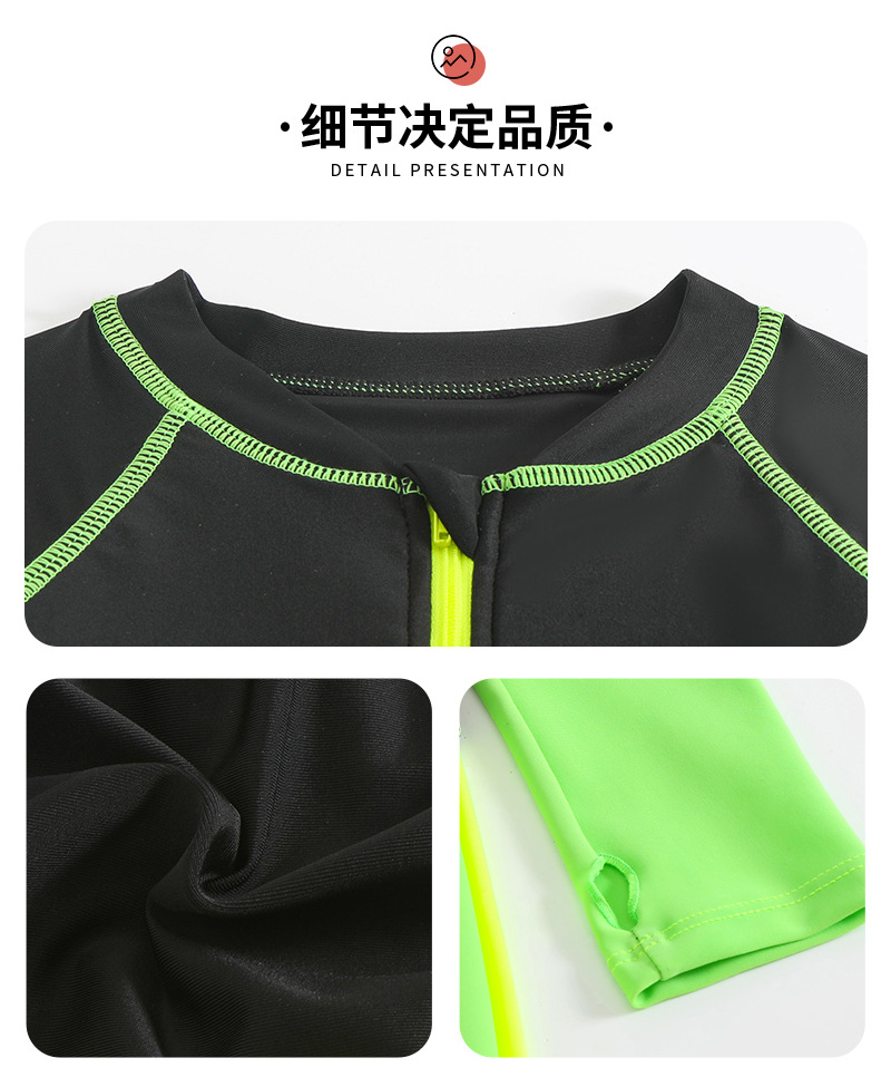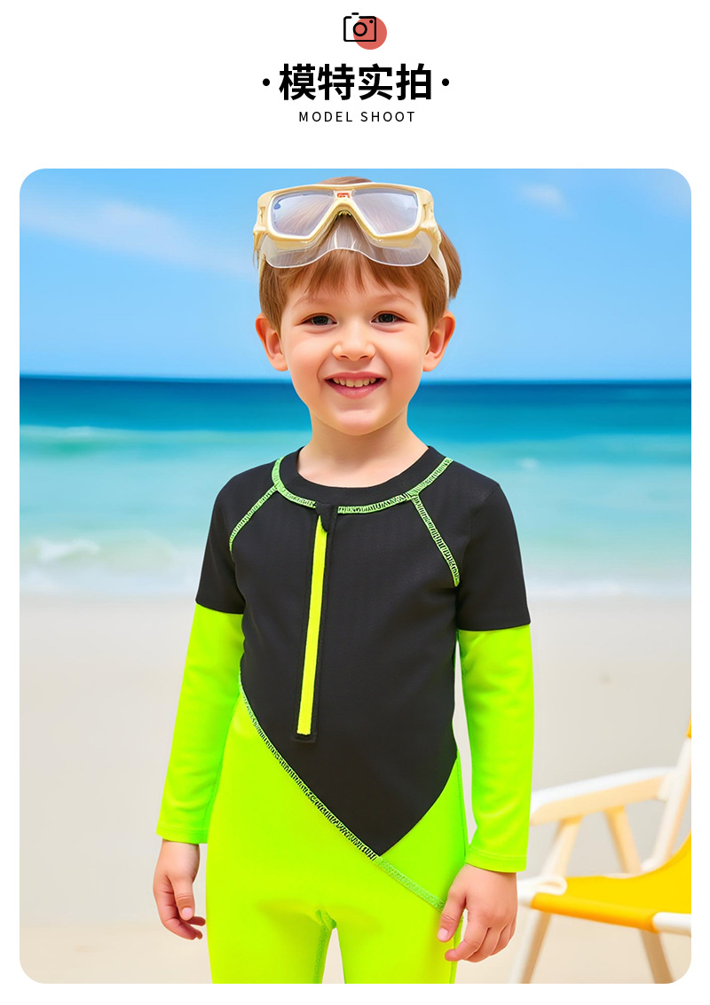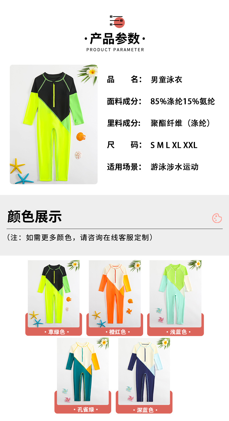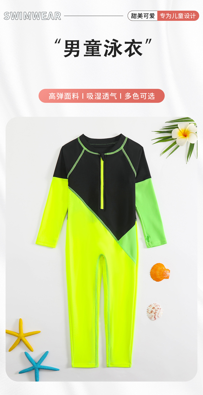 새로운 대비 색상 수영복 접합 디자인 소년 야외 태양 보호 원피스 수영복 속건성 긴팔 소년 수영복스토어 가기