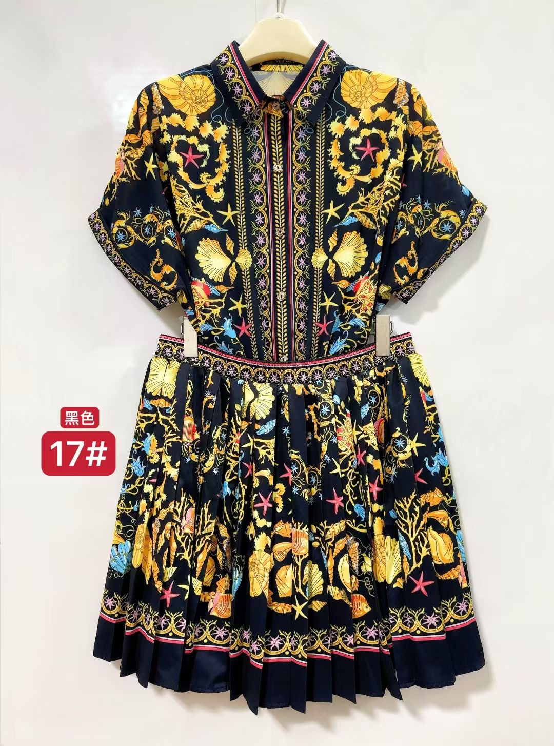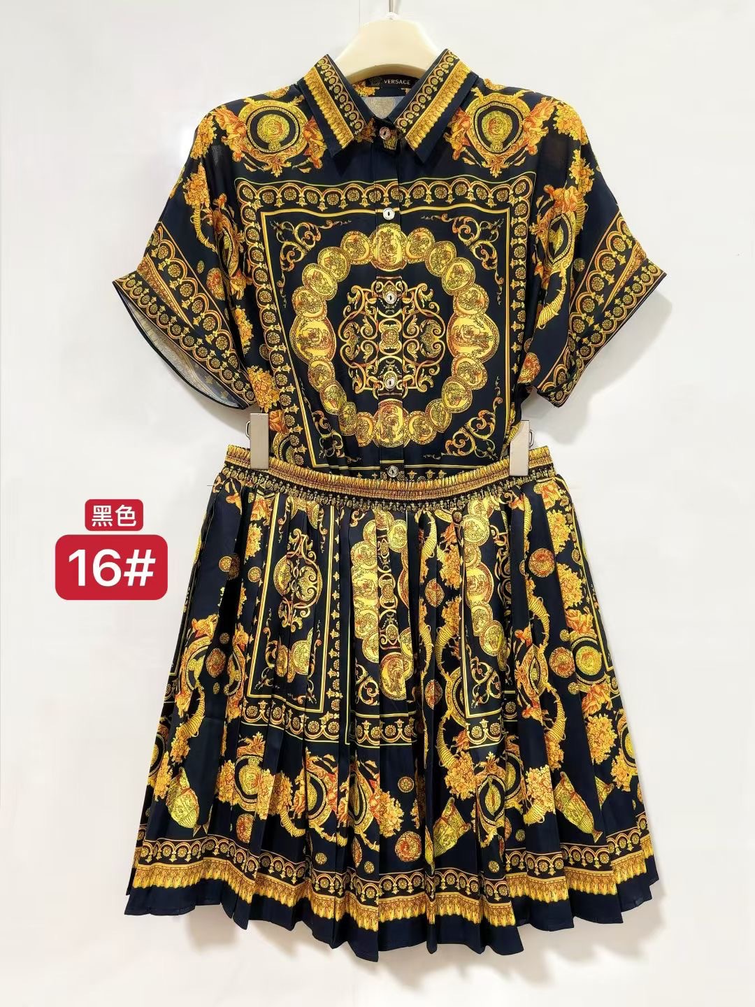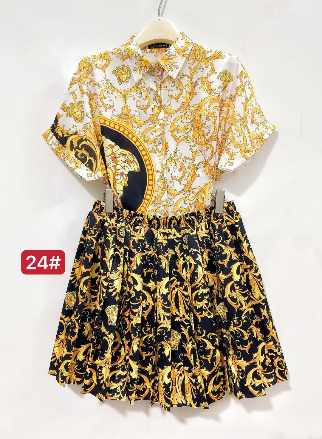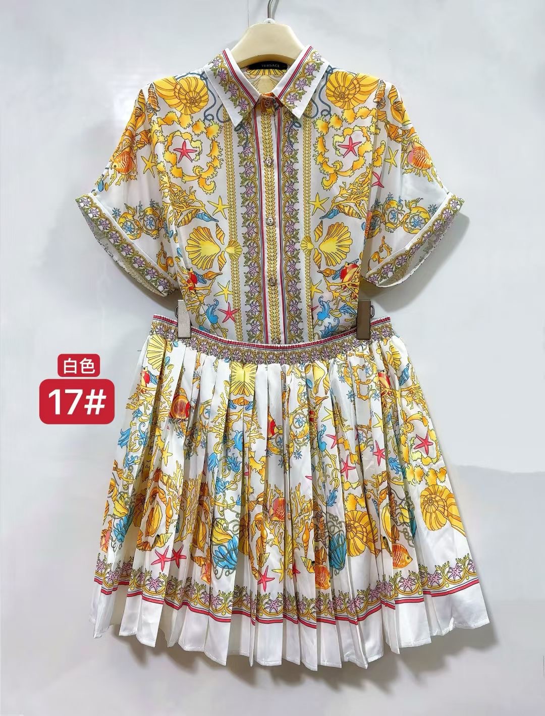2026년 해외 무역 여성복 레트로 기하학적 프린트 반팔 셔츠 투피스 세트 + 루즈핏 짧은 치마 세트