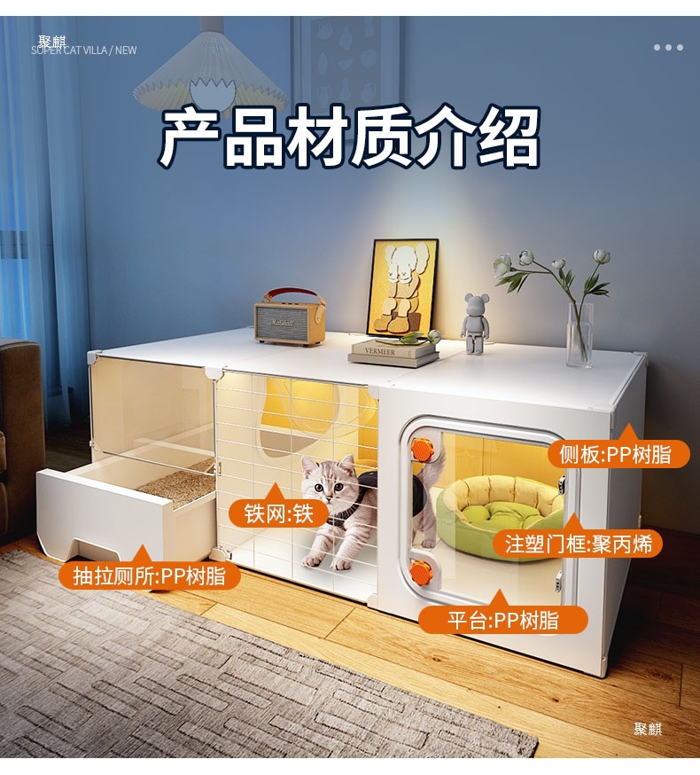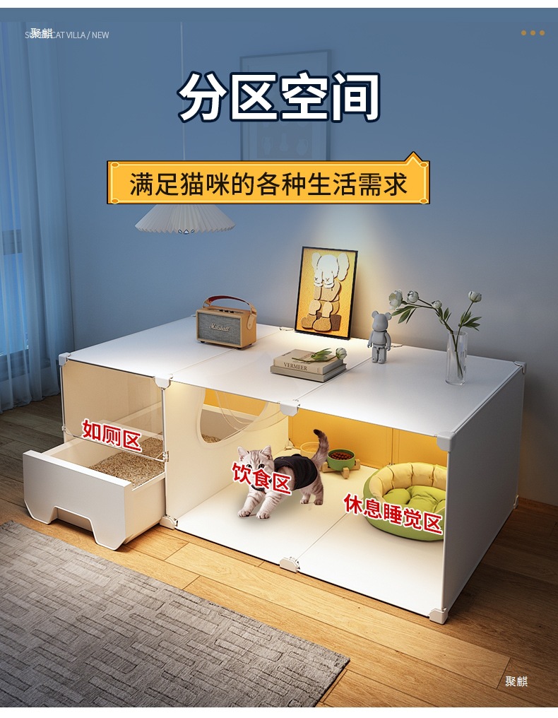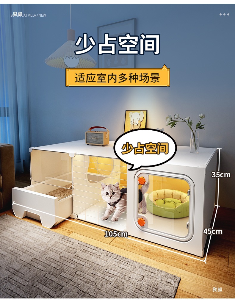공간을 차지하지 않는 고양이 케이지, 가정용 실내 소형 고양이 빌라, 침실 1개, 거실 1개, 욕실 1개, 고양이 둥지, 고양이 화장실 일체형
