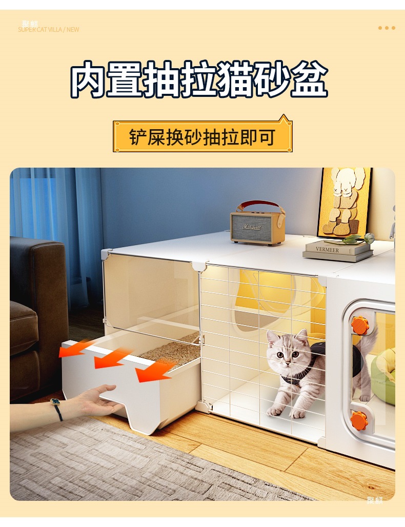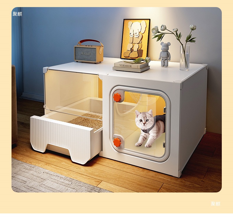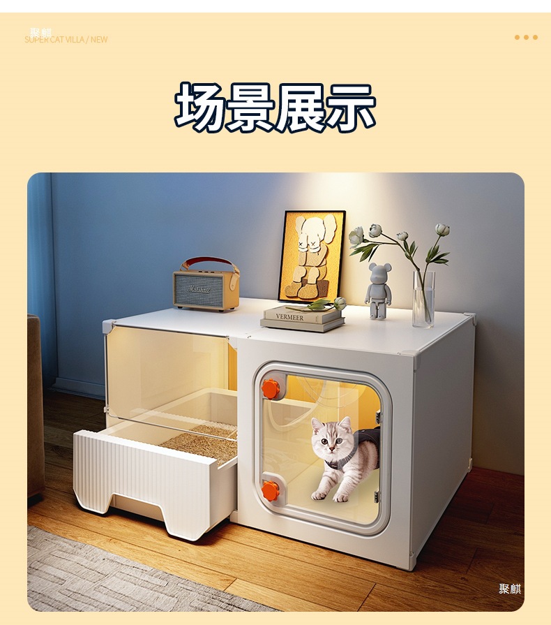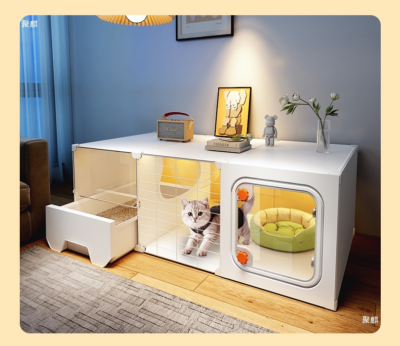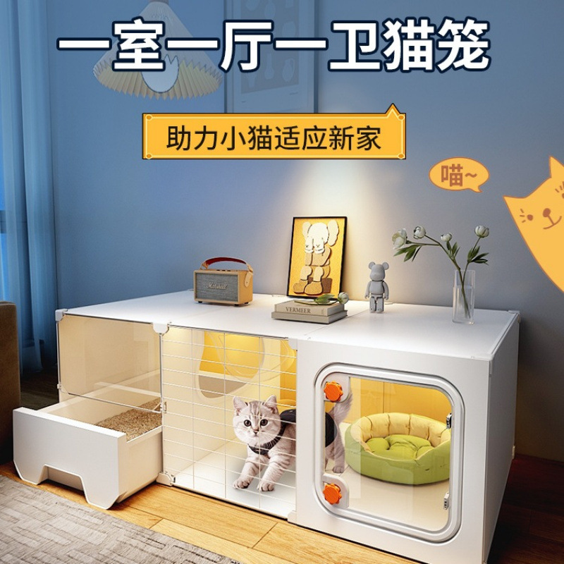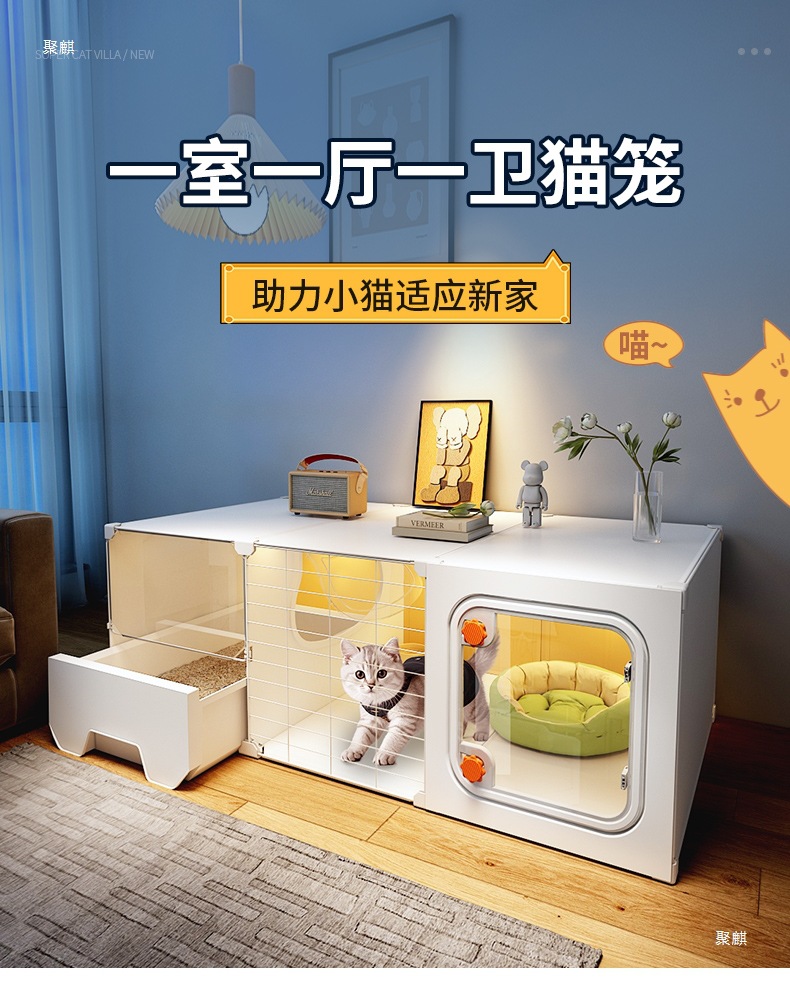 공간을 차지하지 않는 고양이 케이지, 가정용 실내 소형 고양이 빌라, 침실 1개, 거실 1개, 욕실 1개, 고양이 둥지, 고양이 화장실 일체형스토어 가기