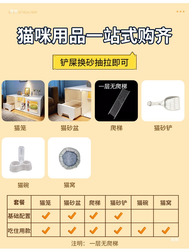 • 기본 구성: 고양이 케이지 + 고양이 배변 상자 + 고양이 배변 국자