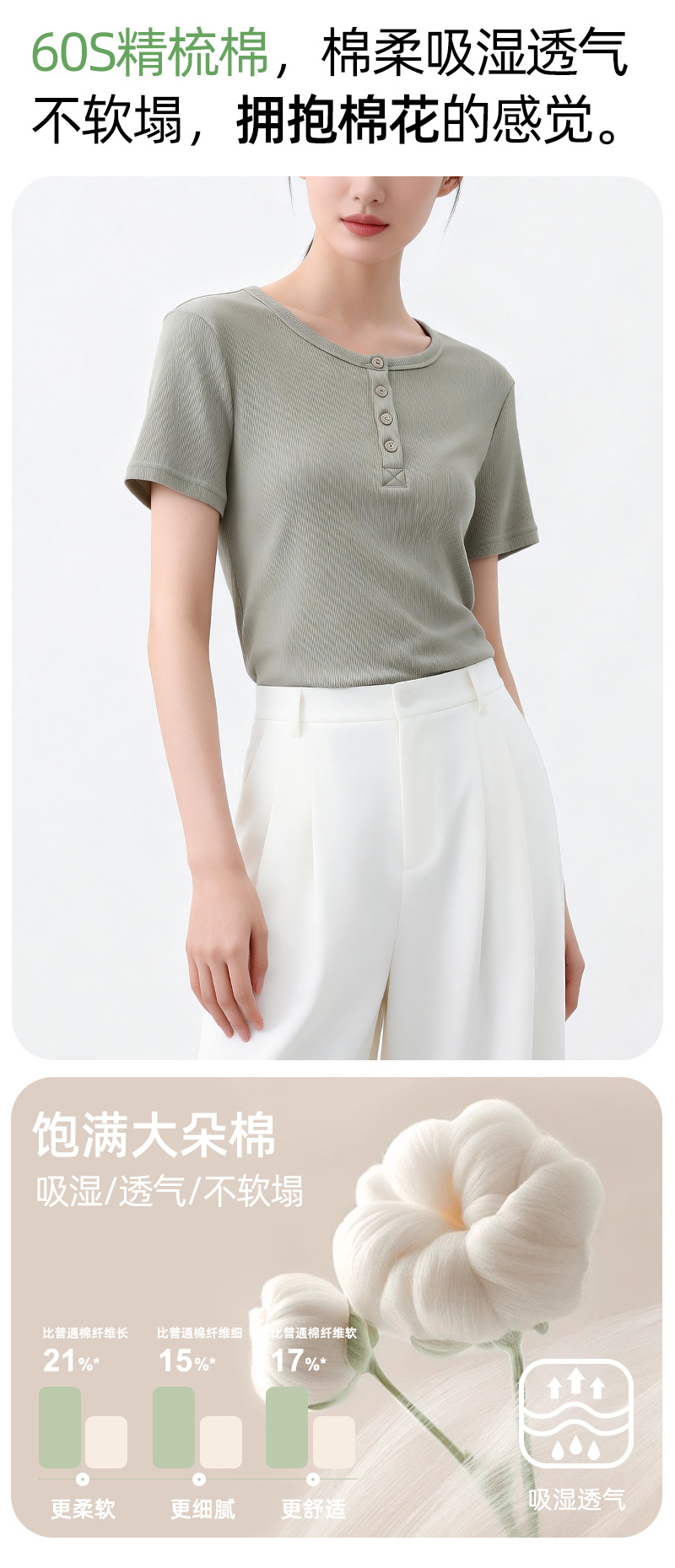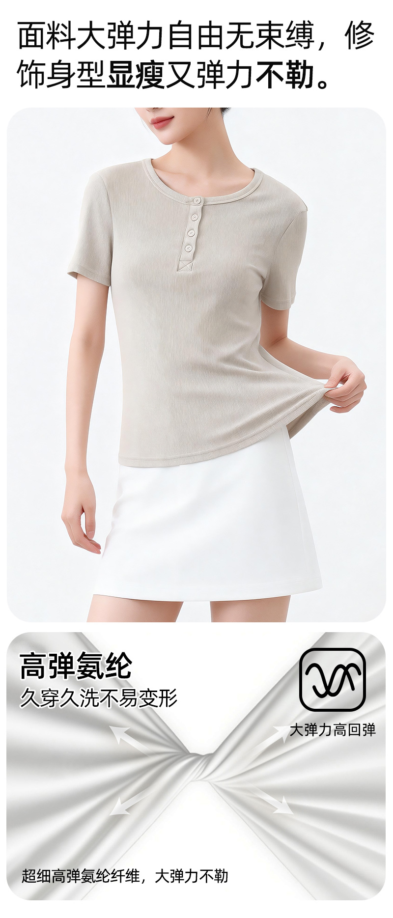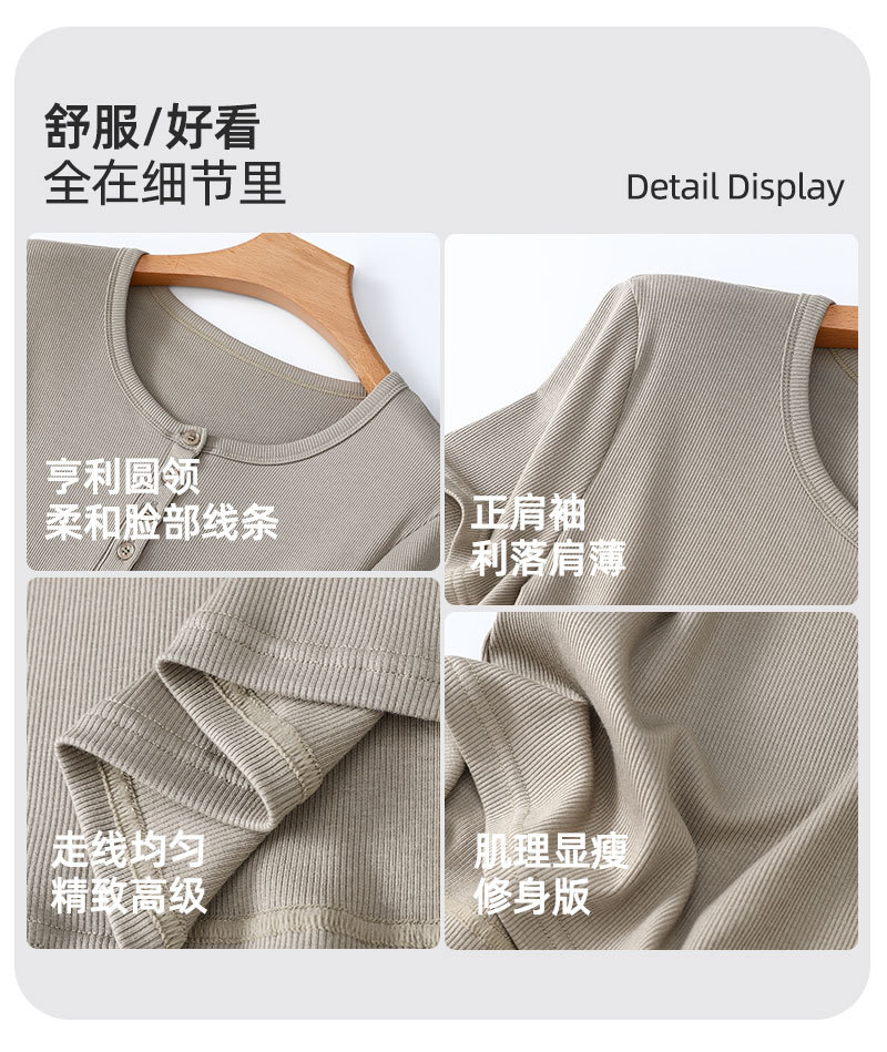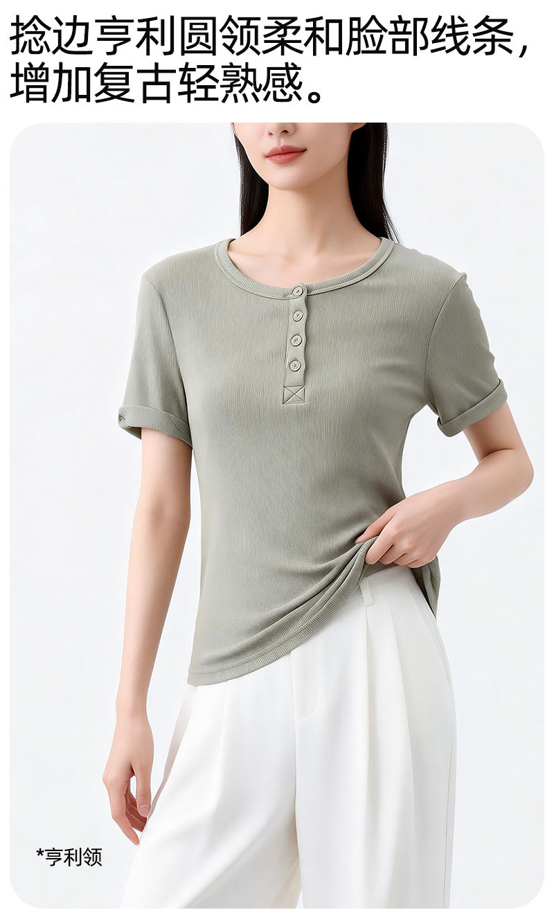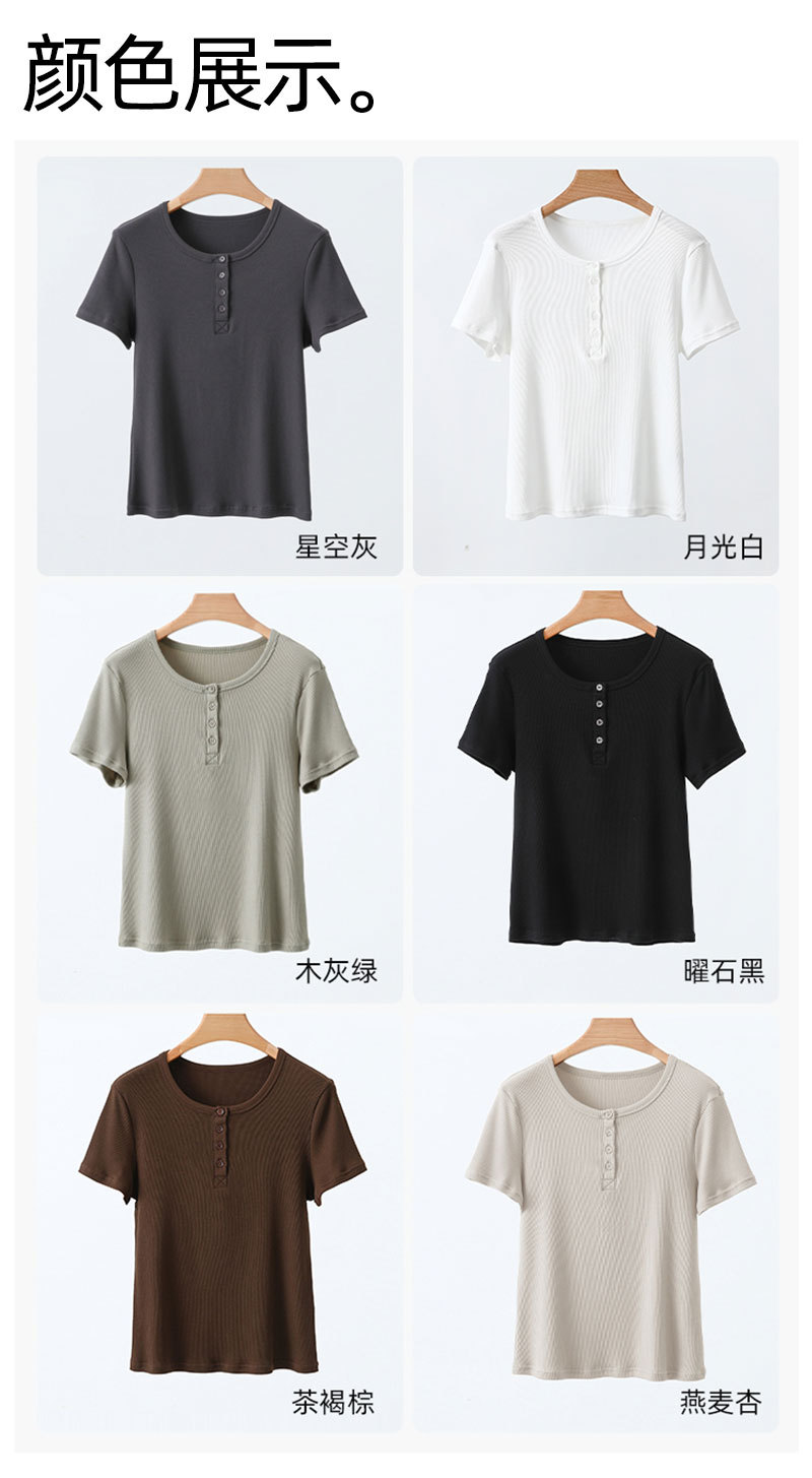 [란징 모달] 여성용 헨리넥 골지 버튼 티셔츠 한국 스타일 패션 슬림핏 핫걸 반팔탑스토어 가기