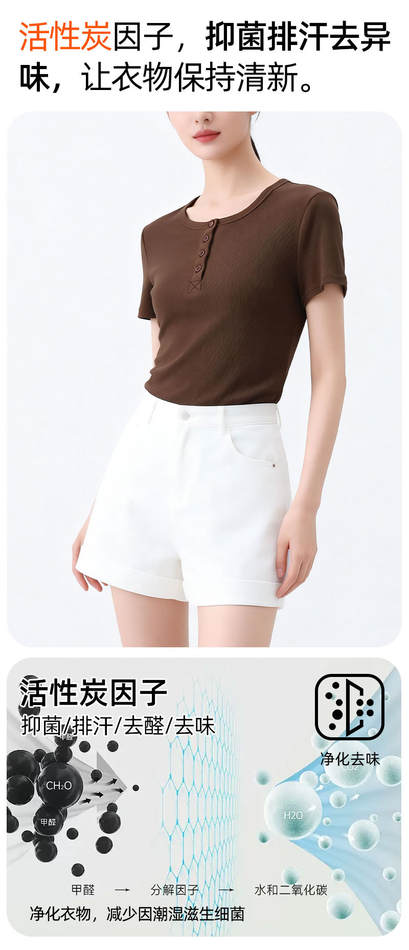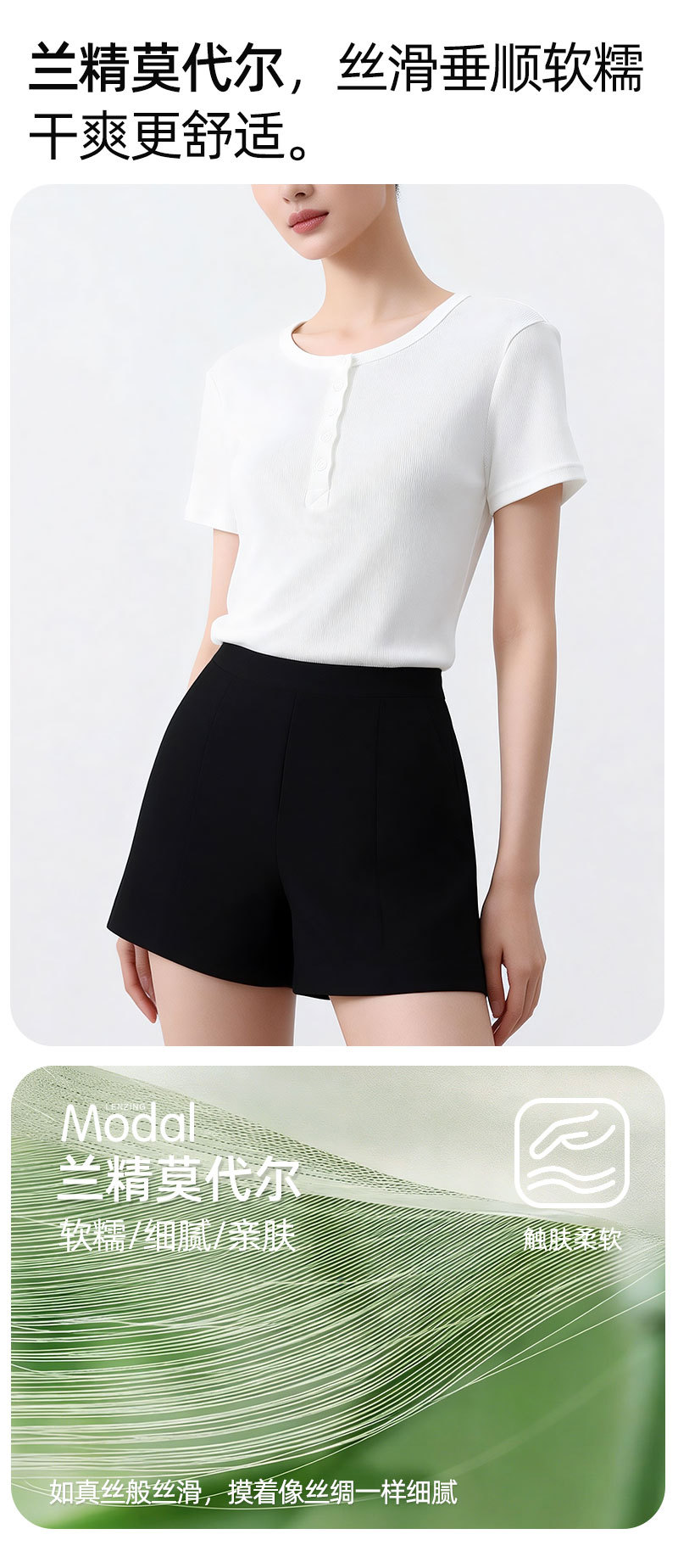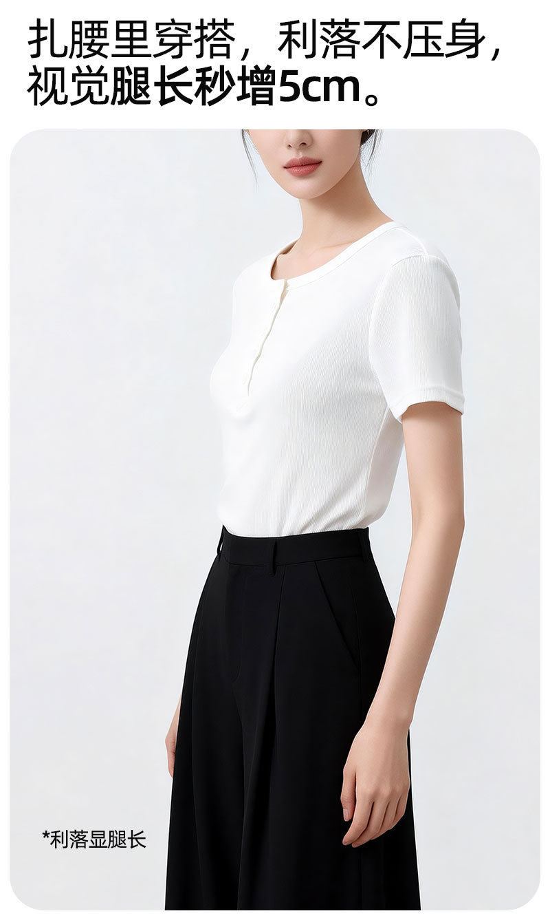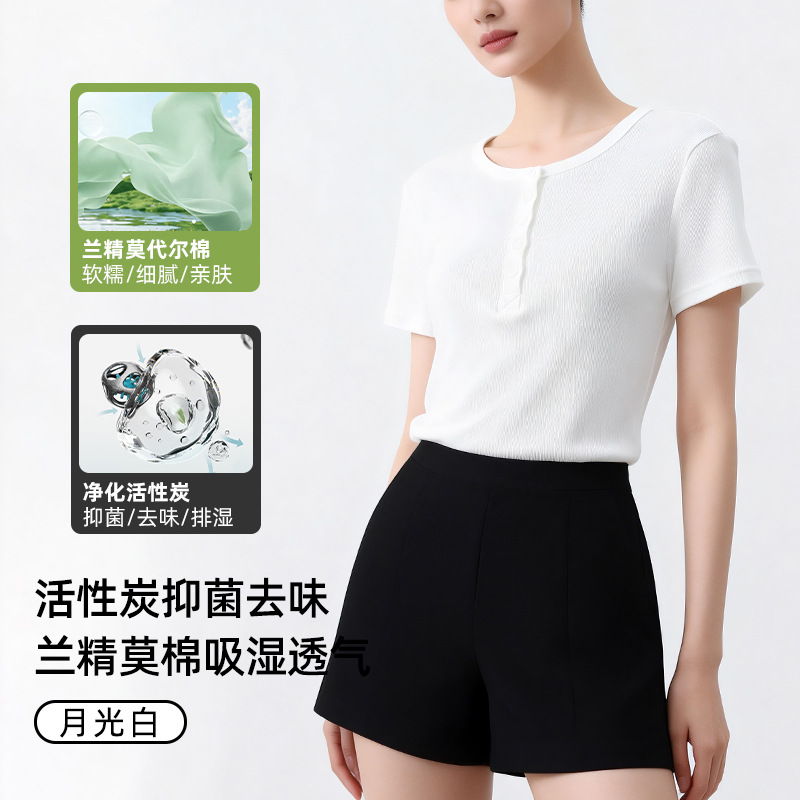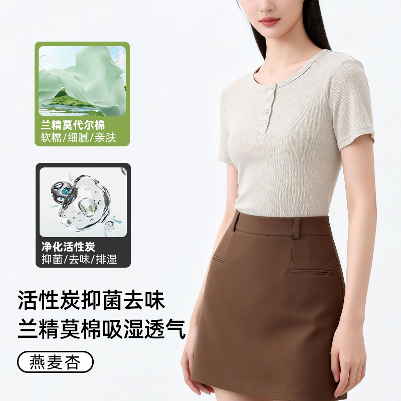 [란징 모달] 여성용 헨리넥 골지 버튼 티셔츠 한국 스타일 패션 슬림핏 핫걸 반팔탑