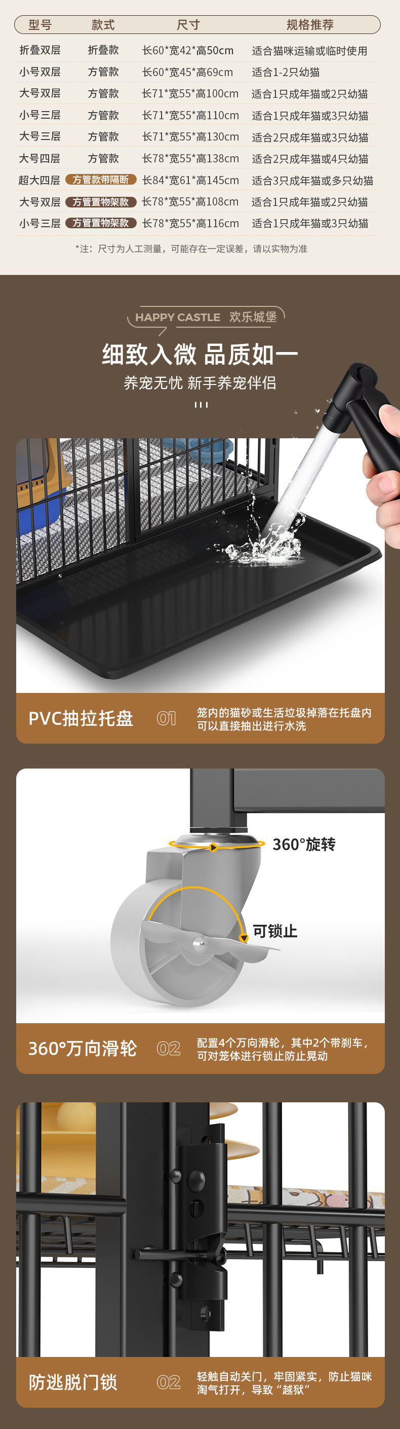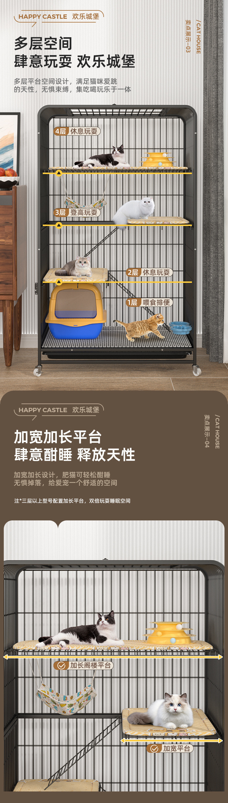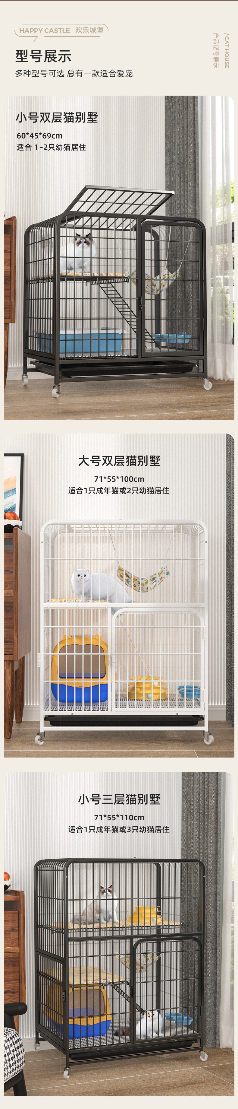 두껍고 강화된 2층 고양이 케이지, 가정용 실내 초대형 자유 공간, 초대형 고양이 빌라