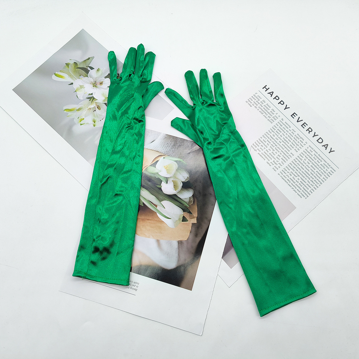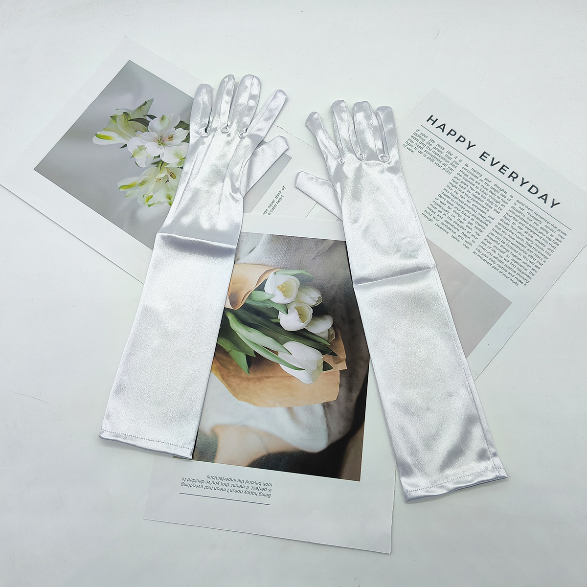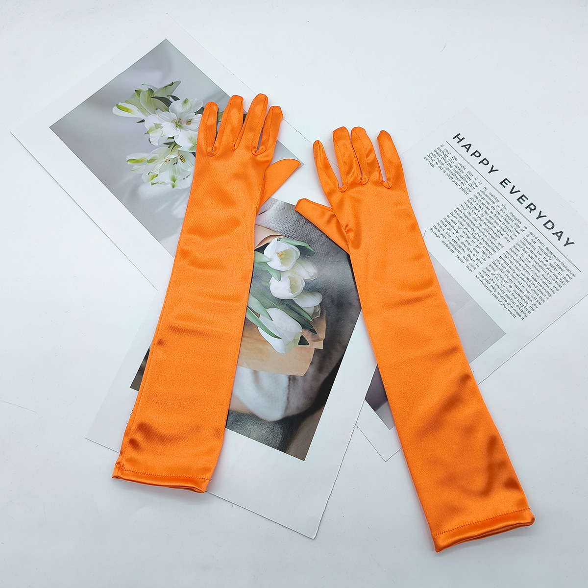 어린이용 흰색 장갑, 긴 장갑, 핑크, 검정색, 주황색, 노란색 장갑, 무대 공연 착용