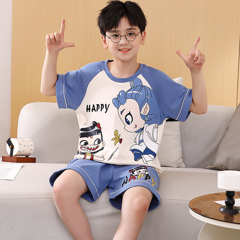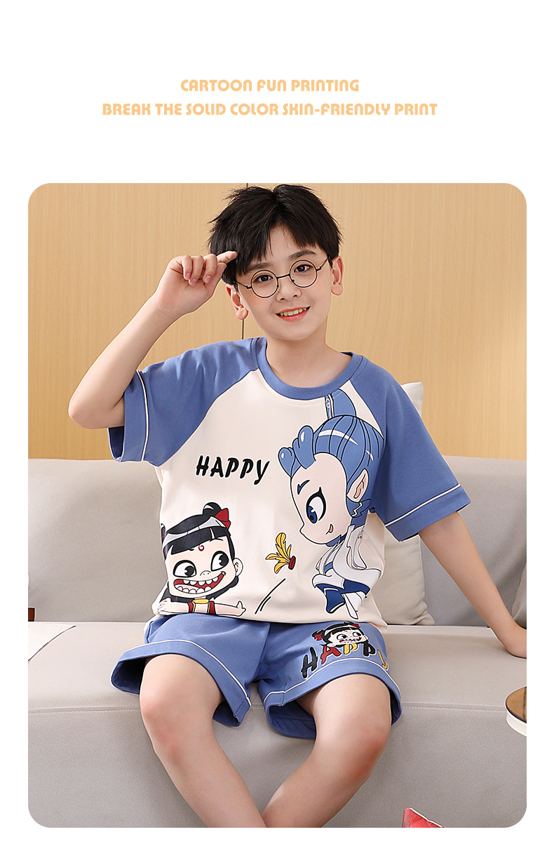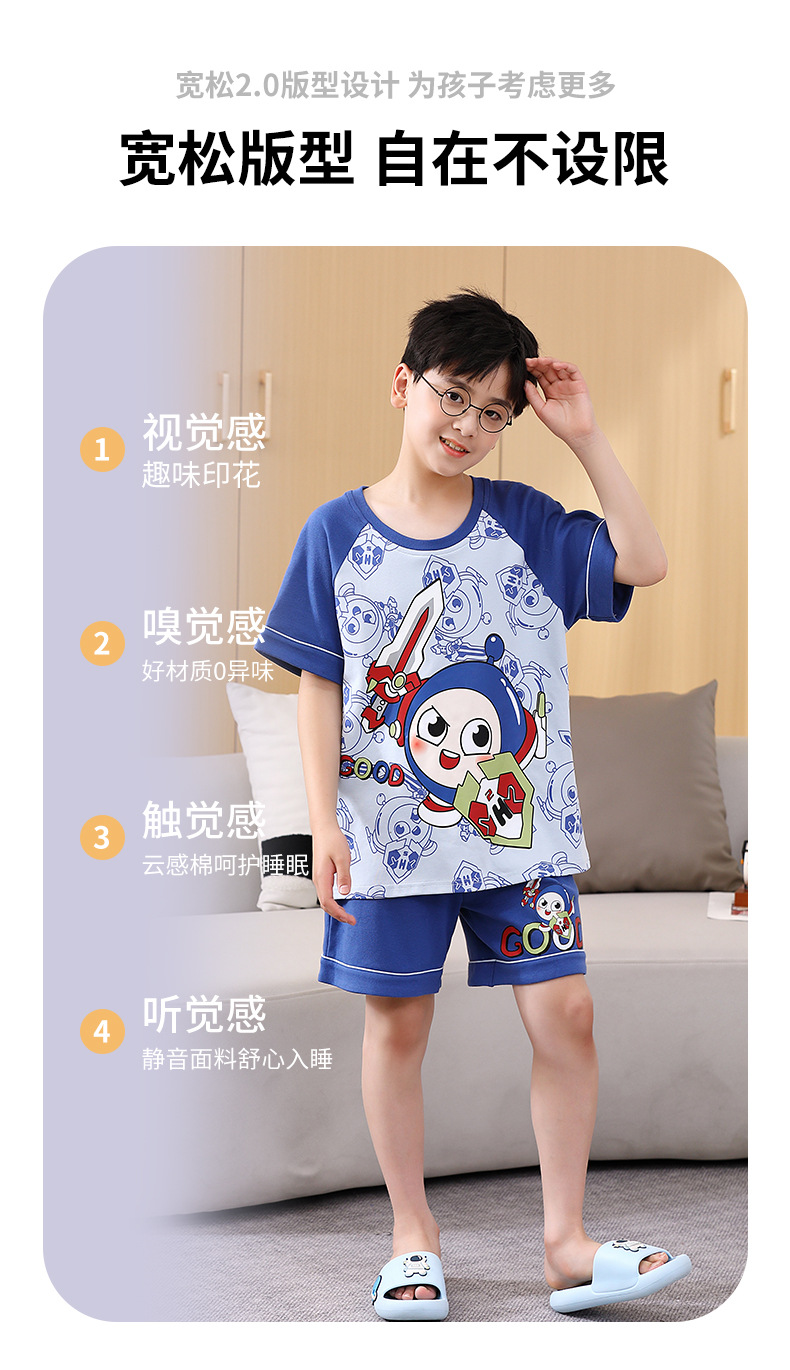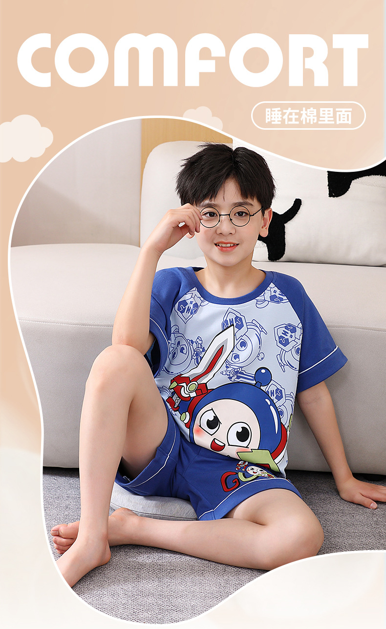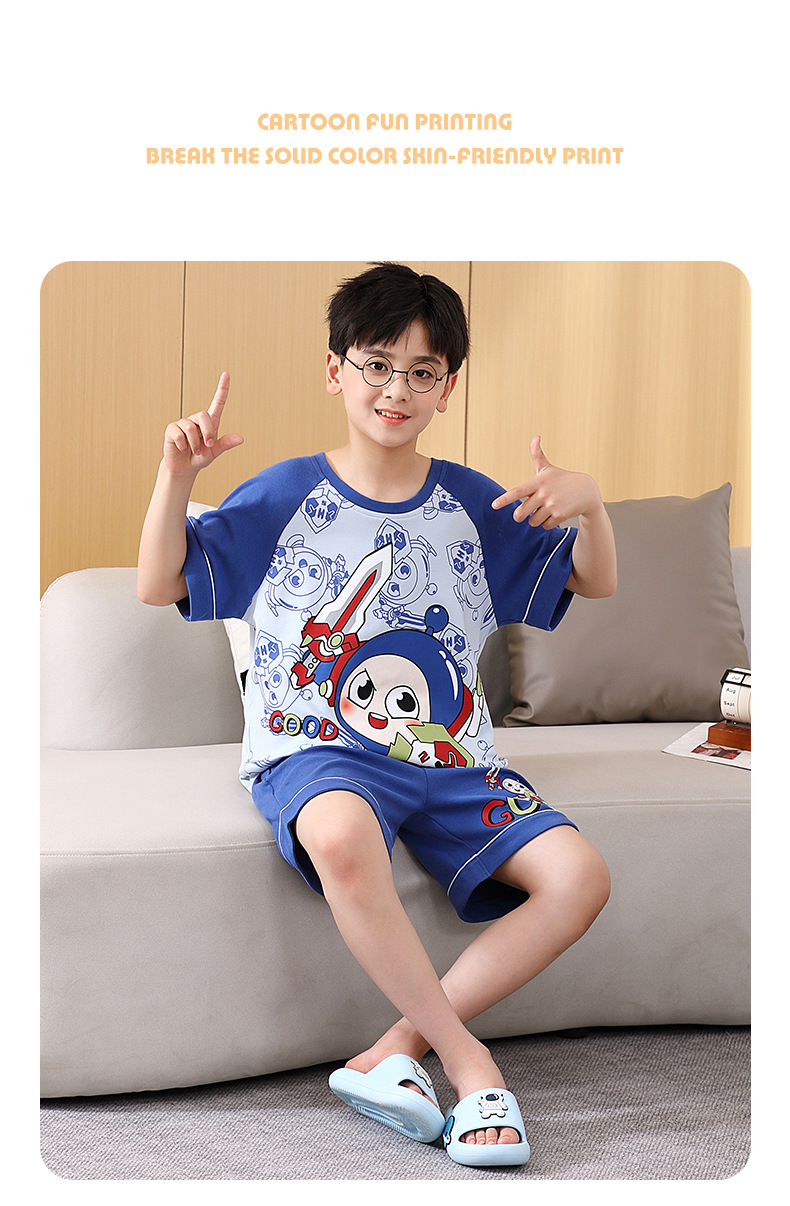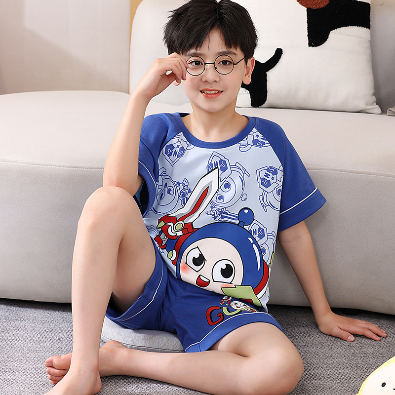 여름 소년 잠옷 반팔 만화 빗질면 중대형 어린이 한국어 버전은 집 밖에서 입을 수 있습니다. 여름스토어 가기