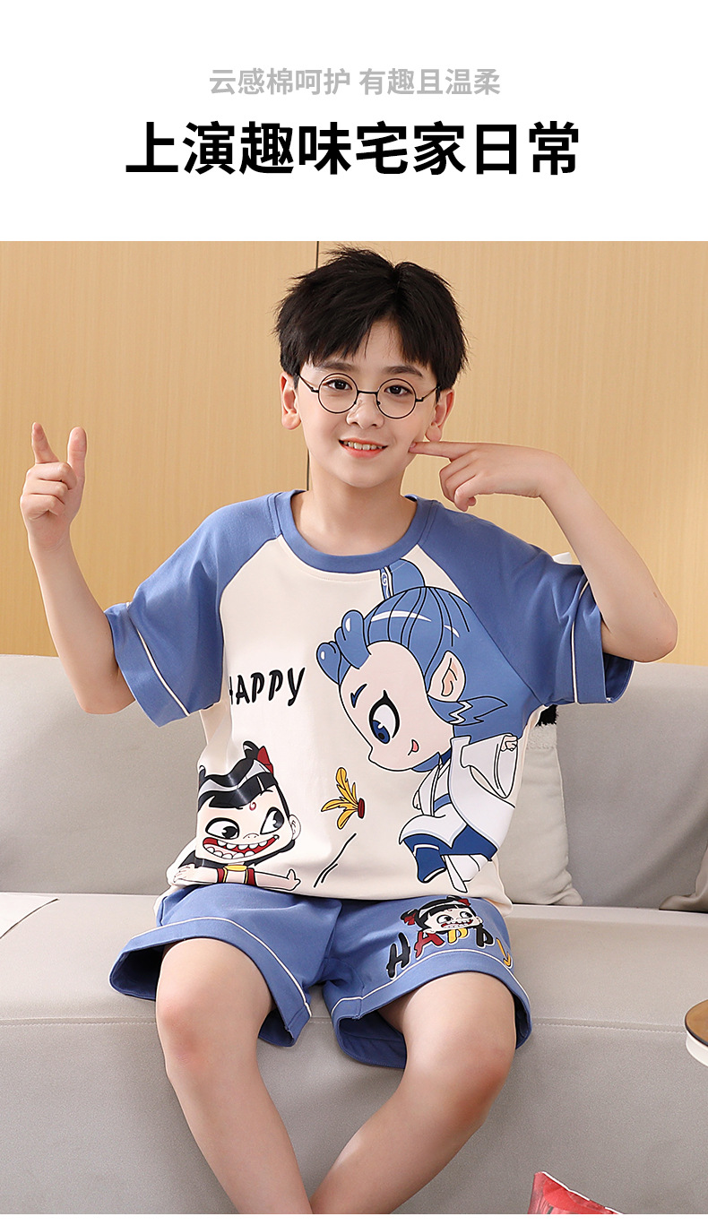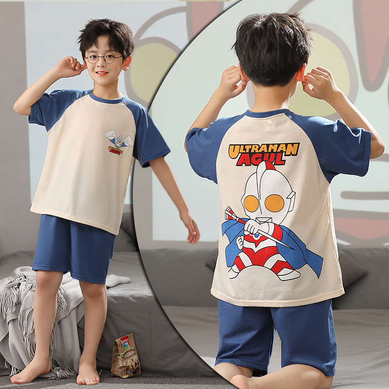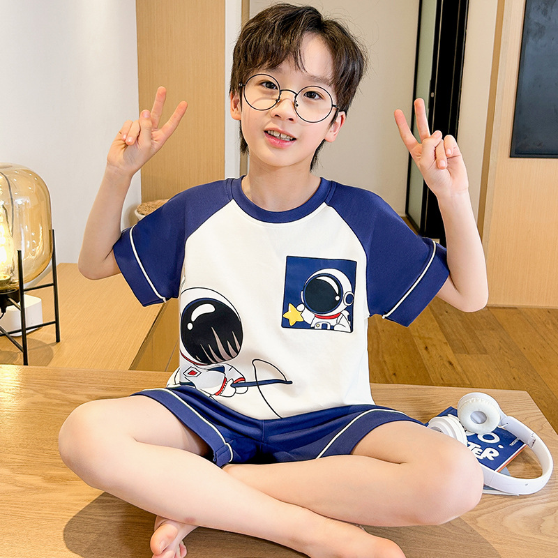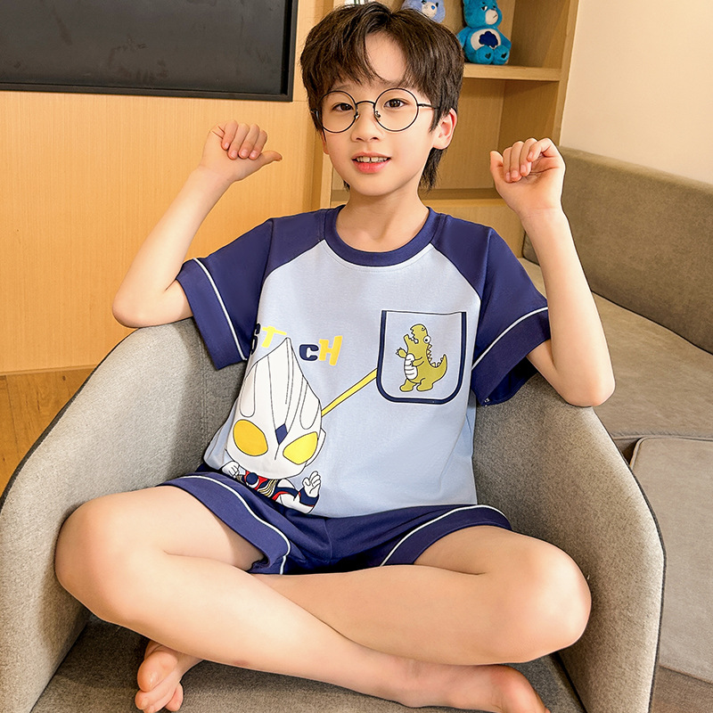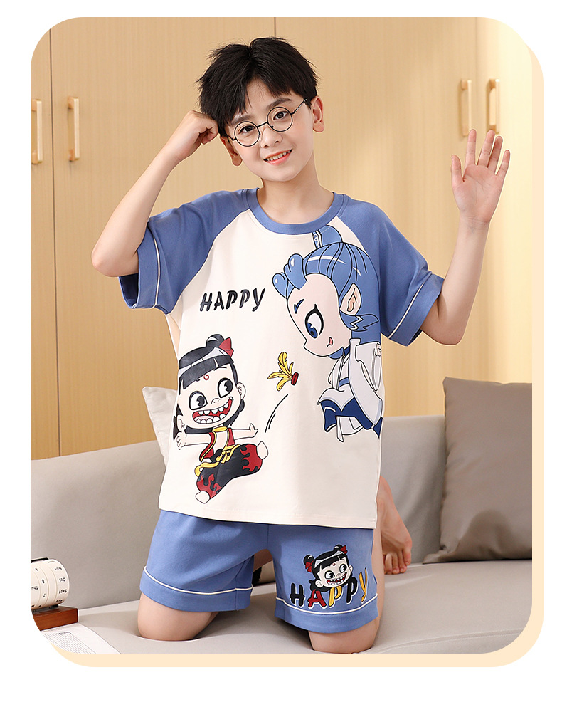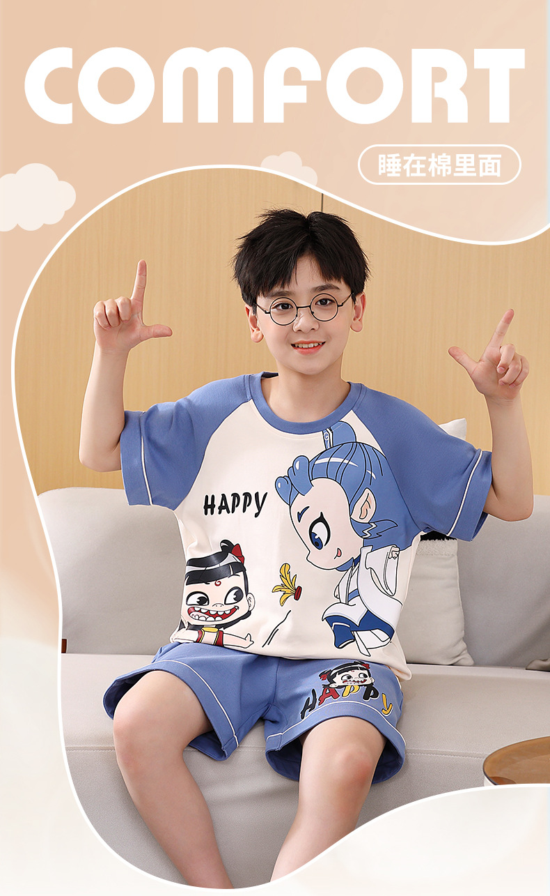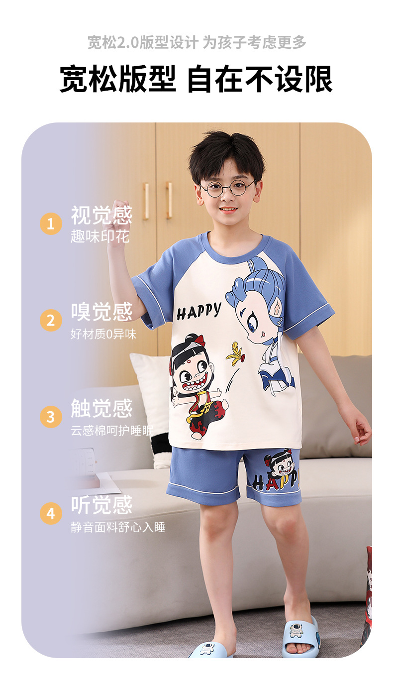 여름 소년 잠옷 반팔 만화 빗질면 중대형 어린이 한국어 버전은 집 밖에서 입을 수 있습니다. 여름스토어 가기