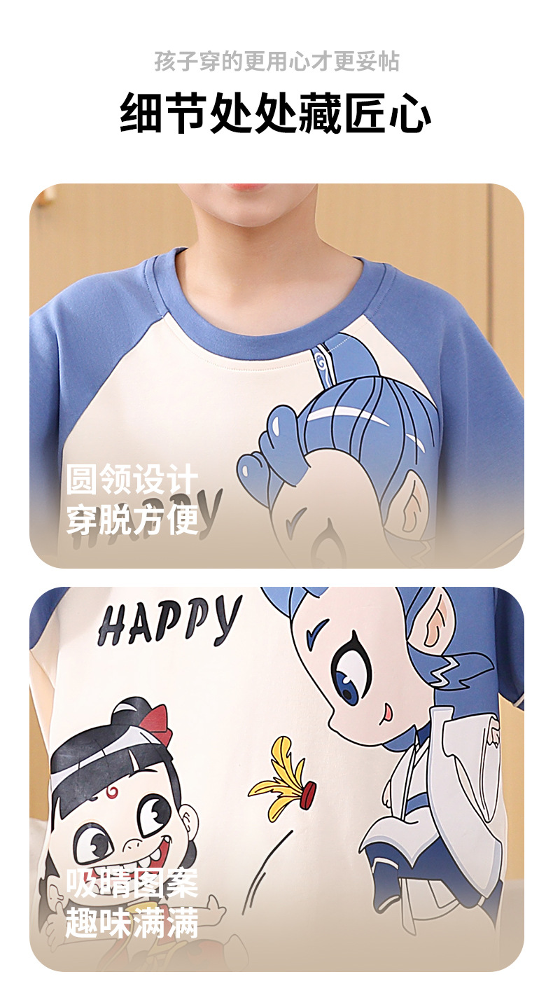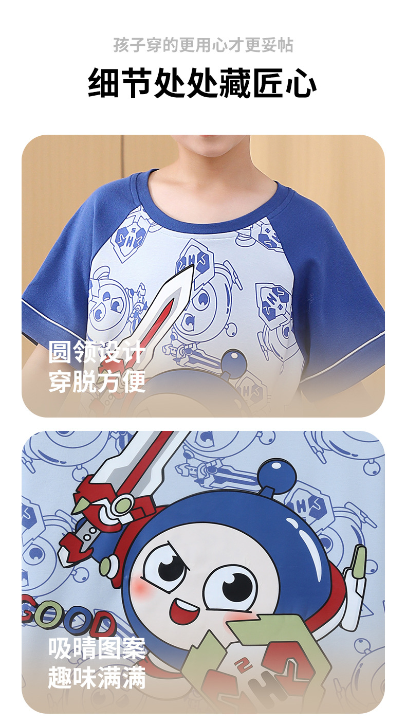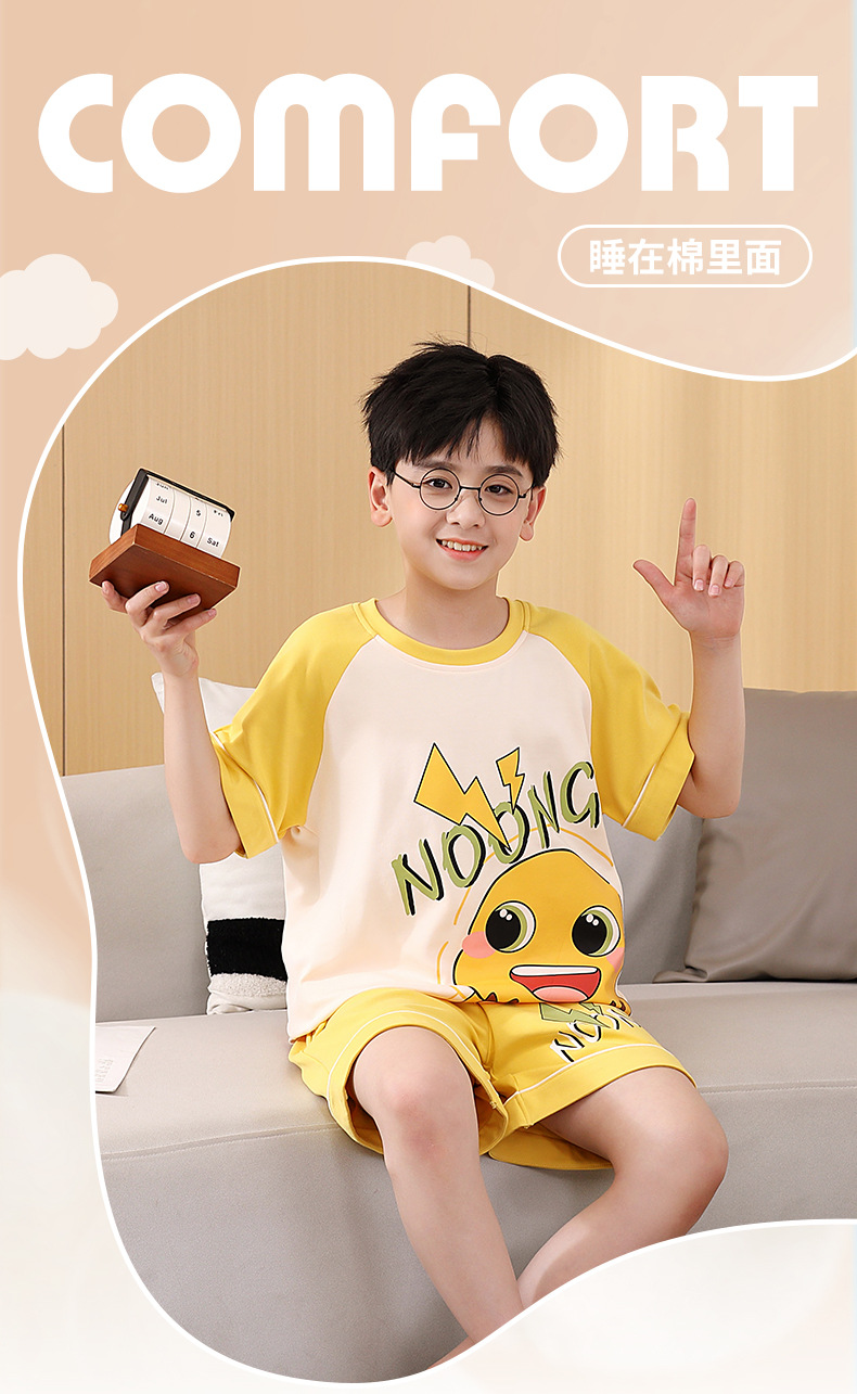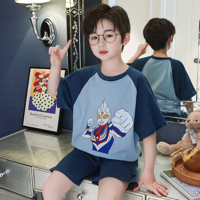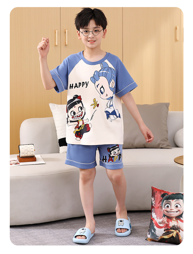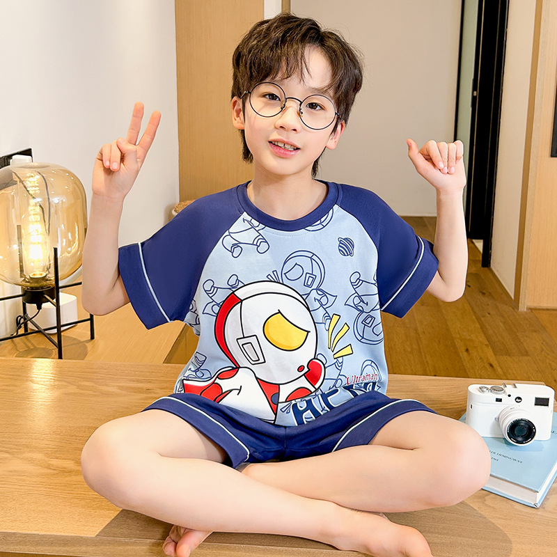 여름 소년 잠옷 반팔 만화 빗질면 중대형 어린이 한국어 버전은 집 밖에서 입을 수 있습니다. 여름스토어 가기