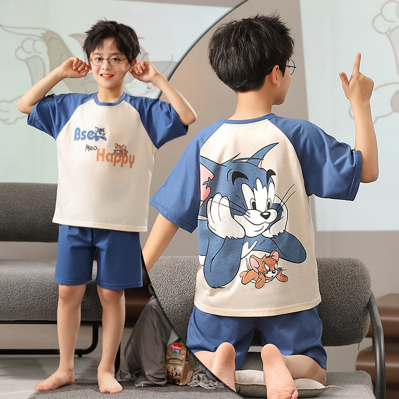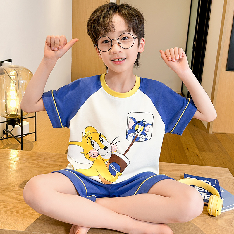 여름 소년 잠옷 반팔 만화 빗질면 중대형 어린이 한국어 버전은 집 밖에서 입을 수 있습니다. 여름