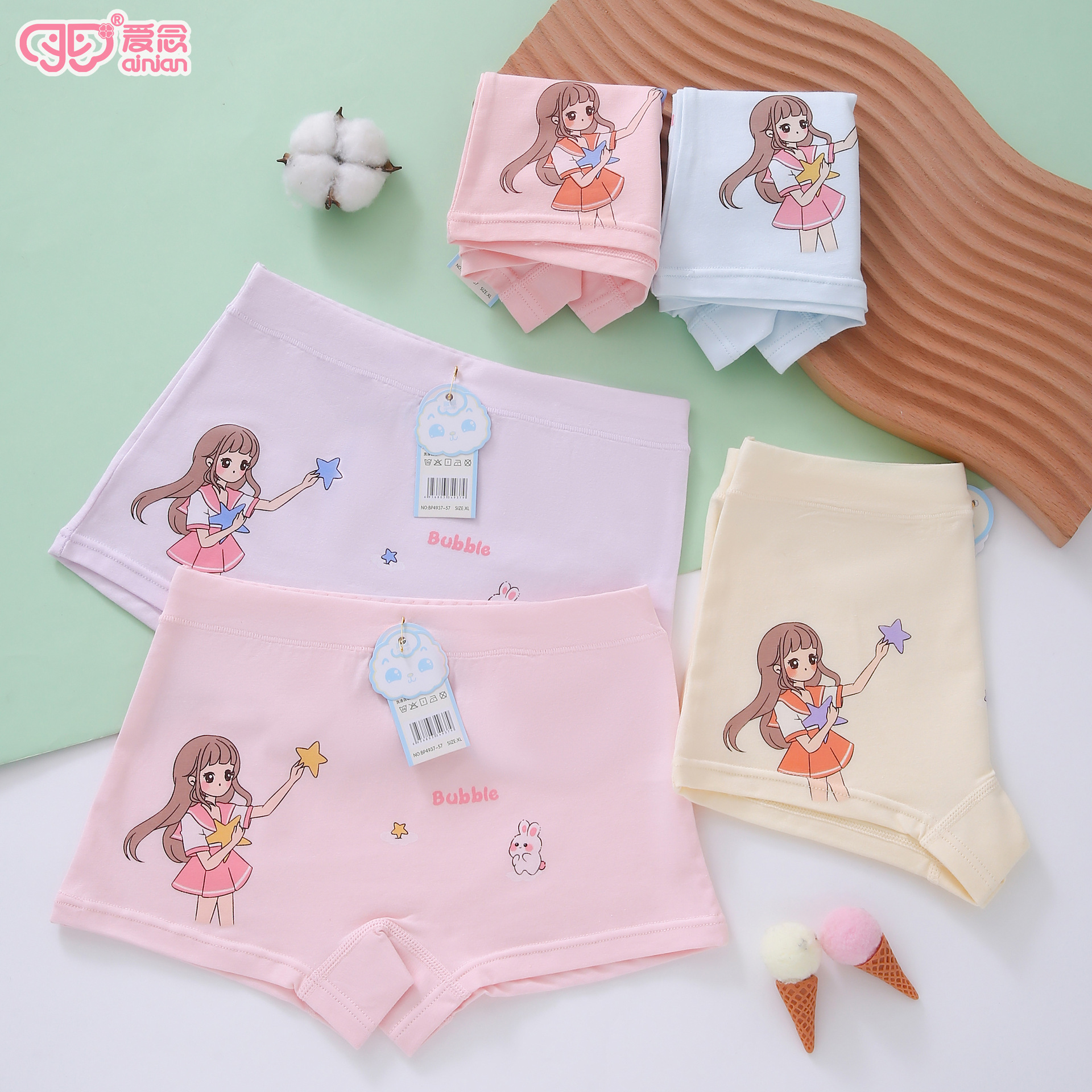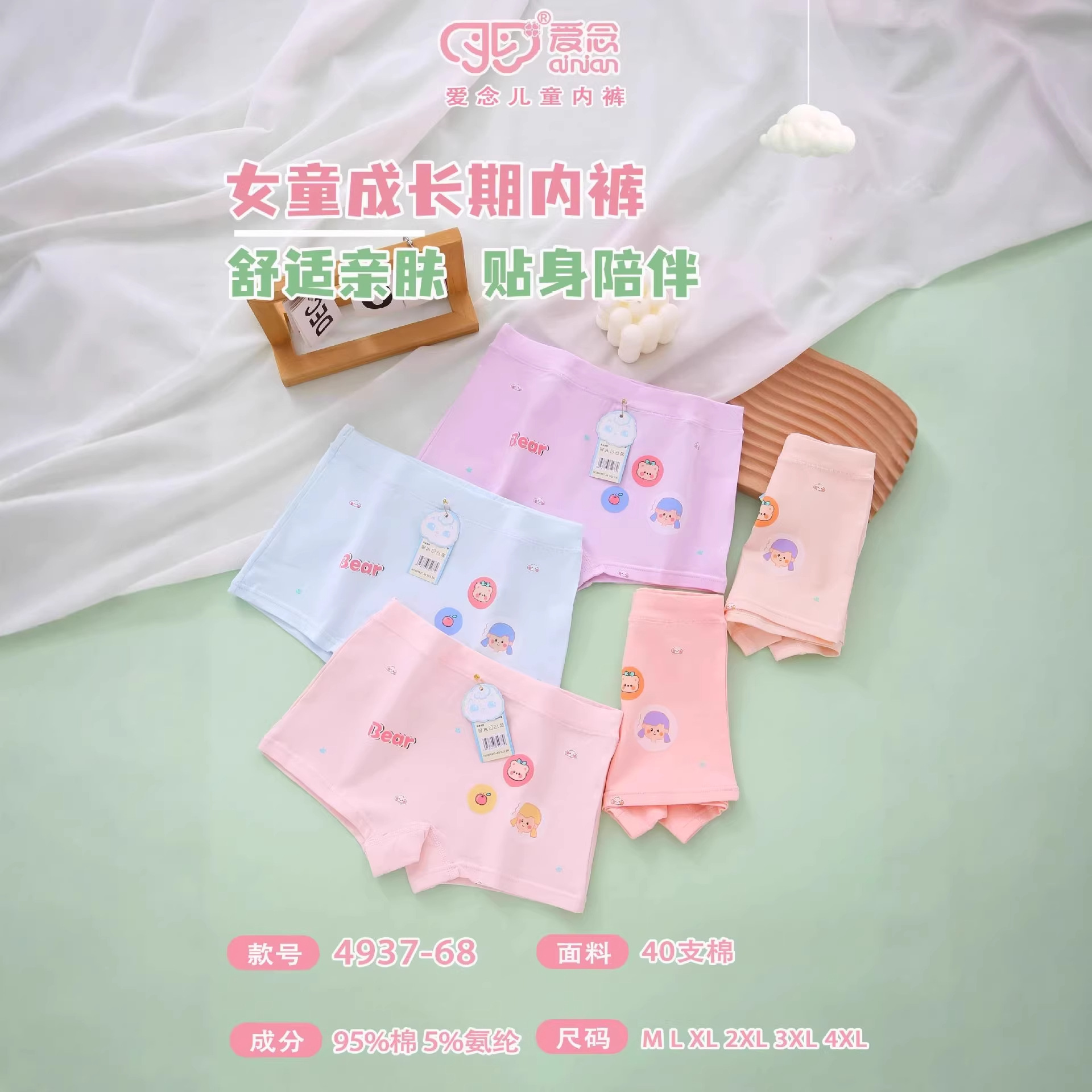 여자 속옷 40 피부 친화적 인면 통기성 어린이 반바지 어린 소녀 복서 만화 귀여운 복서 바지 M-4XL