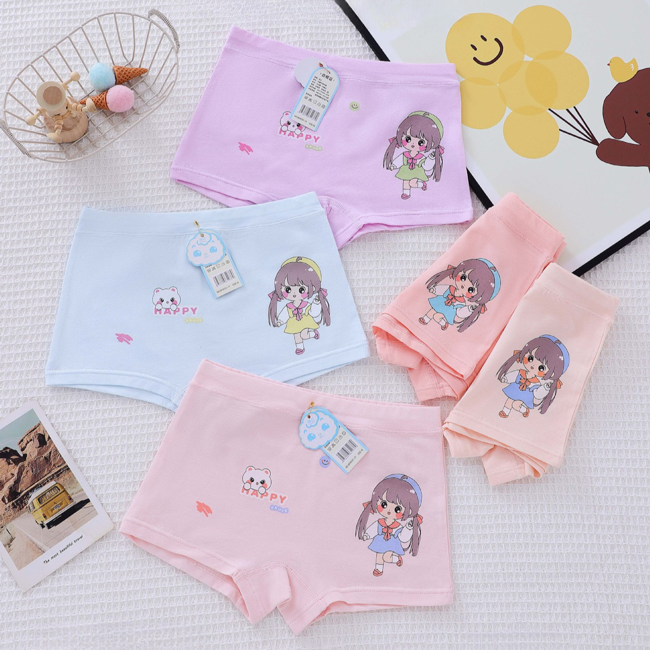 여자 속옷 40 피부 친화적 인면 통기성 어린이 반바지 어린 소녀 복서 만화 귀여운 복서 바지 M-4XL스토어 가기