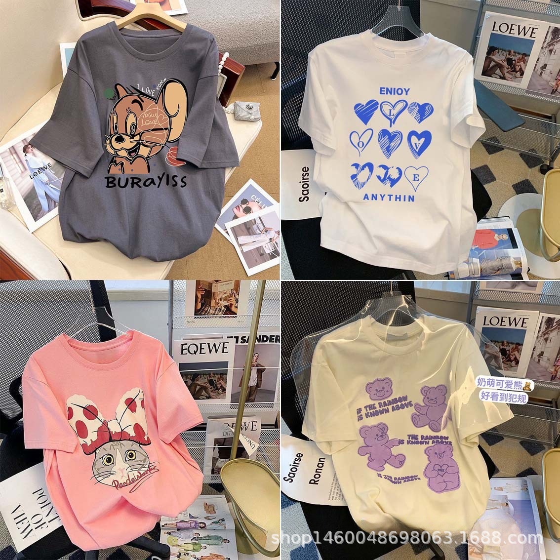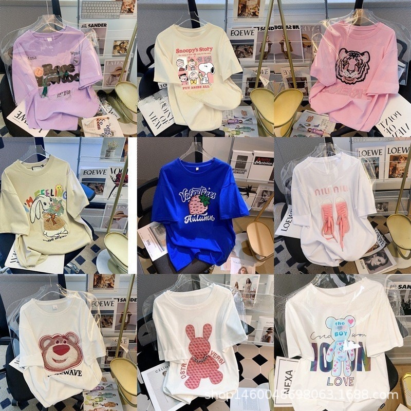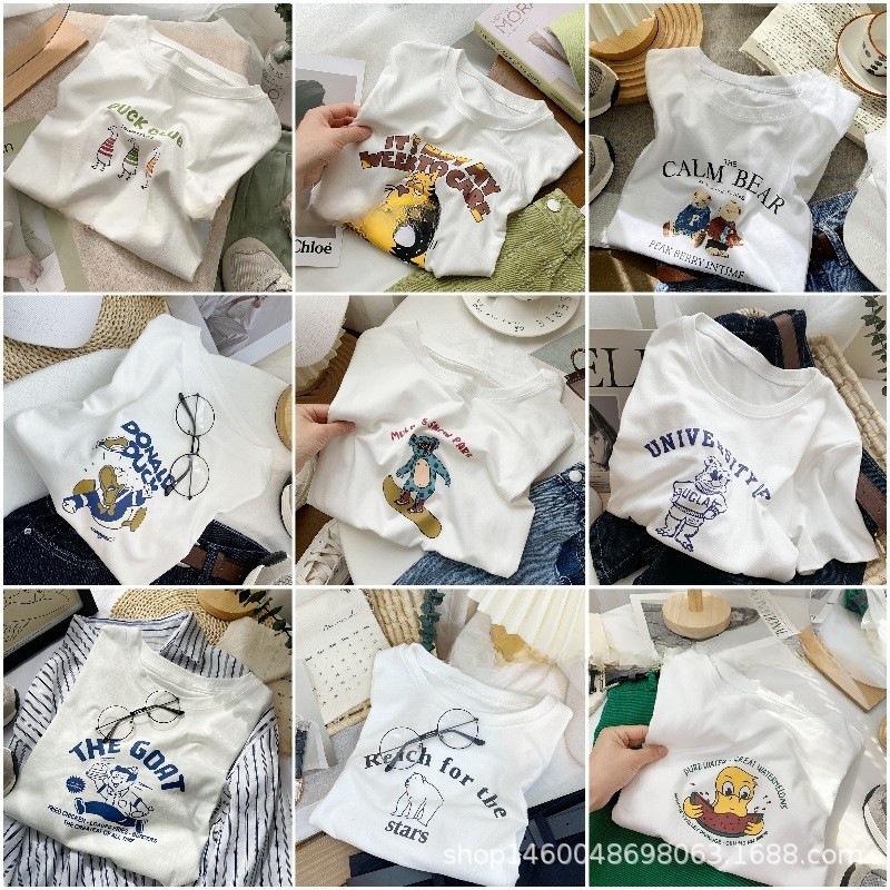 알리 2025 여성 티셔츠 도매 1688 여성 반팔 면 티셔츠 1 위안 포장 저렴한 공급스토어 가기