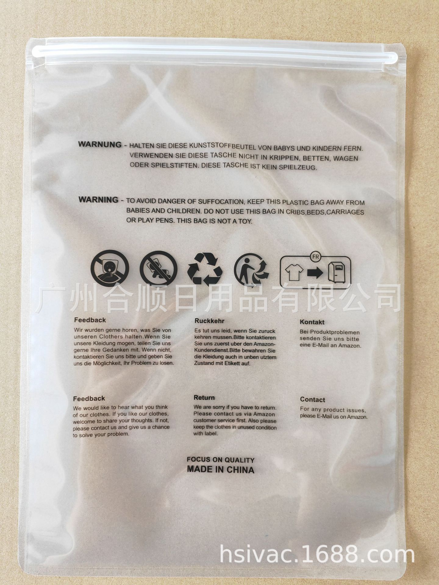 공장 직접 판매 인쇄 경고 Amazon 의류 이중 뼈 지퍼 의류 진공 포장 가방스토어 가기