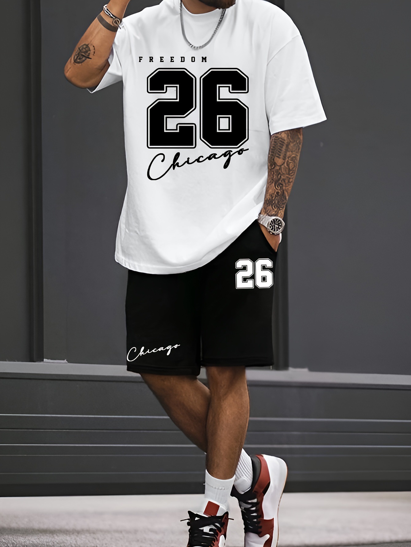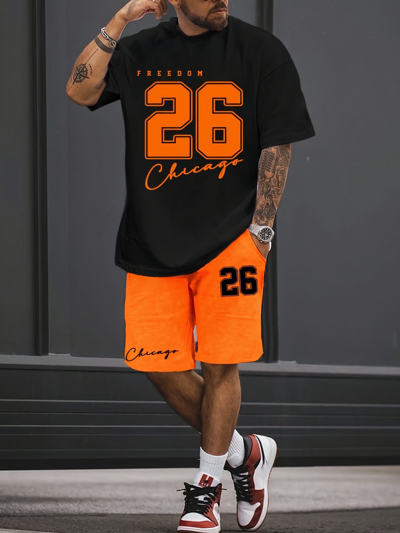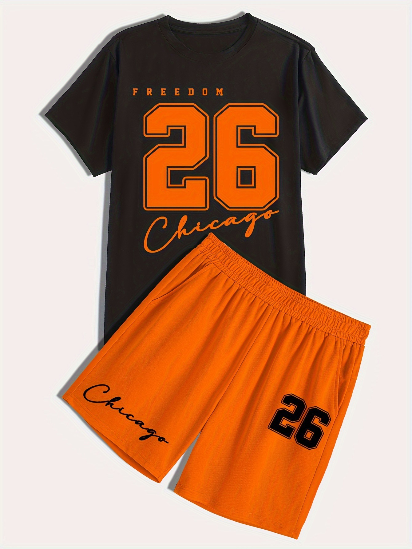 통기성 여름 야외 착용을 위한 반바지와 프린트 티셔츠가 결합된 크로스보더 남성 캐주얼 스포츠 슈트