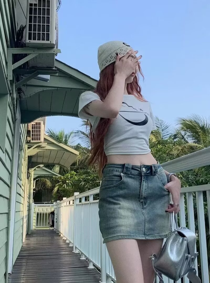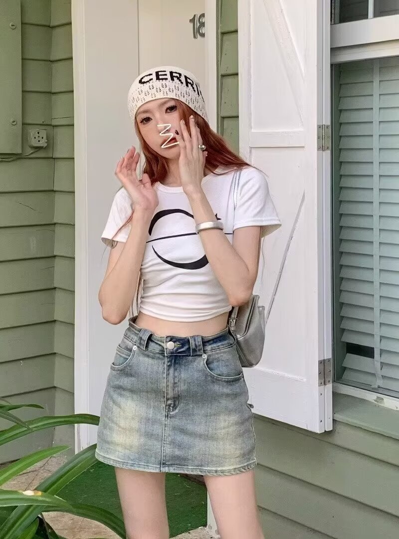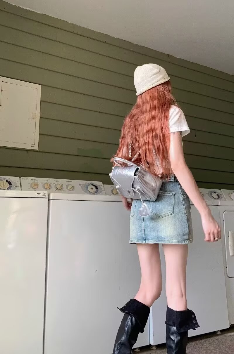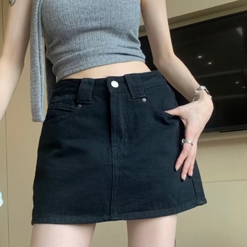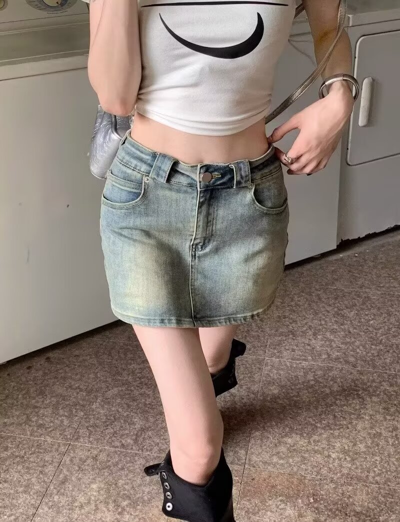 아메리칸 핫걸 블루 레트로 데님 스커트 여성 여름 2024 새로운 스타일 스커트 스커트 힙 커버 미니 스커트스토어 가기